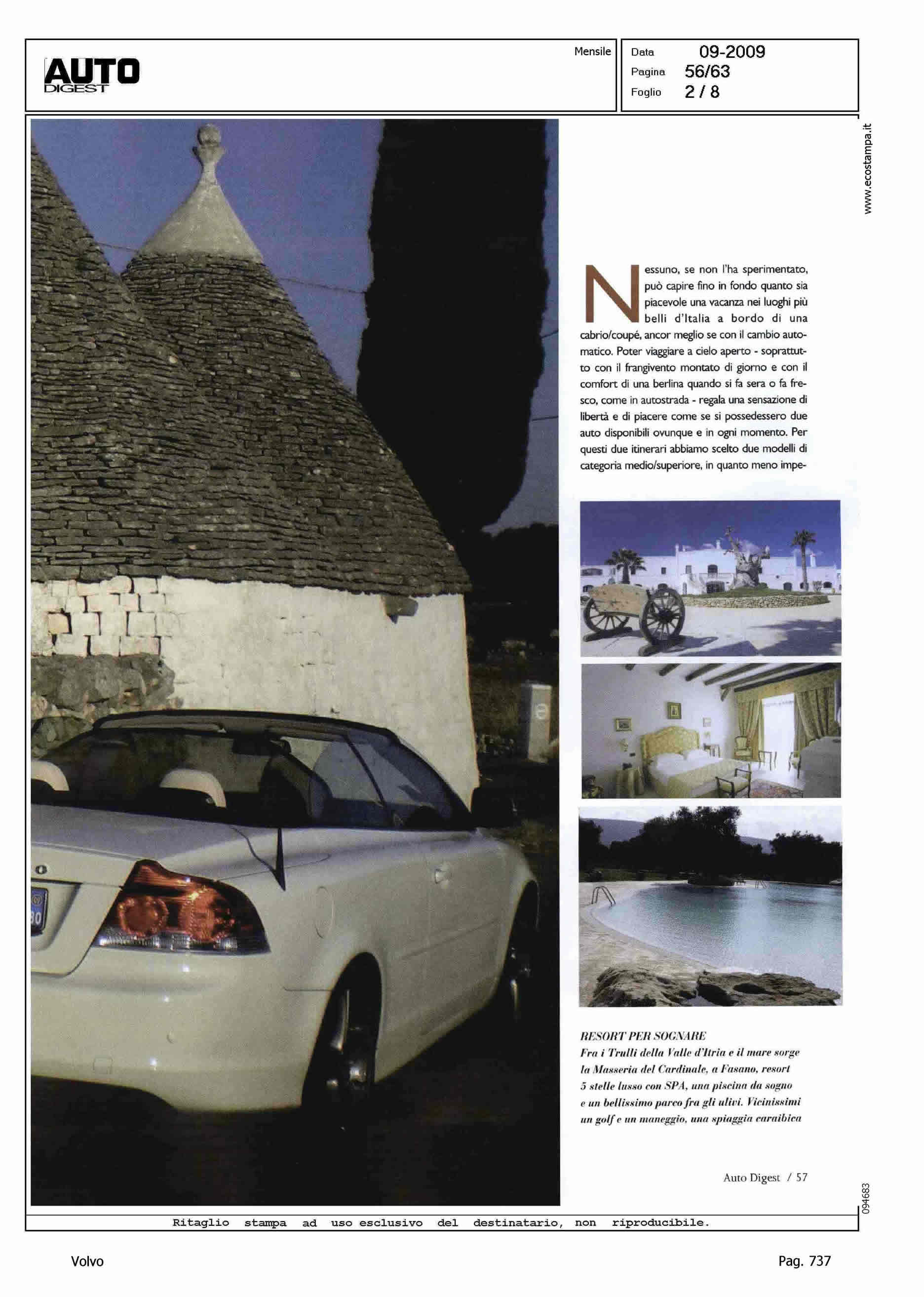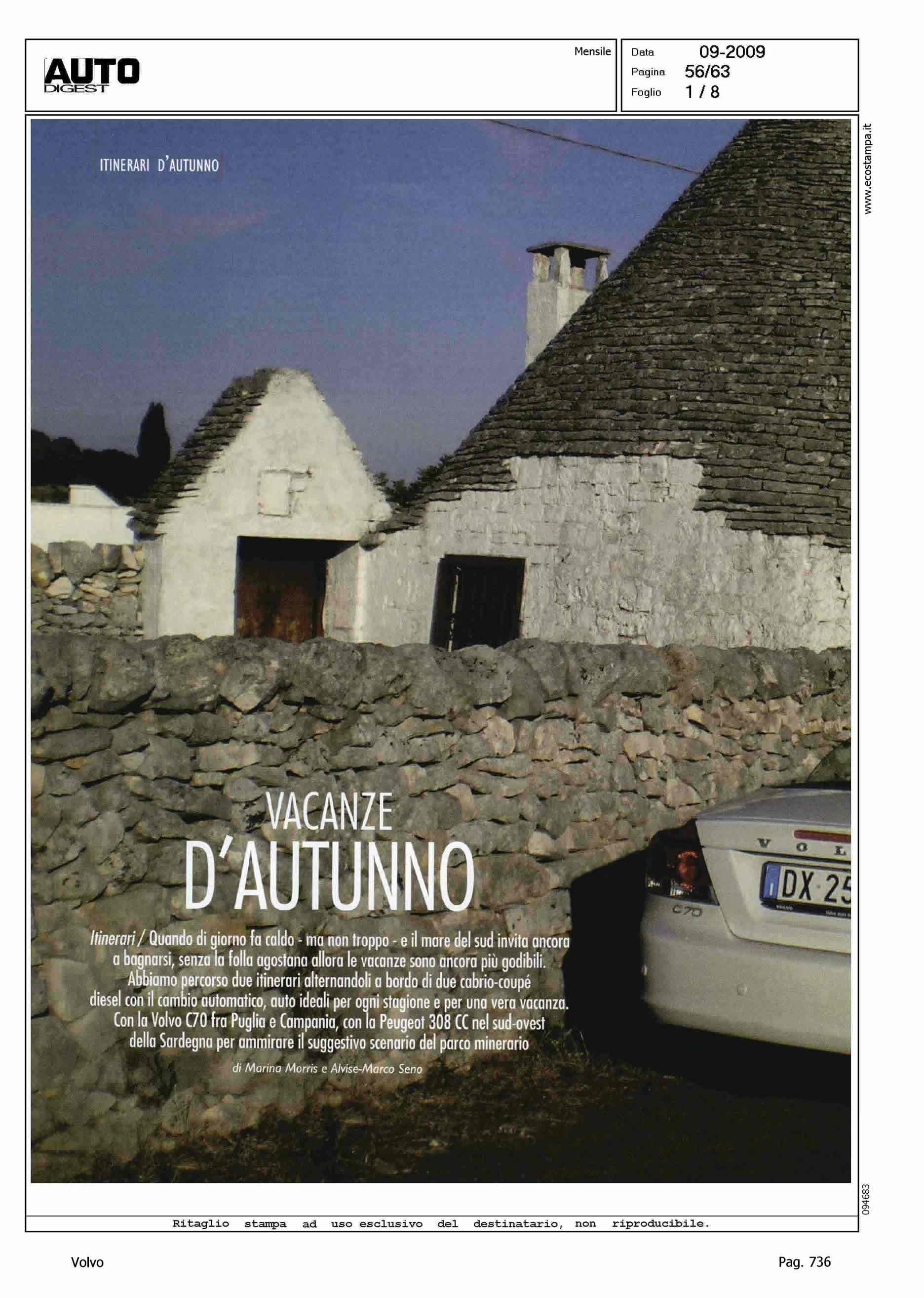 Author: MORRIS, MARINALine: Corporate Model: Volvo C70 Convertible Subject: - Title: VACANZE D'AUTUNNOHighlight: C70 CONVERTIBLE TRA PUGLIA E CAMPANIA