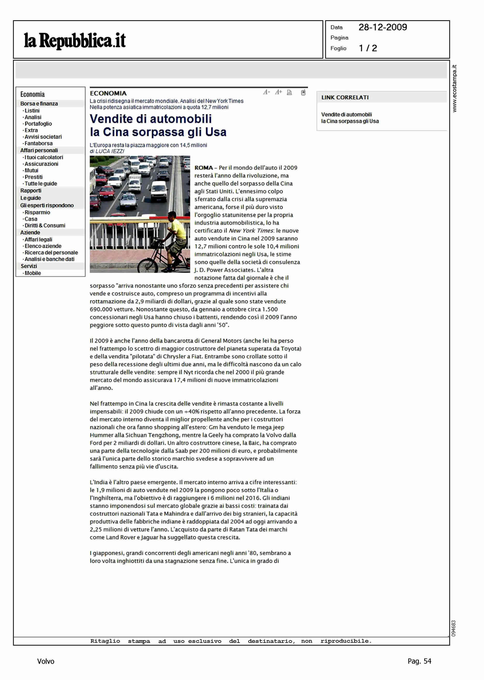 Author: IEZZI, LUCALine: Corporate Model: Corporate Subject: - Title: VENDITE DI AUTOMOBILI LA CINA SORPASSA GLI USAHighlight: VENDITA VOLVO ALLA GEELY