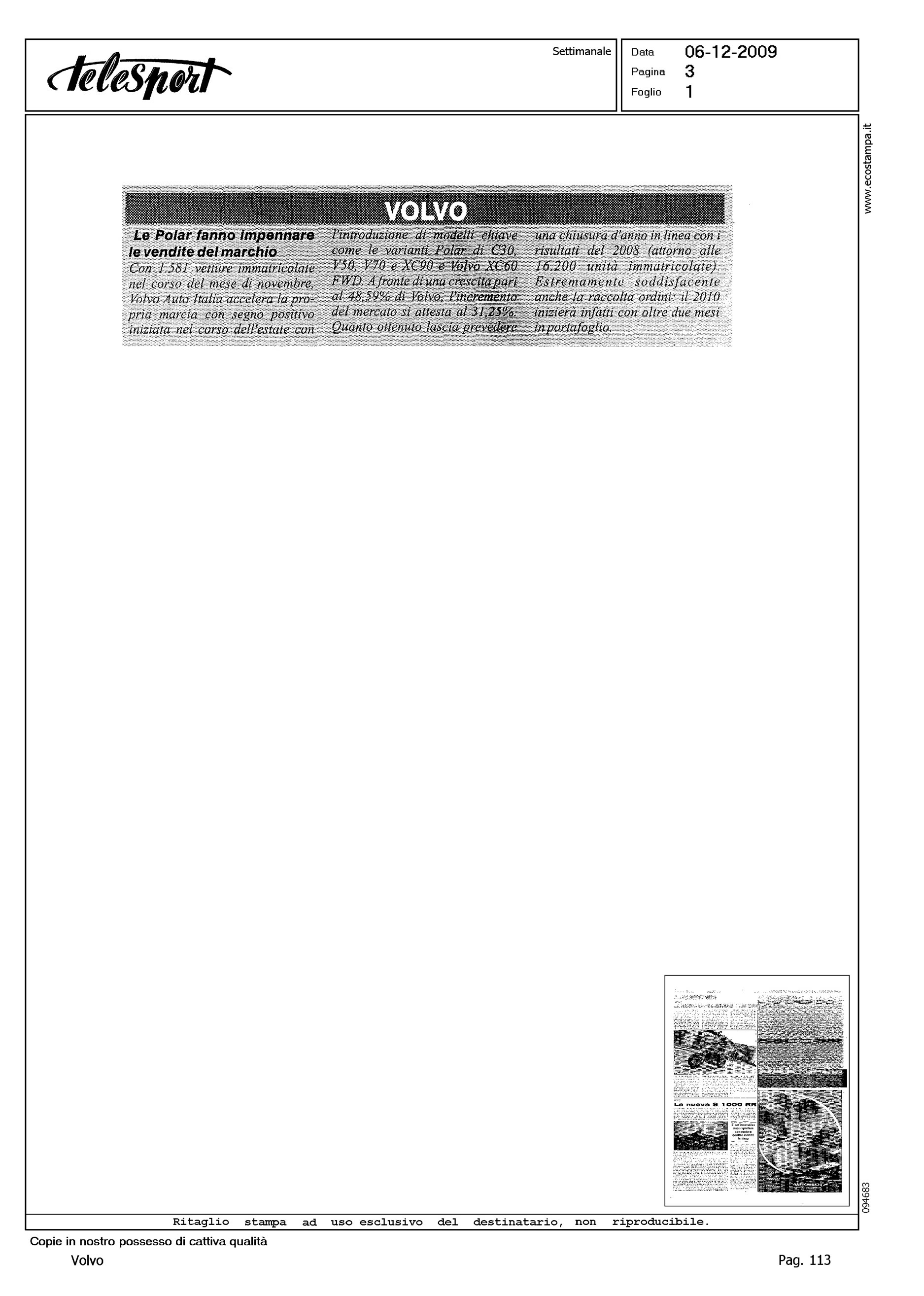 Author: Line: Corporate Model: Corporate Subject: - Title: LE POLAR FANNO IMPENNARE LE VENDITE DEL MARCHIOHighlight: MERCATO - QUOTA VOLVO IN ITALIA