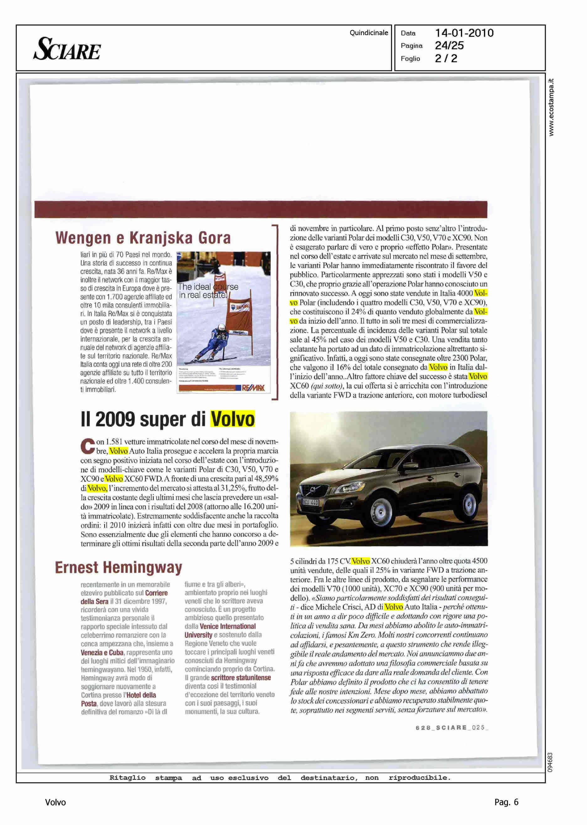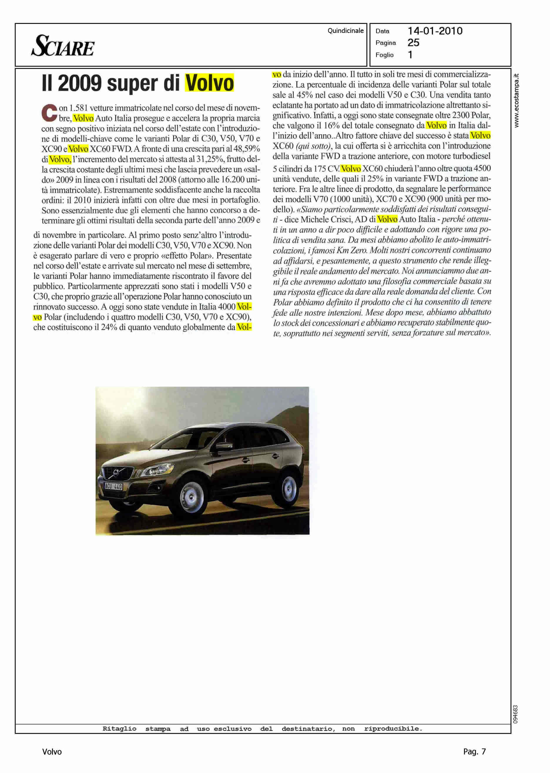 Author: Line: XC60 Model: Subject: - Title: IL 2009 SUPER DI VOLVOHighlight: MERCATO - VOLVO IN ITALIA - POLAR - CRISCI SU MERCATO