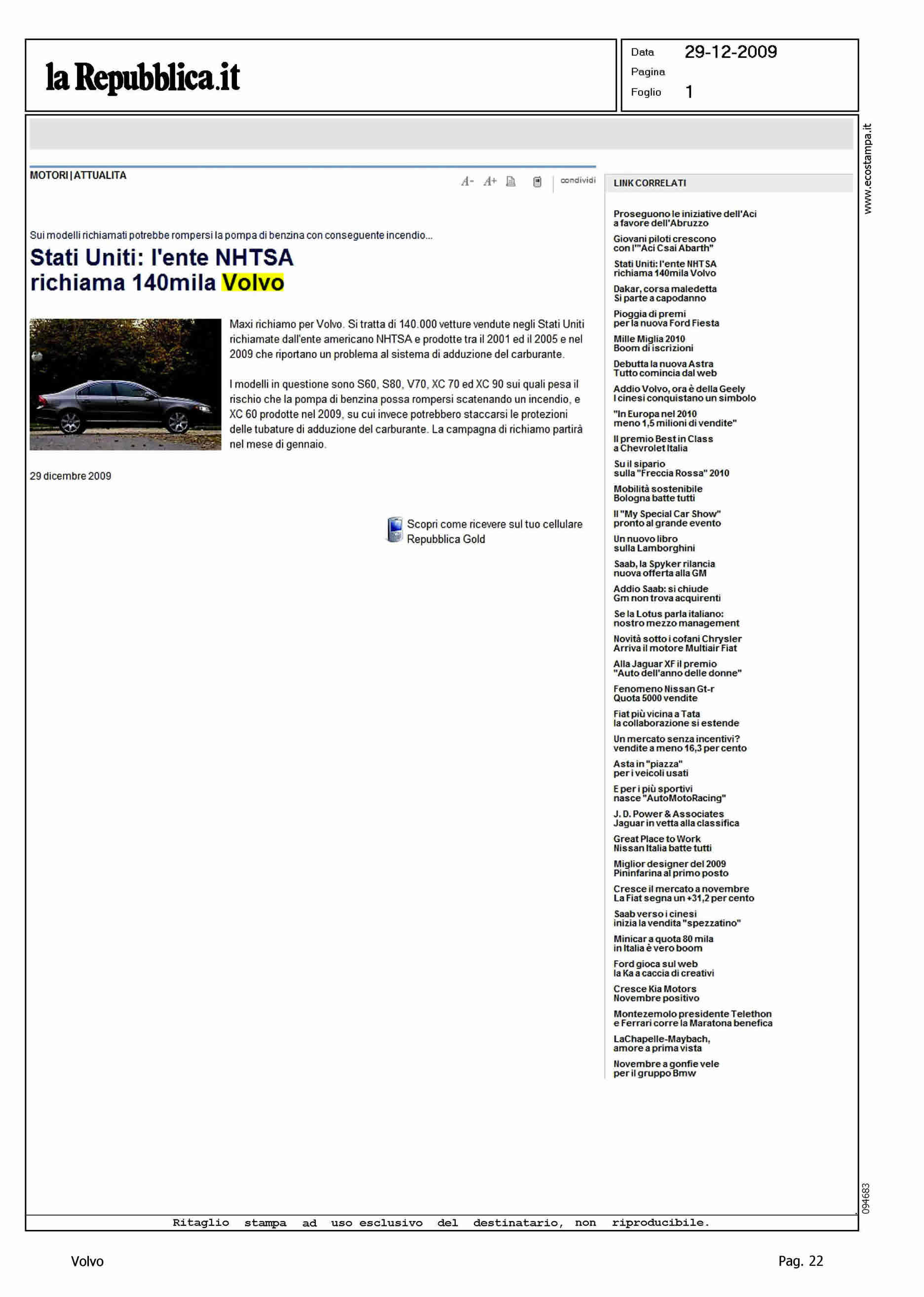 Author: Line: Corporate Model: Corporate Subject: - Title: STATI UNITI: L'ENTE NHTSA RICHIAMA 140MILA VOLVOHighlight: RICHIAMO USA