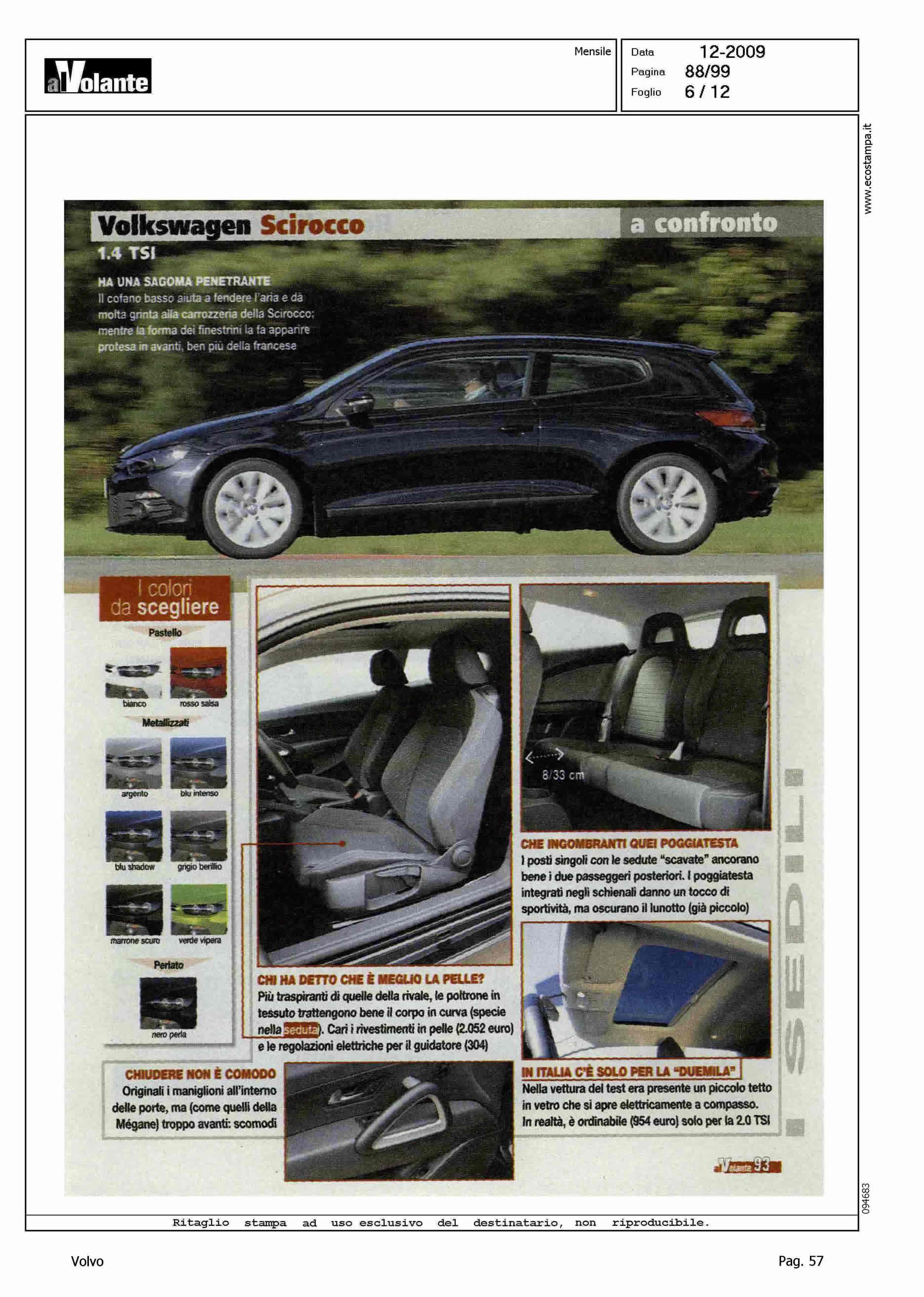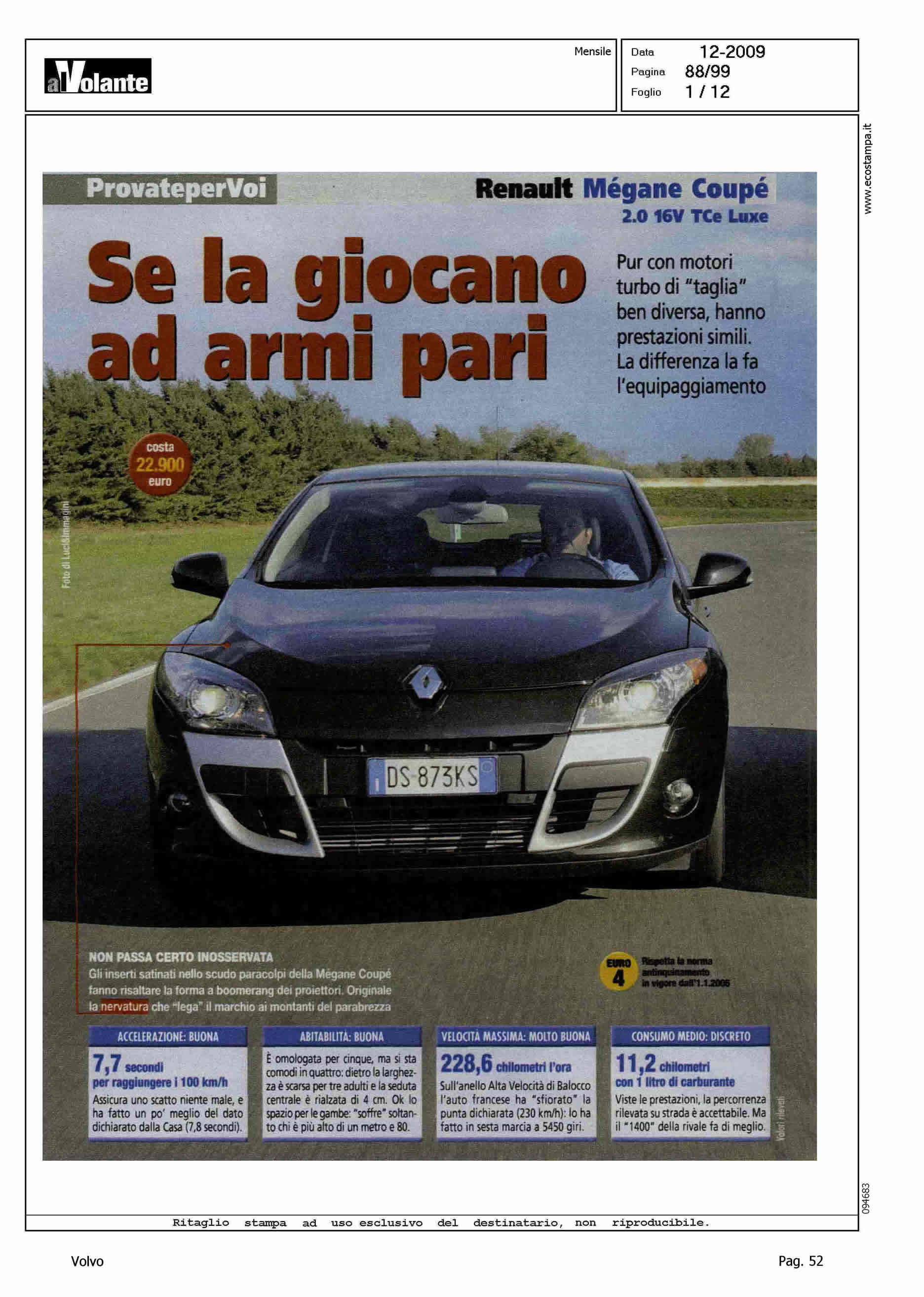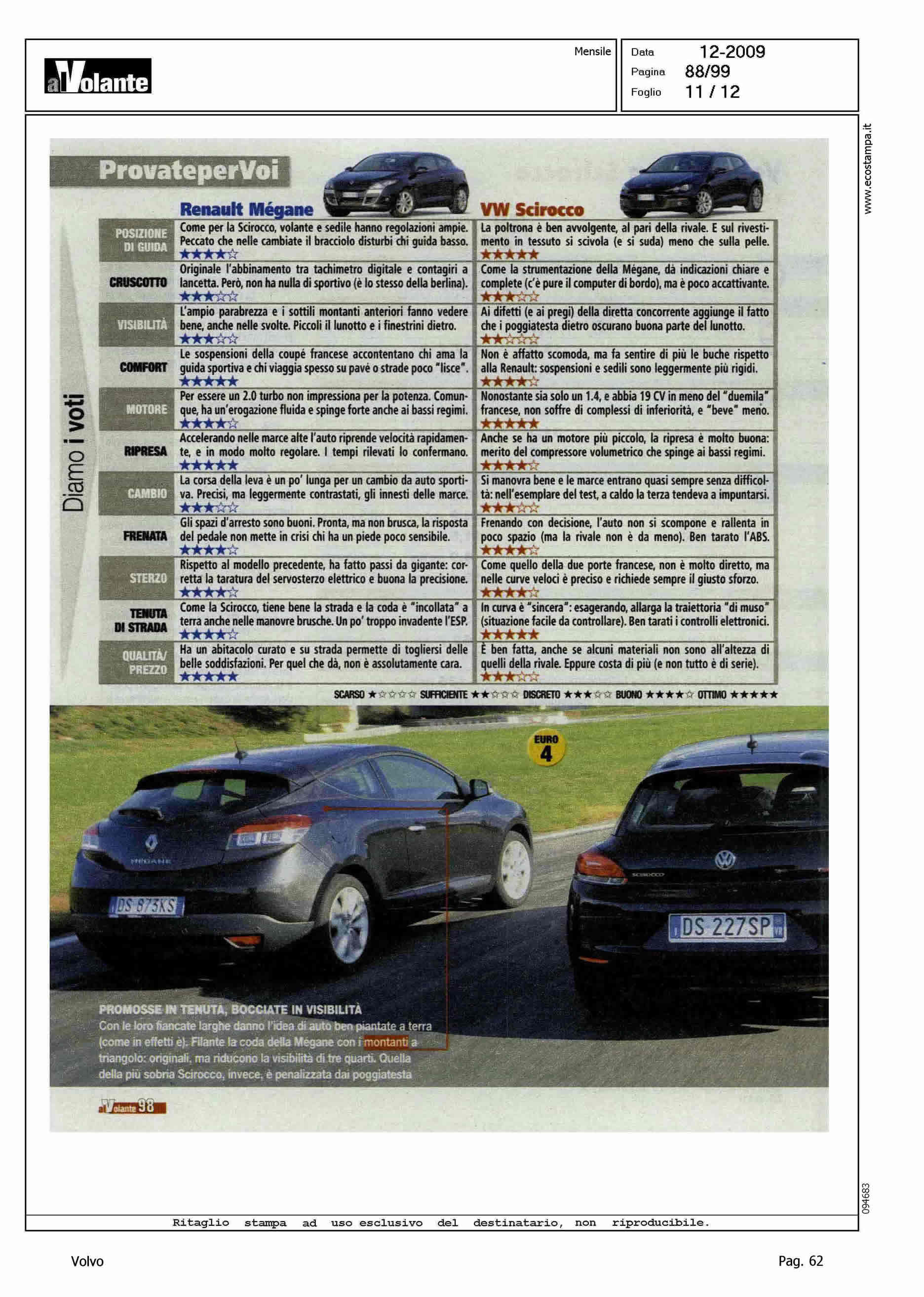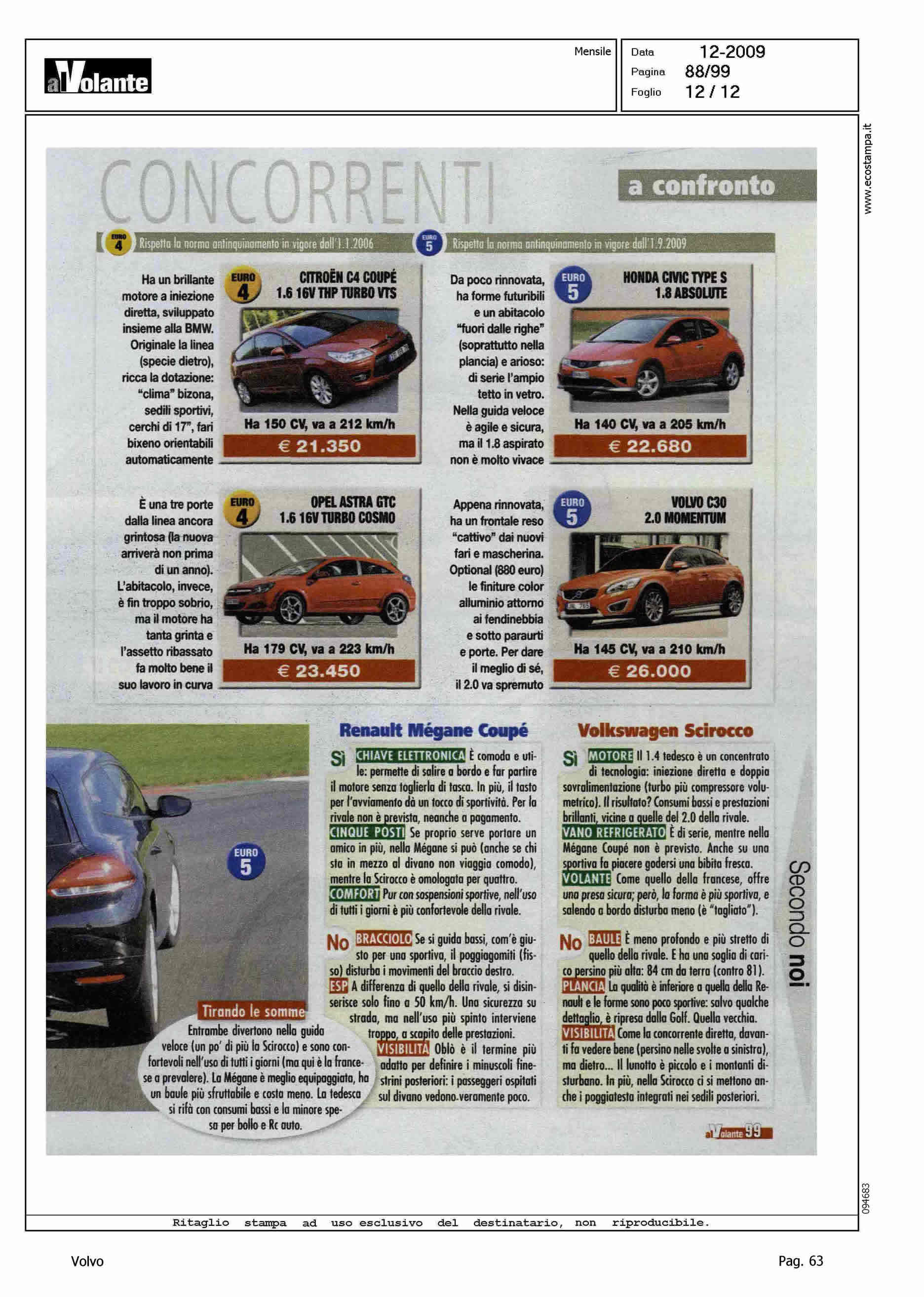 Author: Line: Corporate Model: Volvo C30 Subject: - Title: A TU PER TU CON LE RIVALIHighlight: COMPETITOR VS V. SCIROCCO E R. MEGANE COUPE'