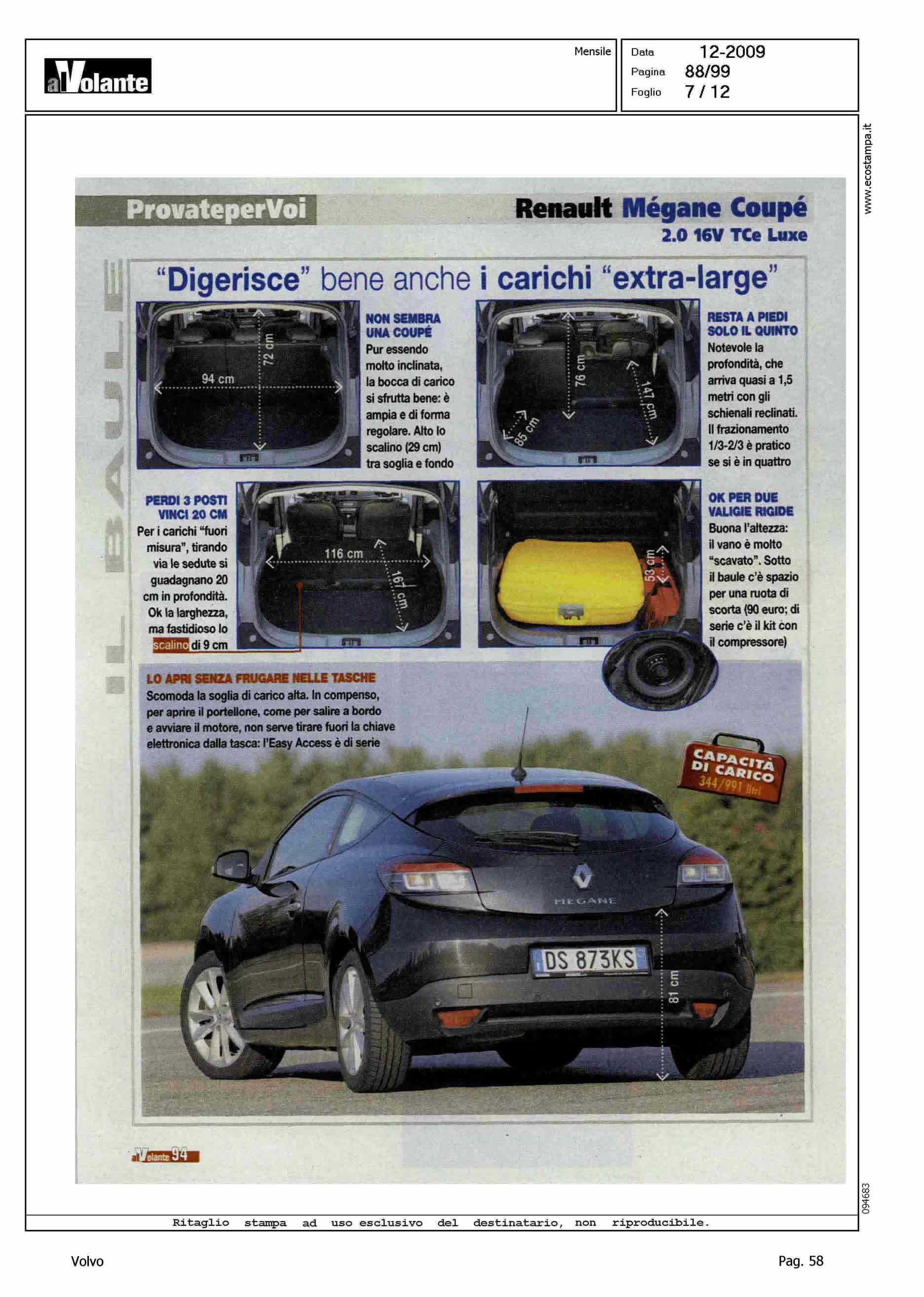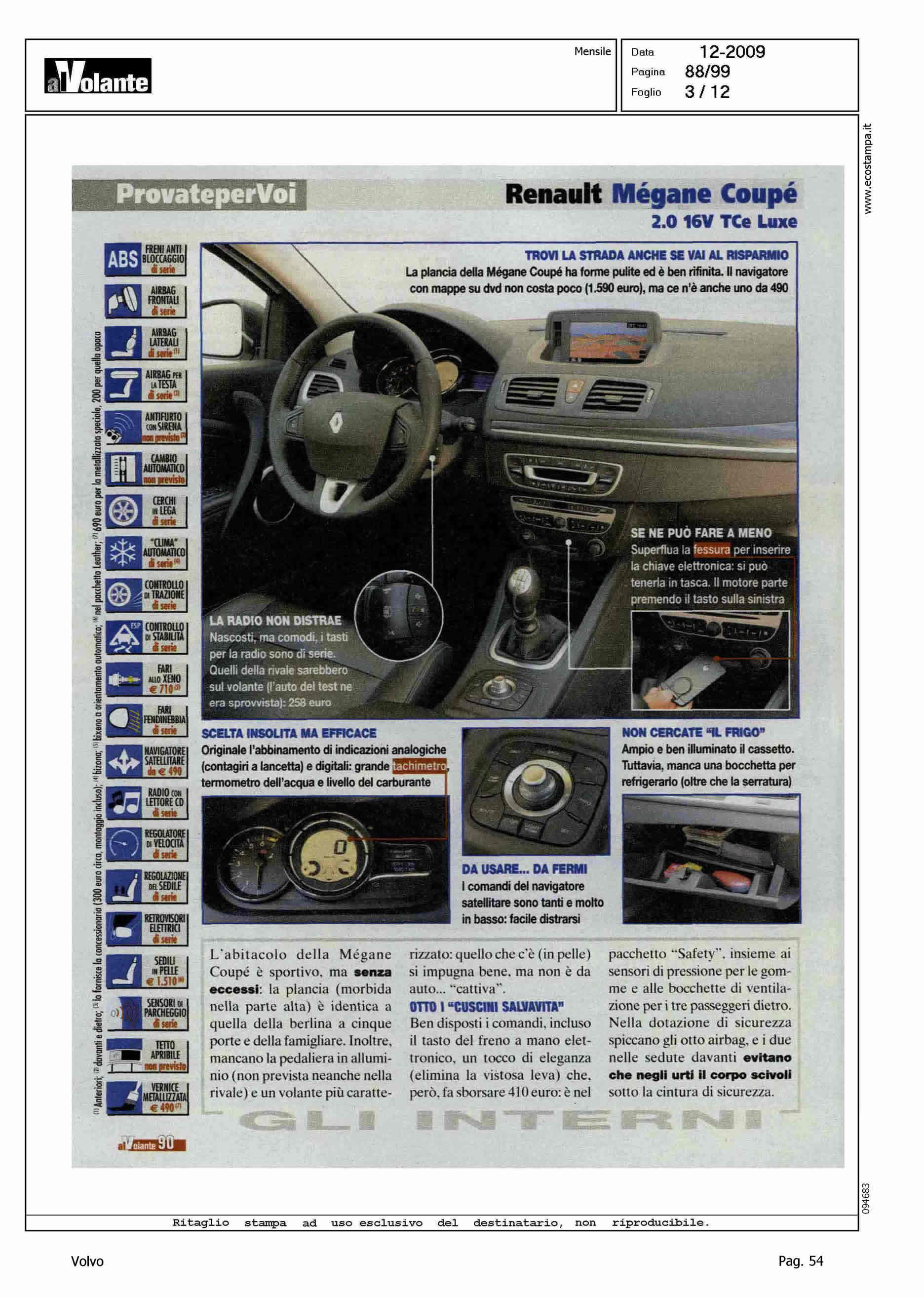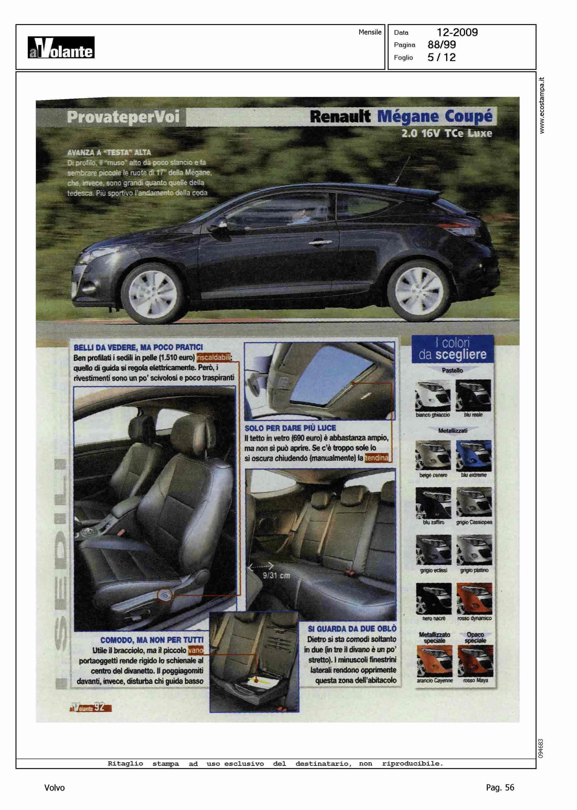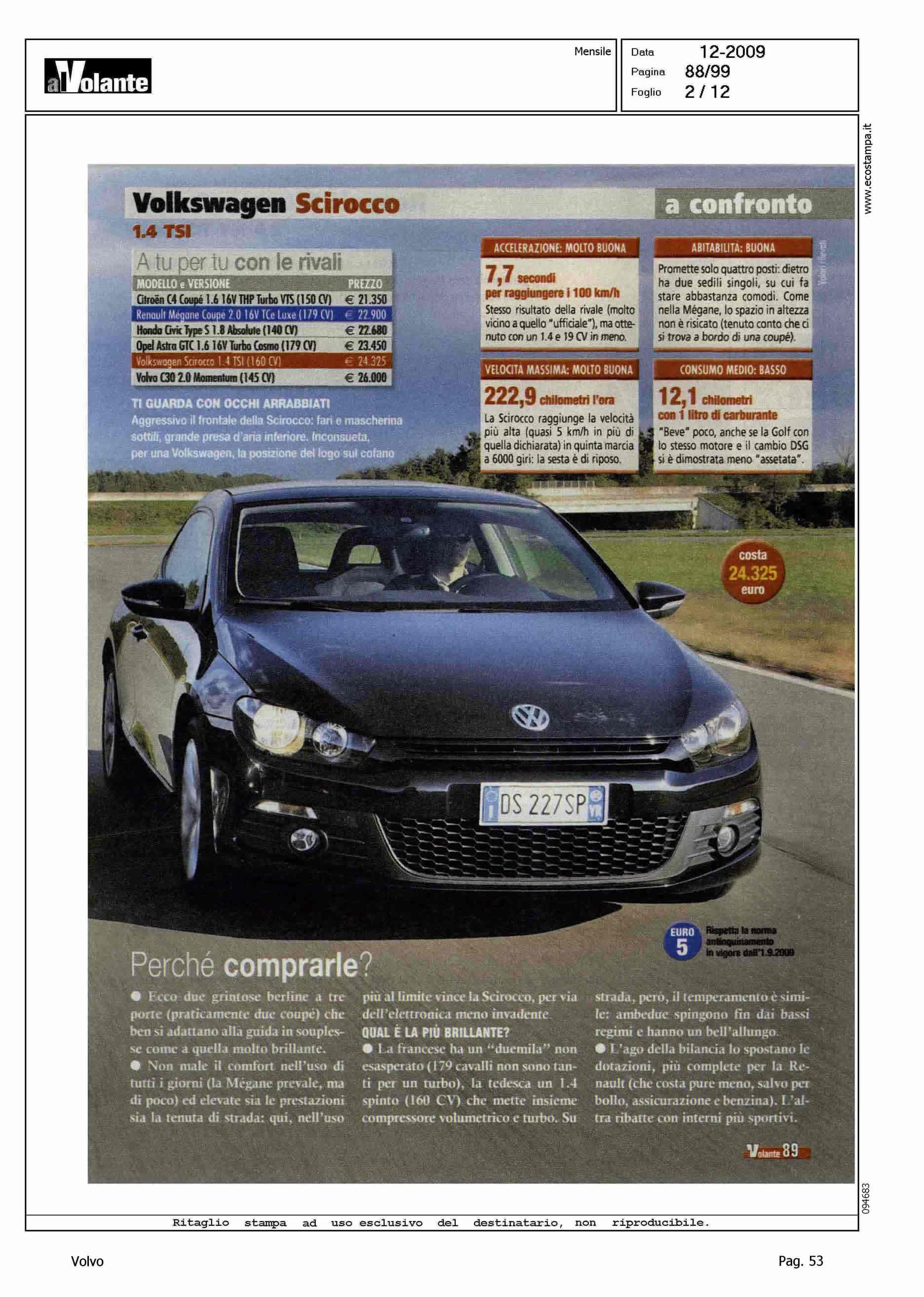 Author: Line: Corporate Model: Volvo C30 Subject: - Title: A TU PER TU CON LE RIVALIHighlight: COMPETITOR VS V. SCIROCCO E R. MEGANE COUPE'