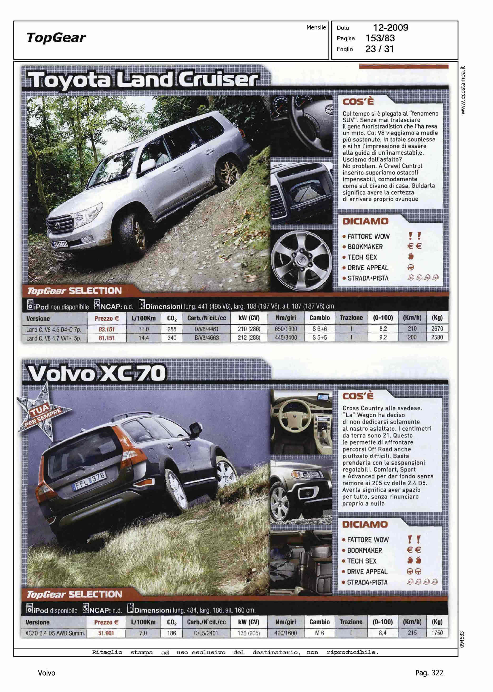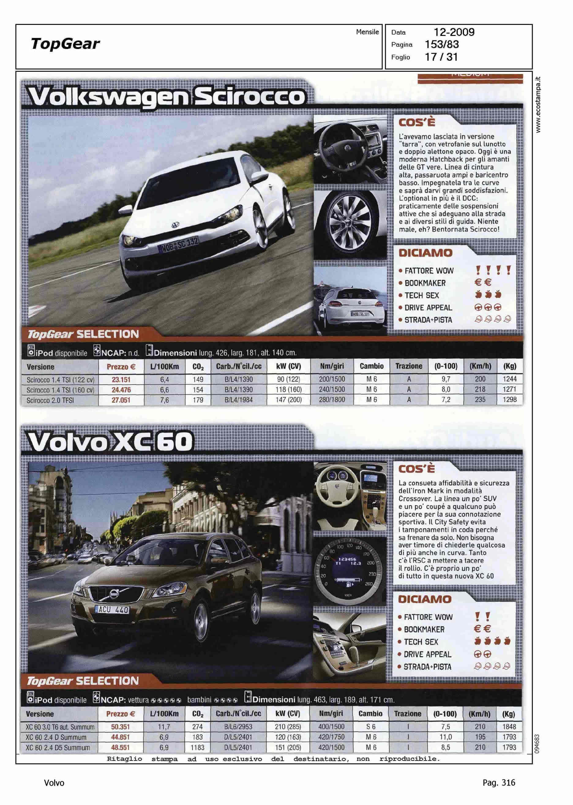 Author: Line: Corporate Model: Corporate Subject: - Title: CAR SHOPHighlight: SCHEDE PRESENTAZIONE PRODOTTO DI XC60 E XC70 IN 'CATALOGO' - GIUDIZI, SINTESI: FATTORE WOW, BOOKMAKER, TECH SEX, DRIVE APPEAL, STRADA-PISTA