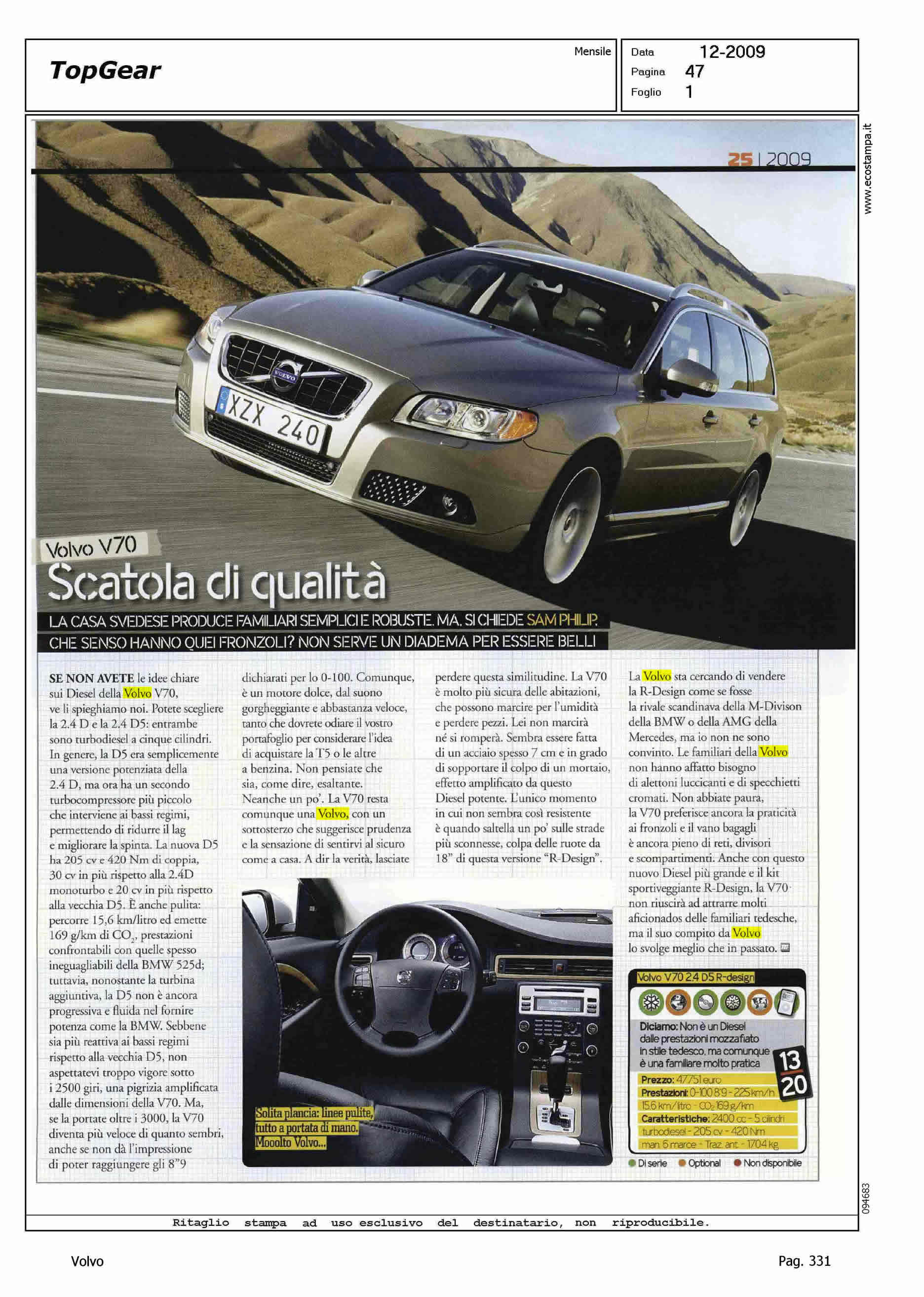 Line: Corporate Model: Volvo V70 Subject: -
