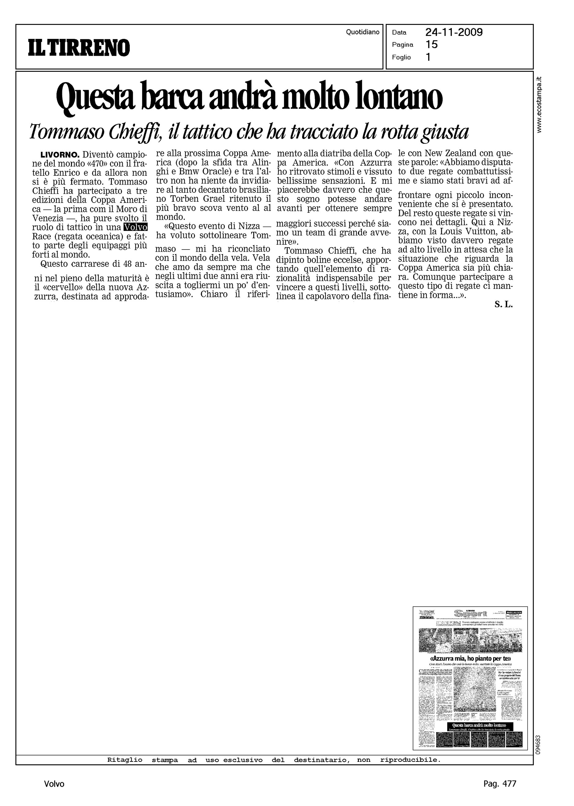 Author: Line: Corporate Model: Corporate Subject: Volvo Ocean Race Title: QUESTA BARCA ANDRA' LONTANOHighlight: PROFILO DEL TATTICO