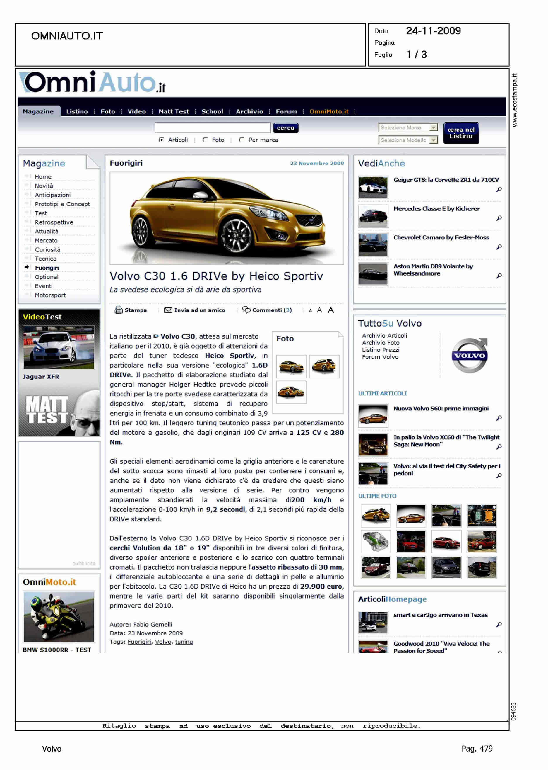 Author: Line: Corporate Model: Volvo C30 Subject: - Title: VOLVO C30 1.6 DRIVe BY HEICO SPORTIVHighlight: SCHEDA
