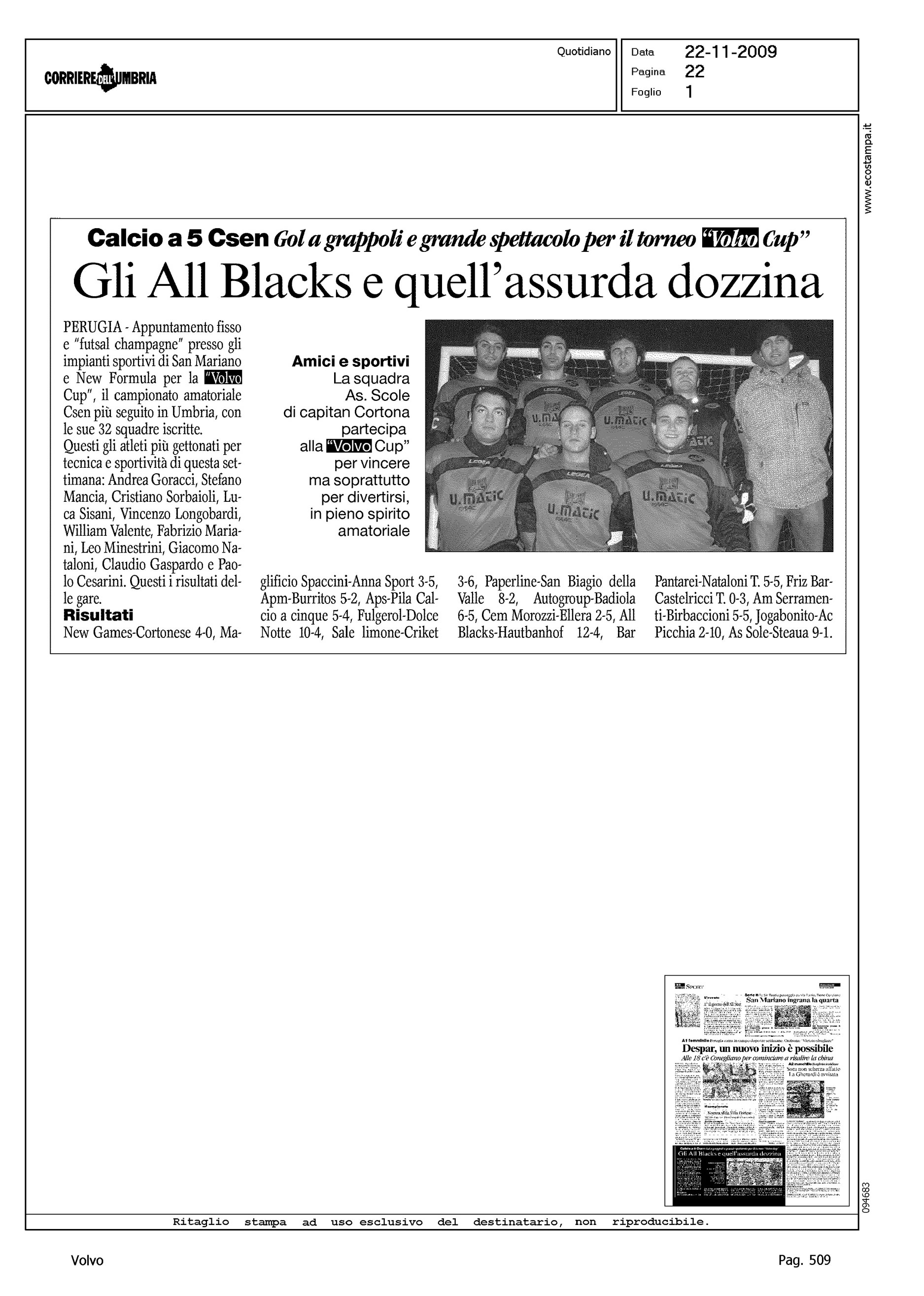 Author: Line: Corporate Model: Corporate Subject: Volvo Cup Title: GLI ALL BLACKS E QUELL'ASSURDA DOZZINAHighlight: CALCIO A 5