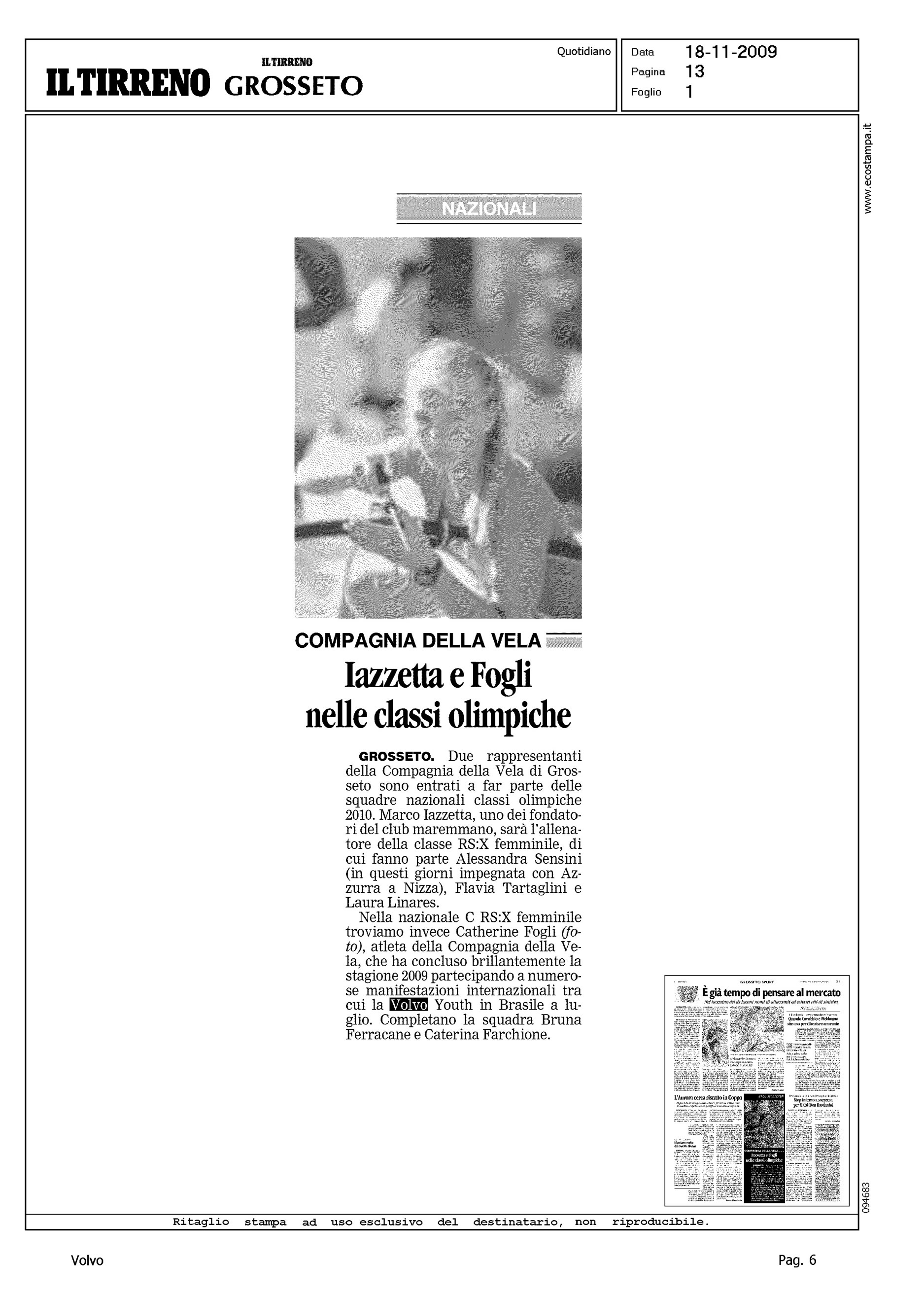 Author: Line: Corporate Model: Corporate Subject: Volvo Cup Title: IAZZETTA E FOGLI NELLE CLASSI OLIMPICHEHighlight: BREVE
