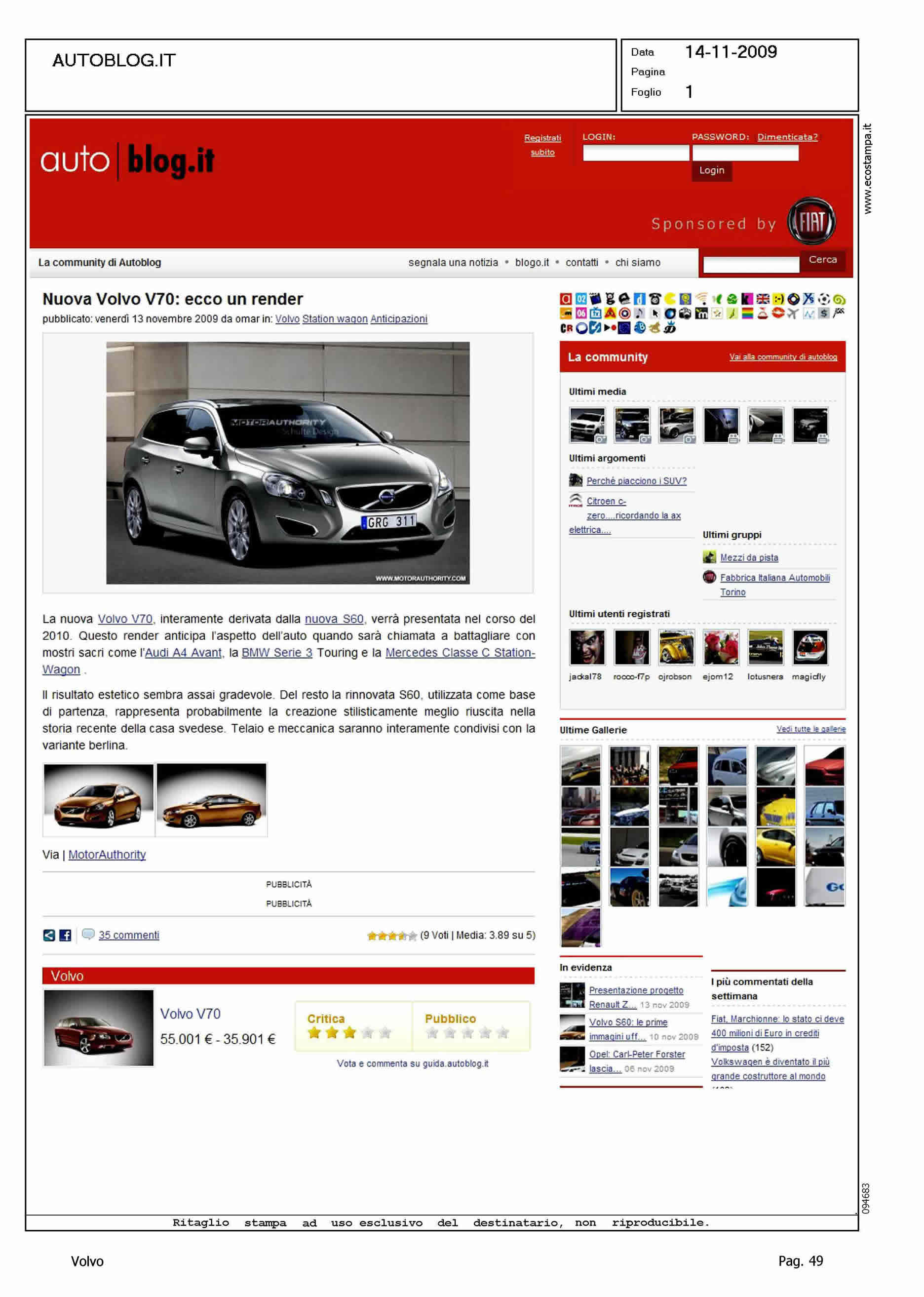 Author: Line: Corporate Model: Volvo V70 Subject: - Title: NUOVA VOLVO V70: ECCO UN RENDERHighlight: RENDER VERSIONE R