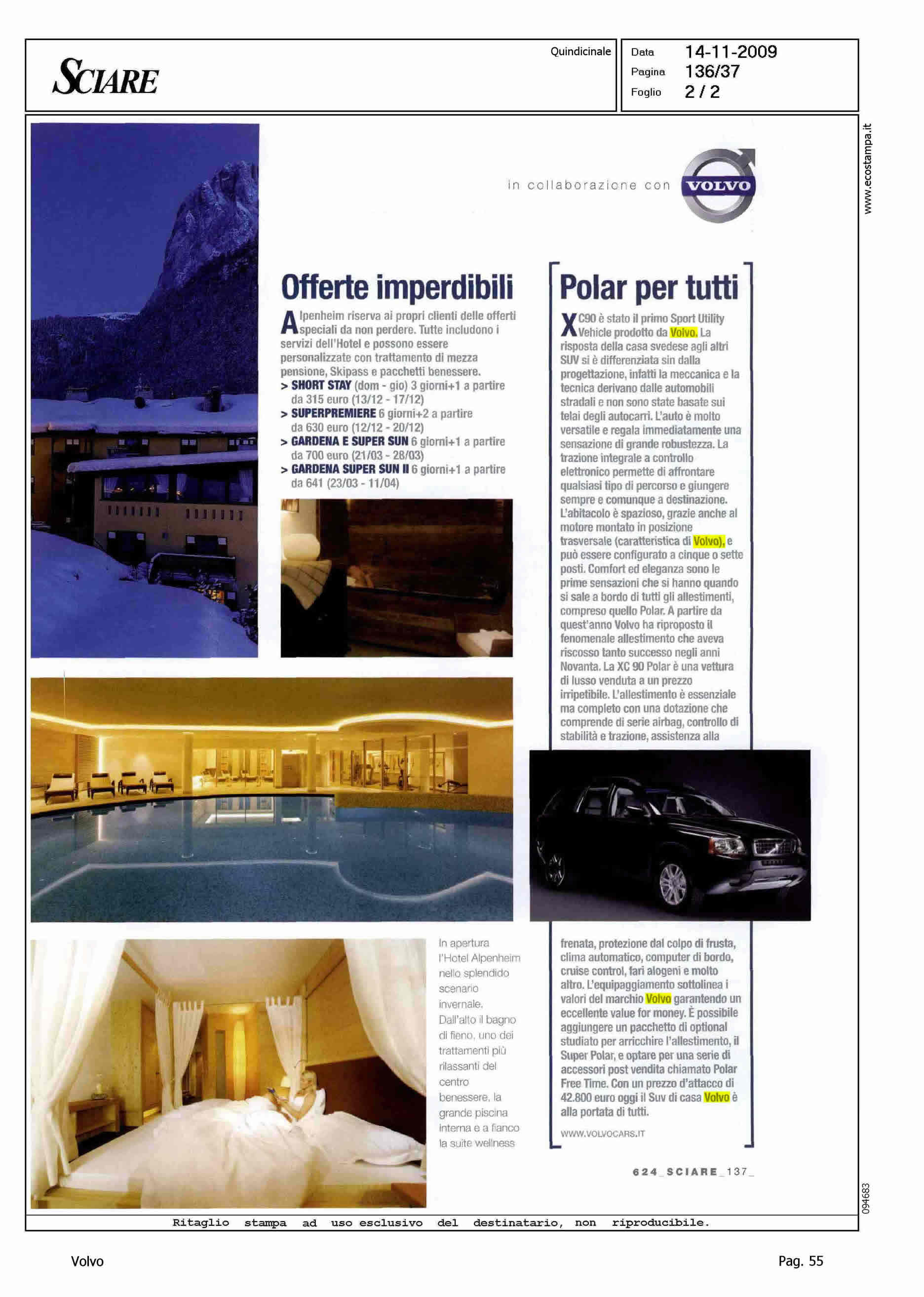 Author: RONCHI, ANDREALine: Corporate Model: Volvo XC90 Subject: - Title: VOGLIA DI SCI E RELAXHighlight: SCHEDA PRESENTAZIONE PRODOTTO - TURISMO, ITINERARI - ALBERGHI DI LUSSO