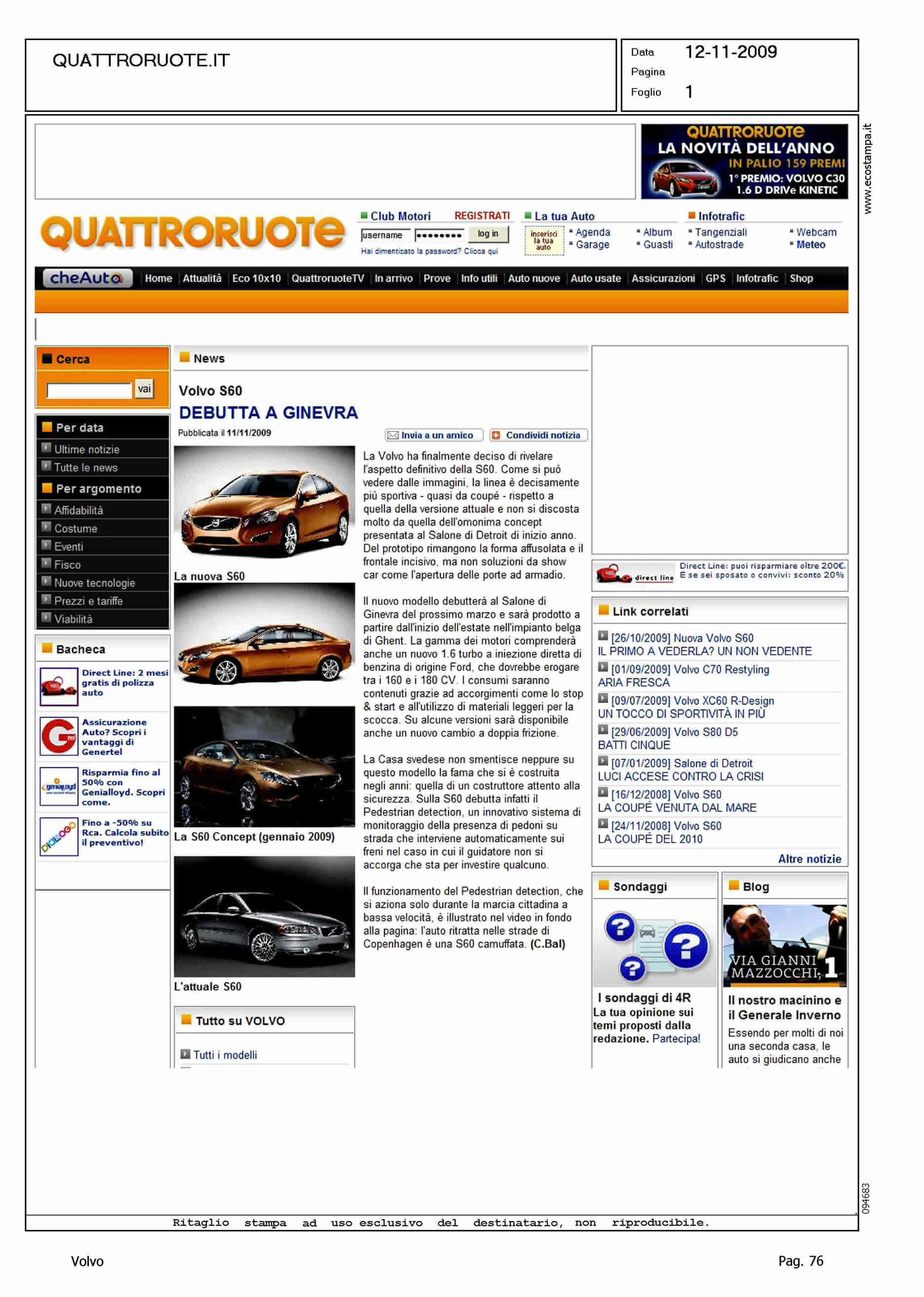Author: Line: S60 Model: Subject: - Title: VOLVO S60 - DEBUTTA A GINEVRAHighlight: PRIME FOTO