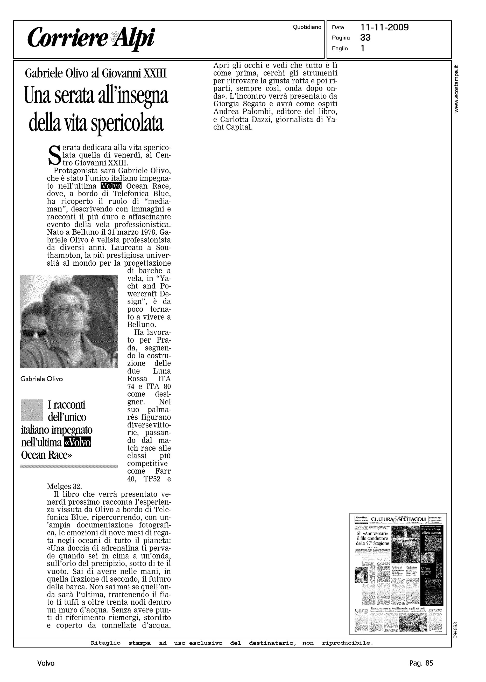 Author: Line: Corporate Model: Corporate Subject: Volvo Ocean Race Title: UNA SERATA ALL'INSEGNA DELLA VITA SPERICOLATA - I RACCONTI DELL'UNICO ITALIANO IMPEGNATO NELL'ULTIMA "VOLVO OCEAN RACE"Highlight: TELEFONICA BLU, DIARIO