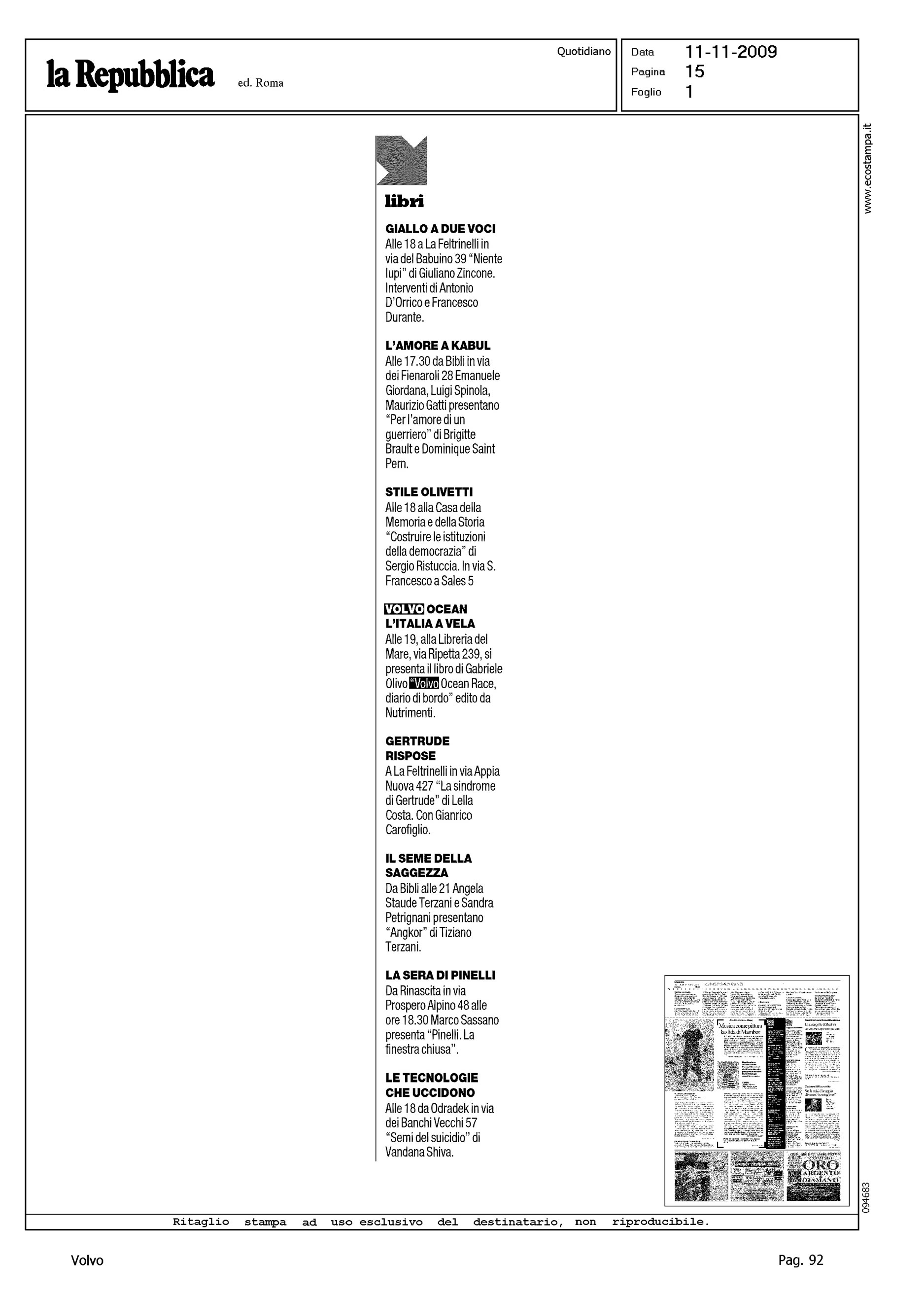 Author: Line: Corporate Model: Corporate Subject: Volvo Ocean Race Title: VOLVO OCEAN - L'ITALIA A VELAHighlight: PRESENTAZIONE DEL LIBRO A ROMA