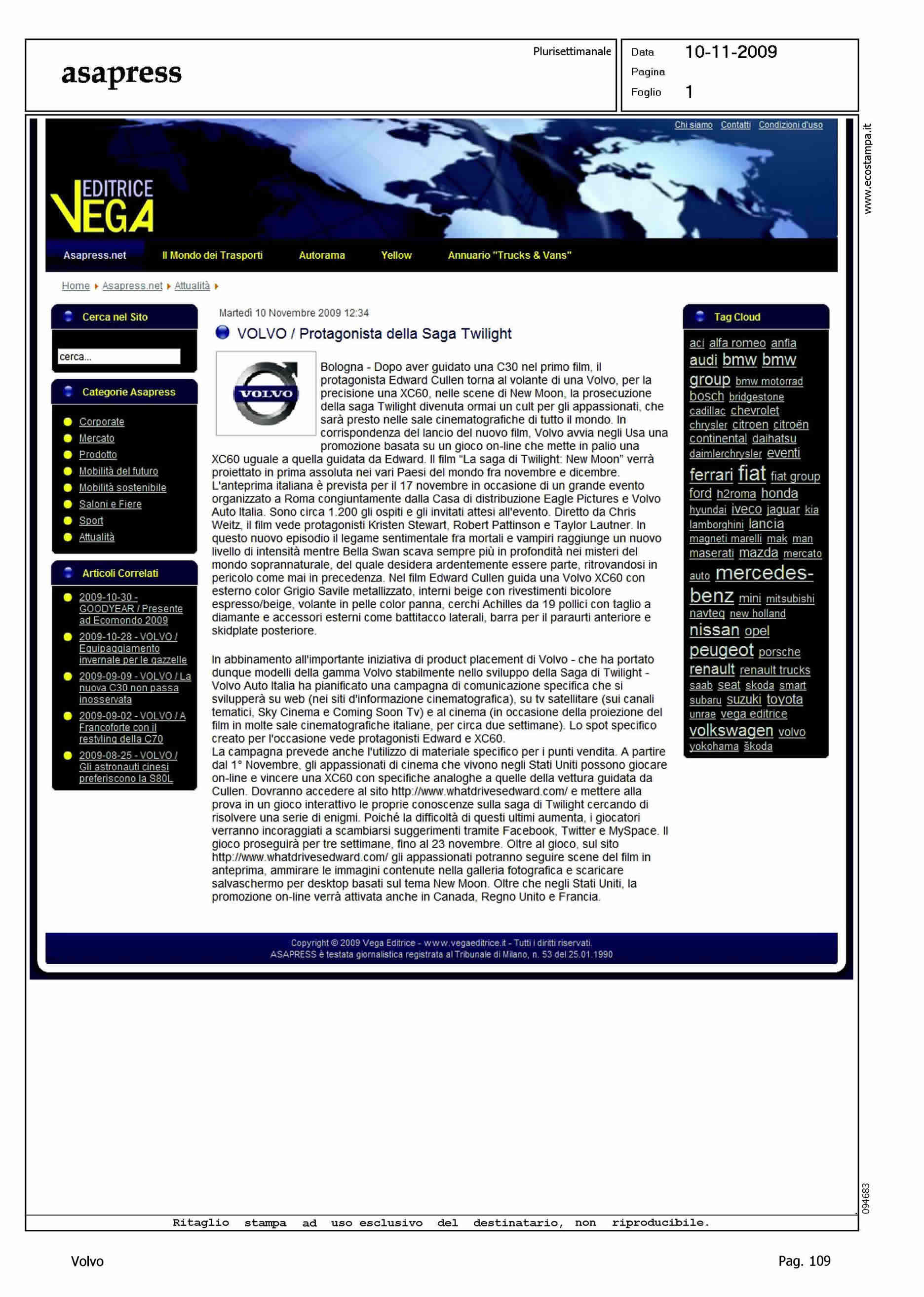 Author: Line: Corporate Model: Corporate Subject: - Title: VOLVO/PROTAGONISTA DELLA SAGA TWILIGHTHighlight: ANTEPRIMA DEL FILM