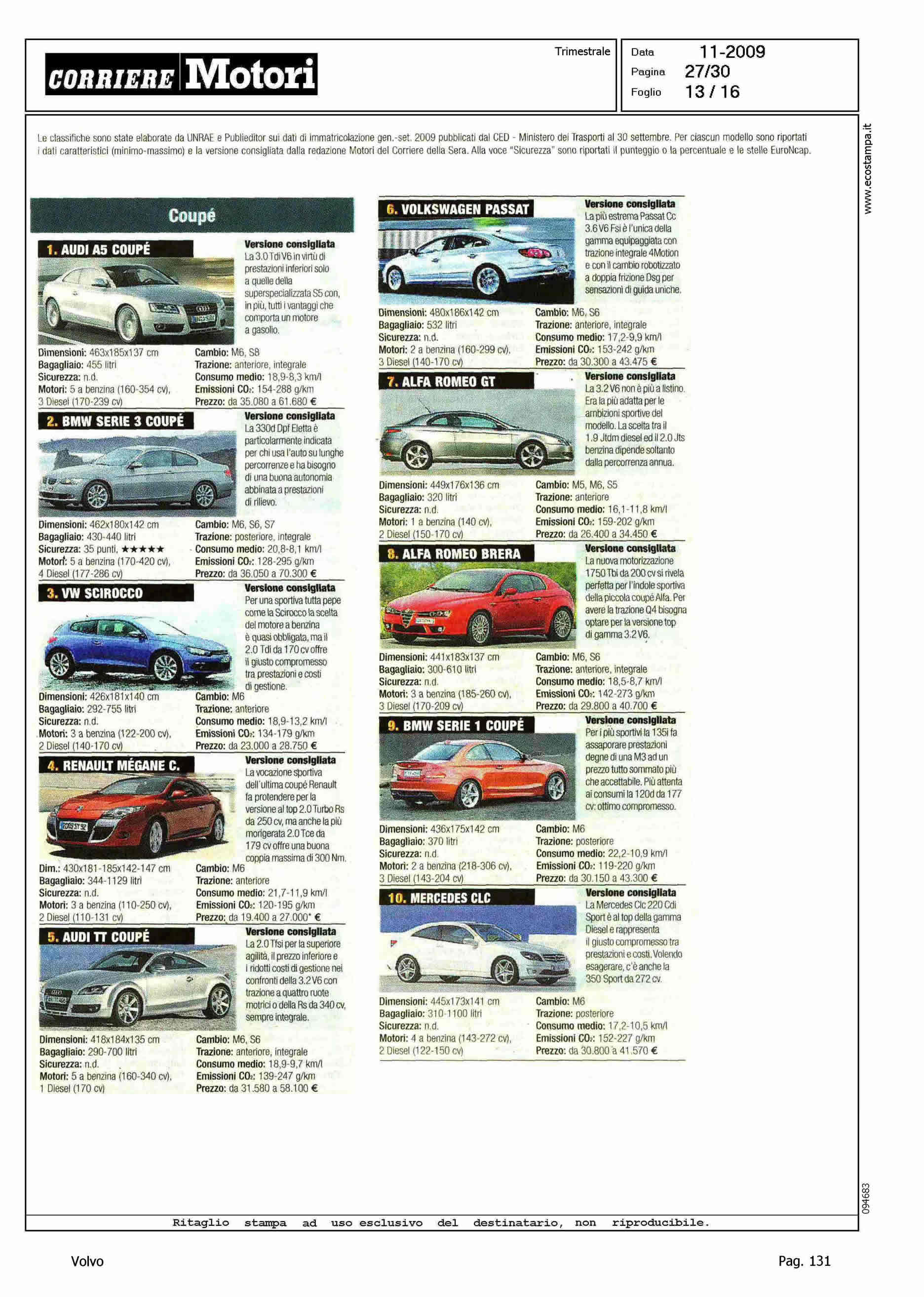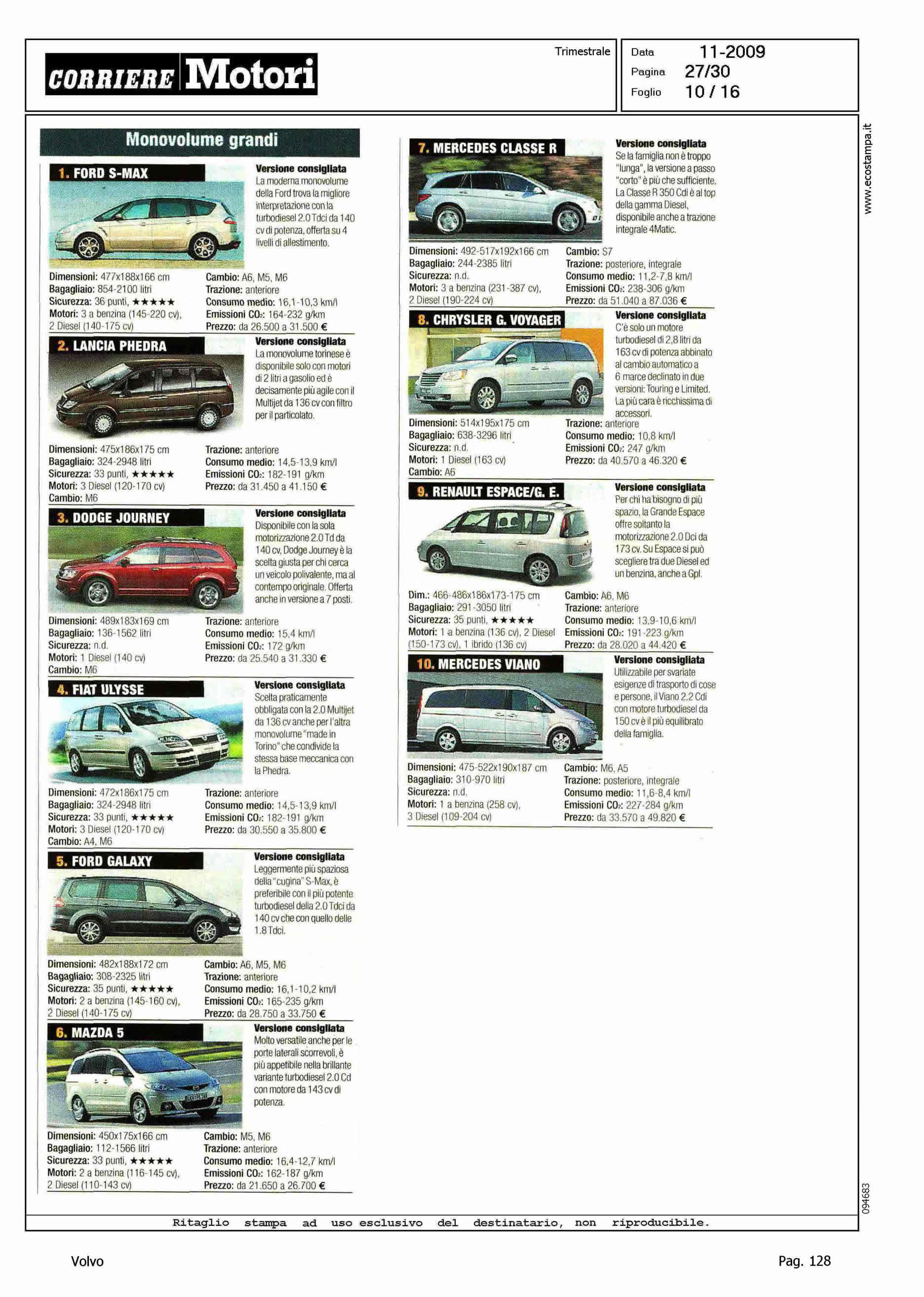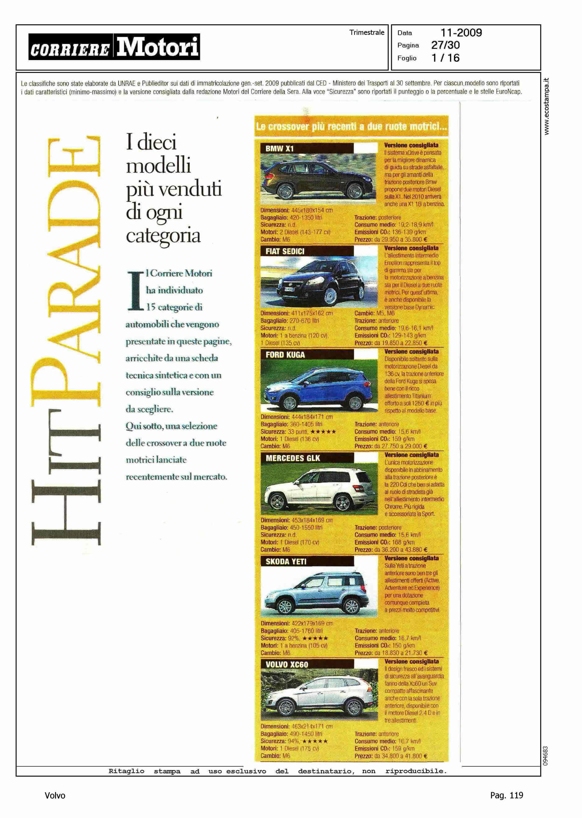 Author: Line: Corporate Model: Corporate Subject: - Title: HIT PARADEHighlight: I DIECI MODELLI PIU' VENDUTI DI OGNI CATEGORIA - POSIZIONI PER XC60, S80, V70 E XC90