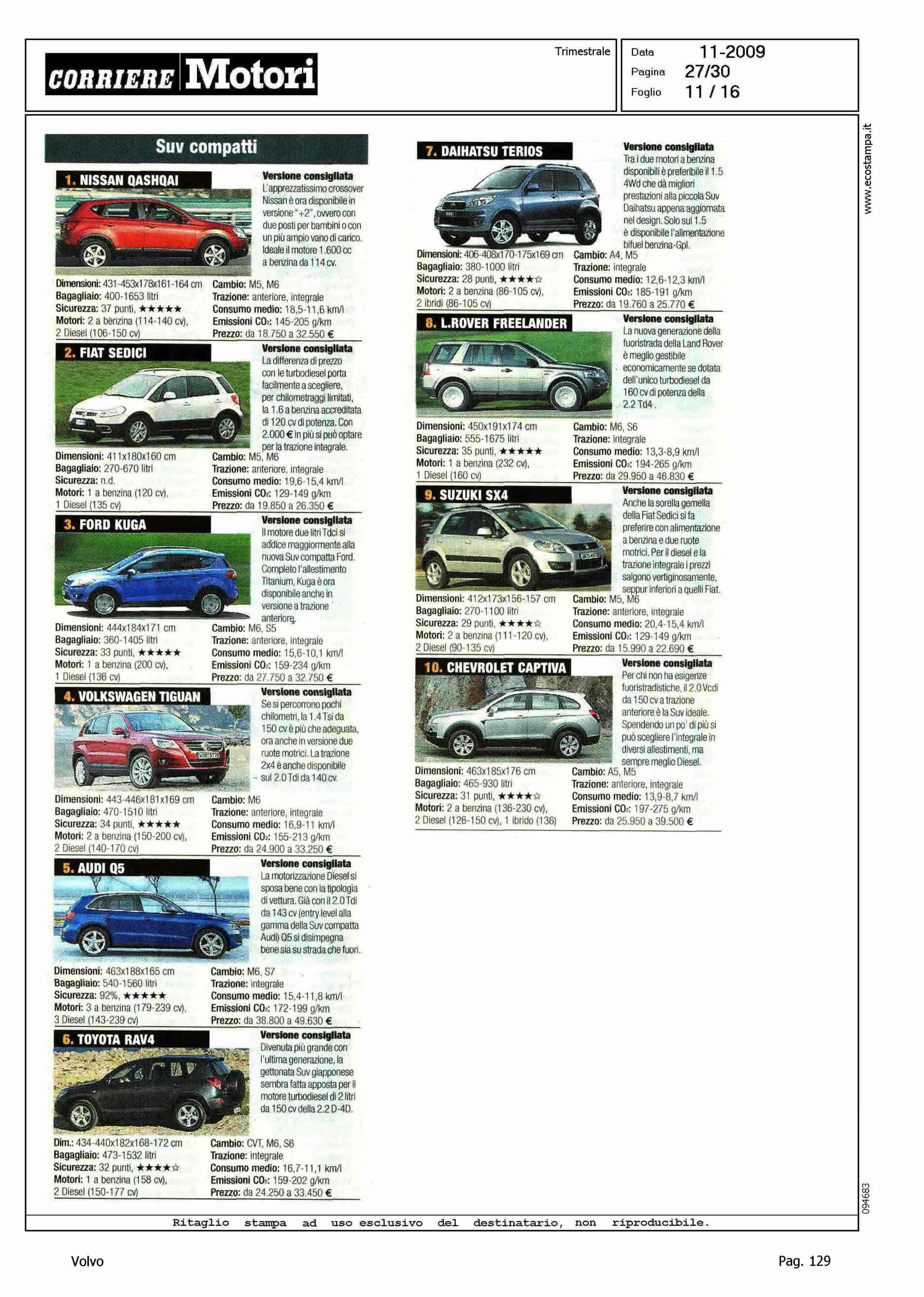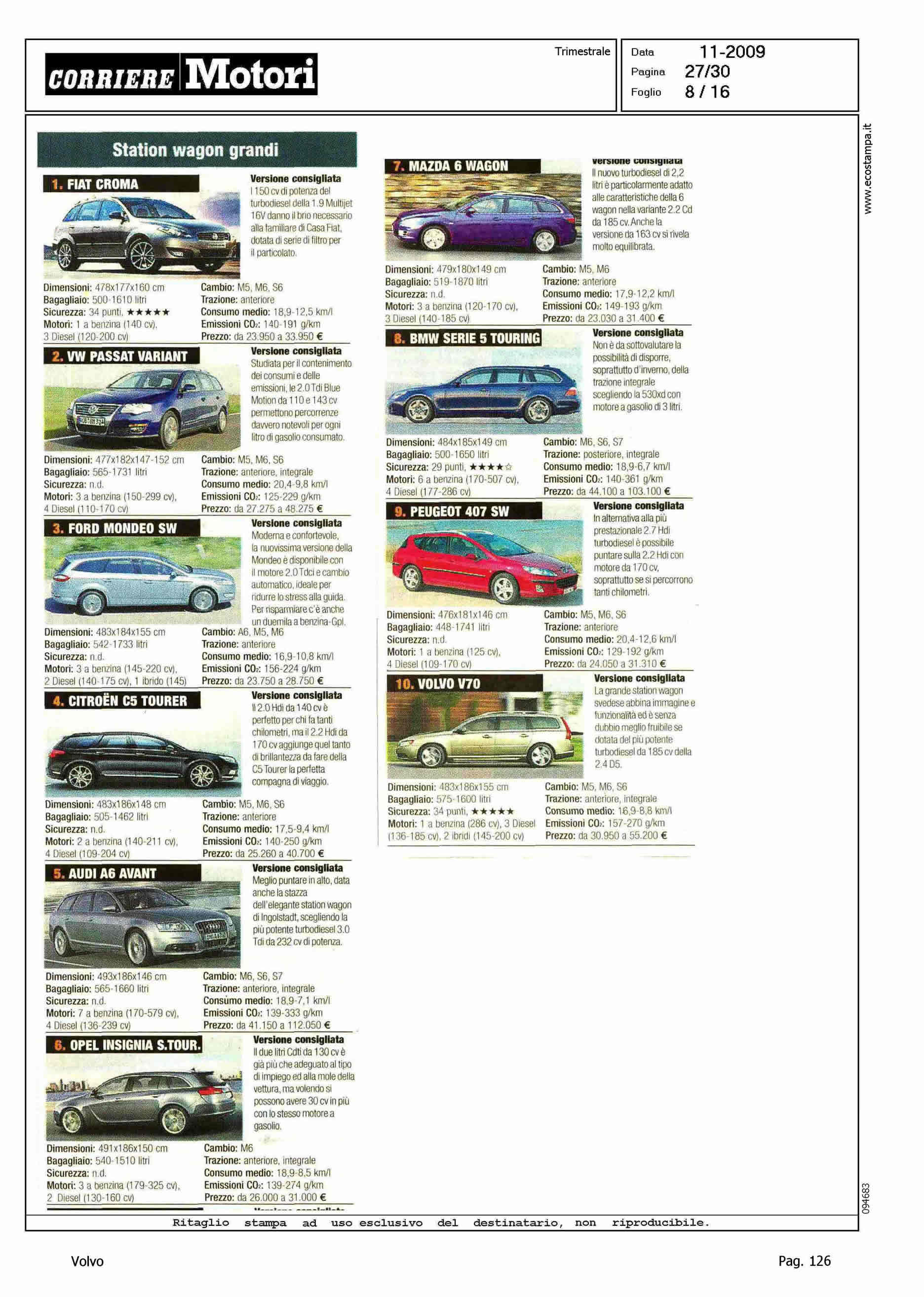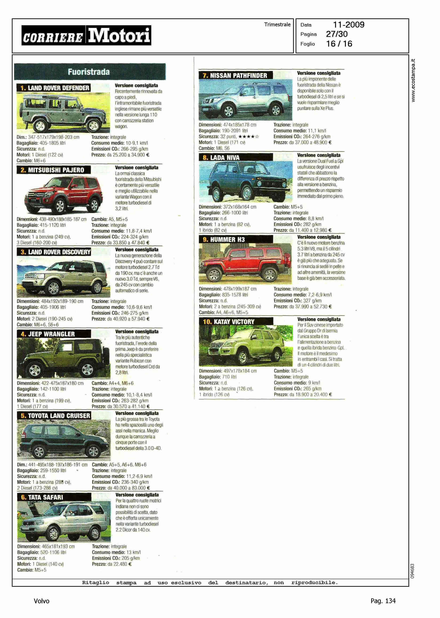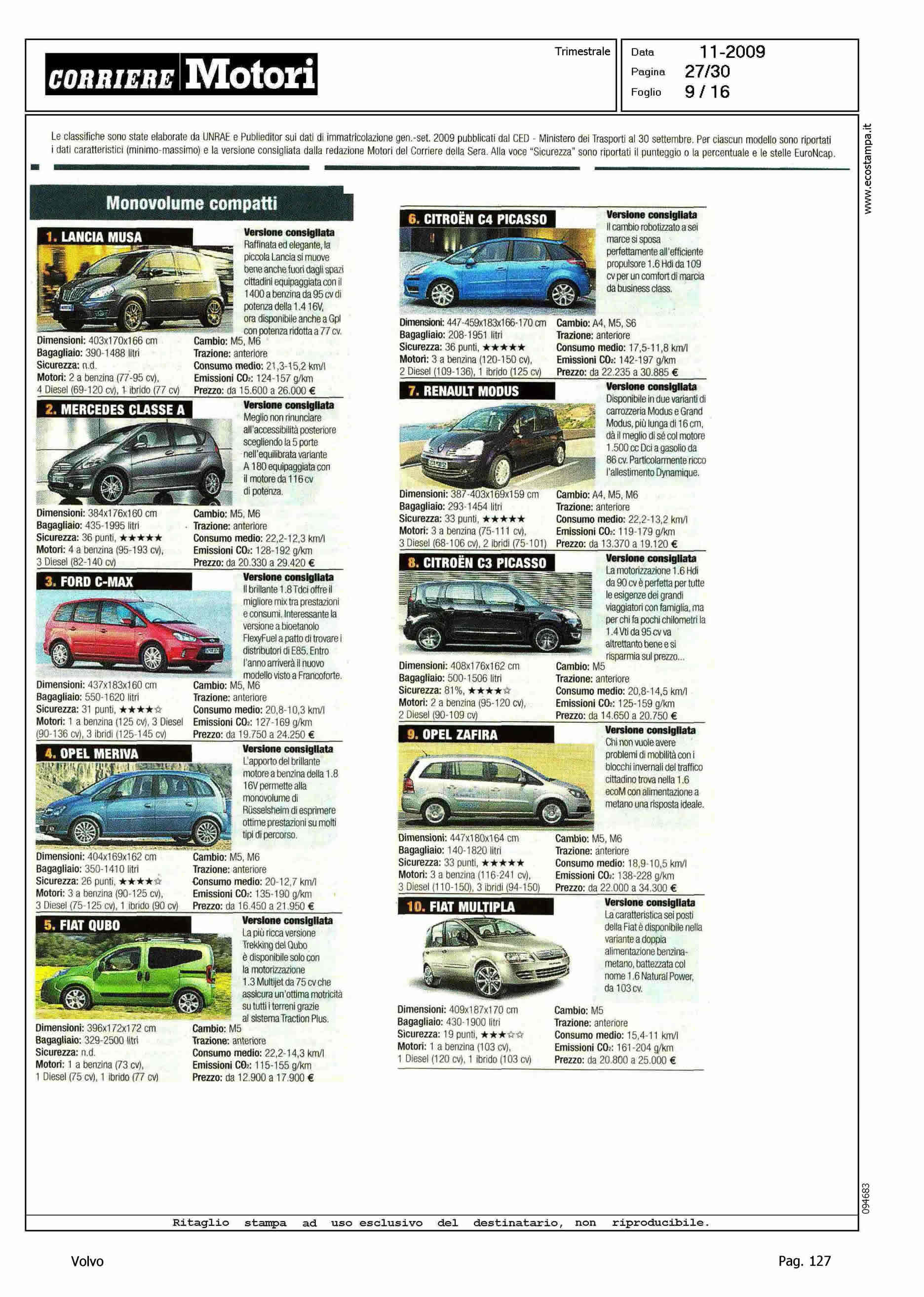 Author: Line: Corporate Model: Corporate Subject: - Title: HIT PARADEHighlight: I DIECI MODELLI PIU' VENDUTI DI OGNI CATEGORIA - POSIZIONI PER XC60, S80, V70 E XC90