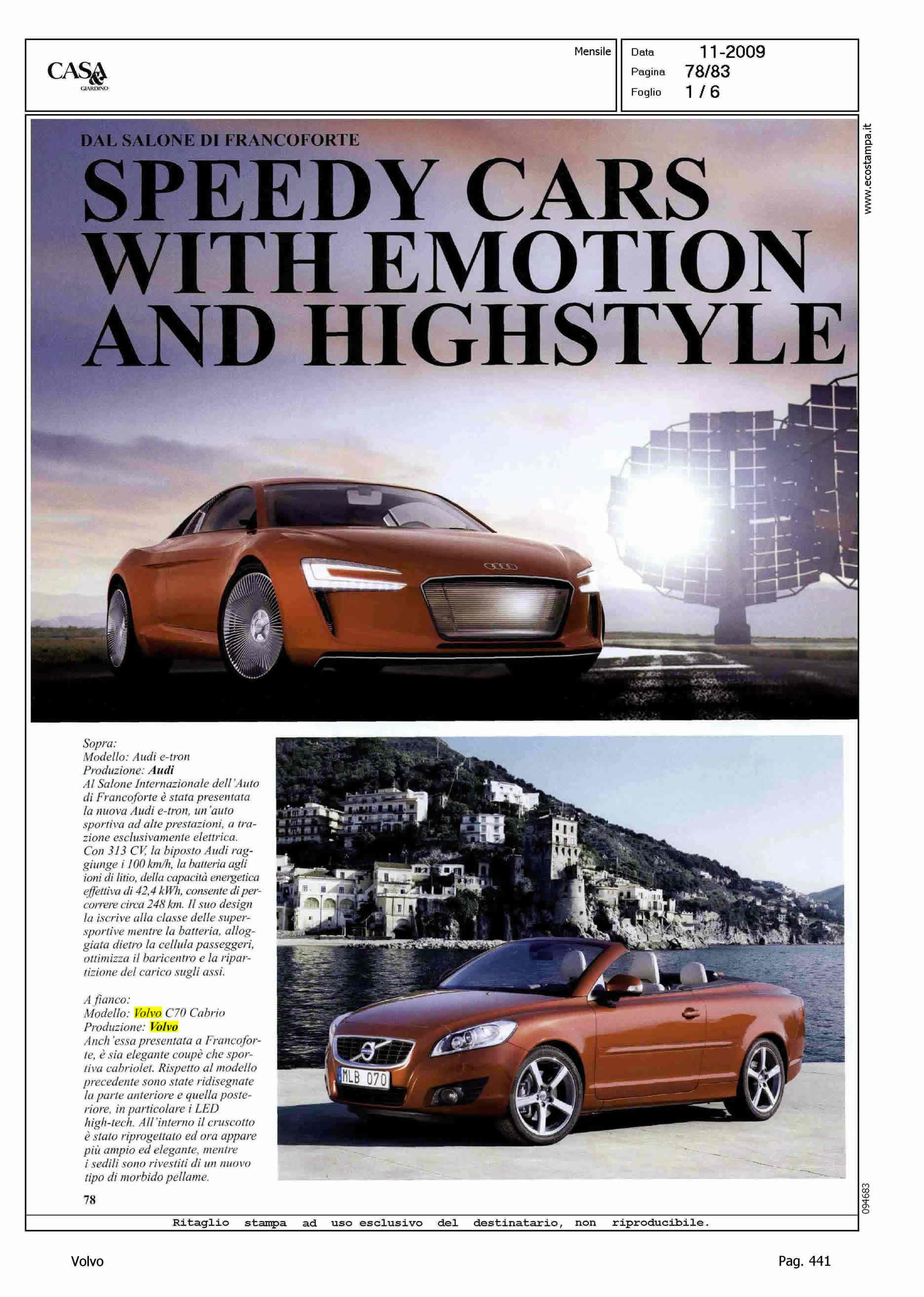 Author: Line: Corporate Model: Volvo C70 Convertible Subject: - Title: SPEEDY CARS WITH EMOTION AND HIGH STYLEHighlight: FRANCOFORTE, NOVITA' DAL SALONE