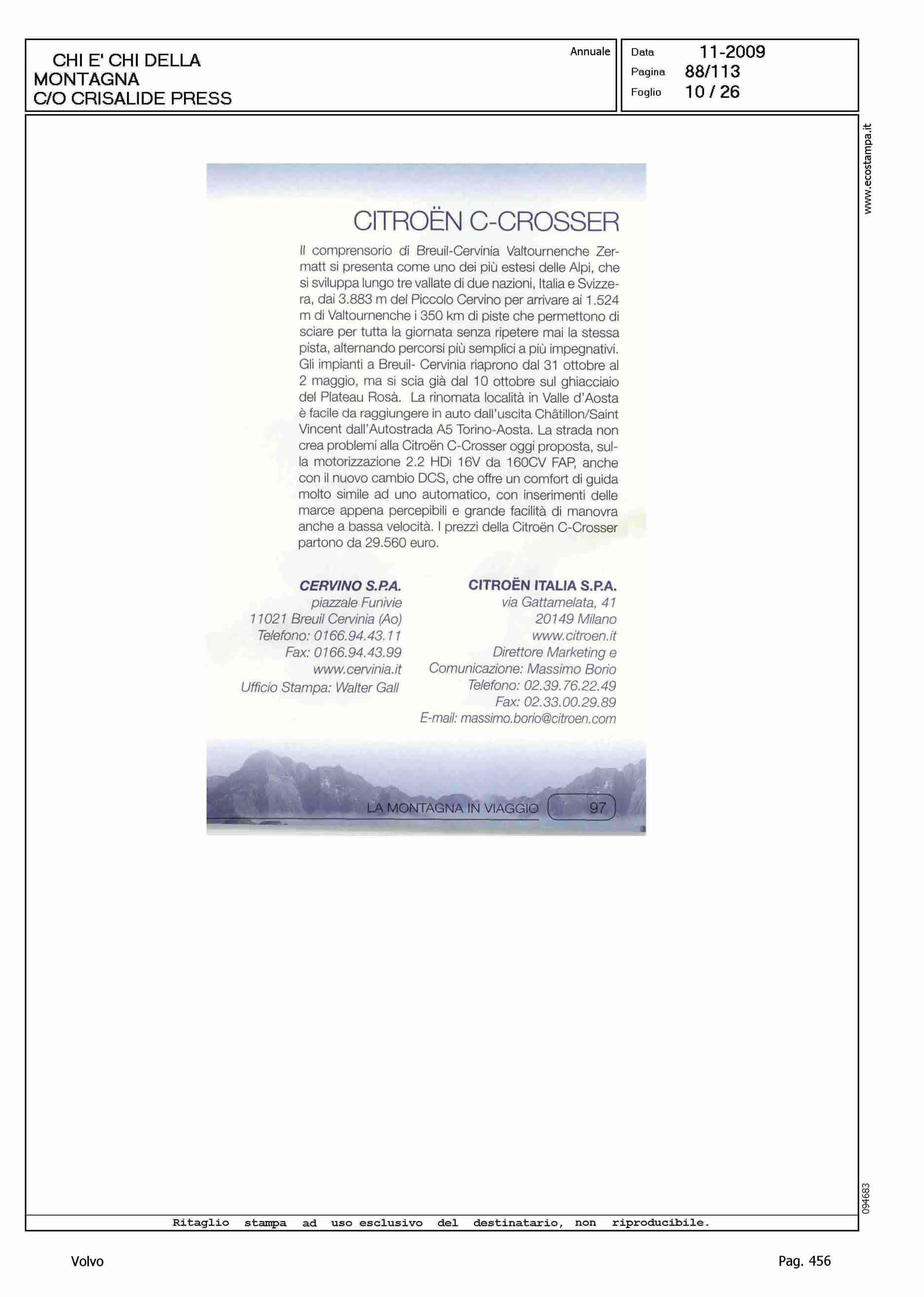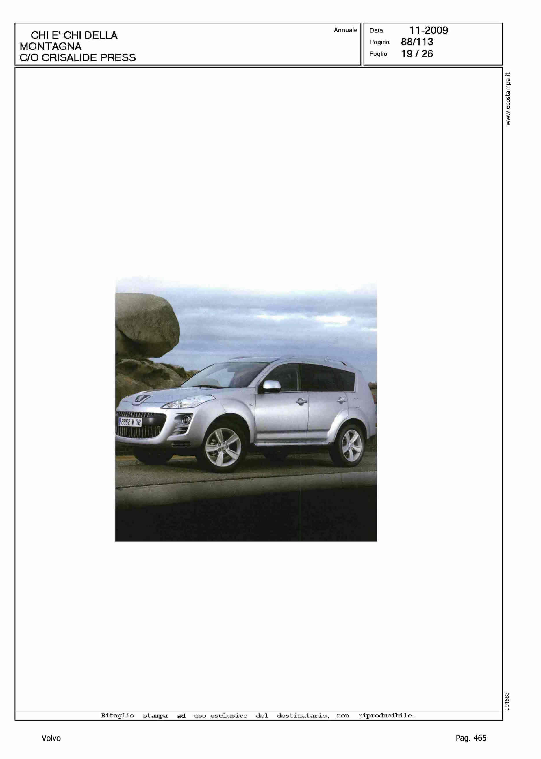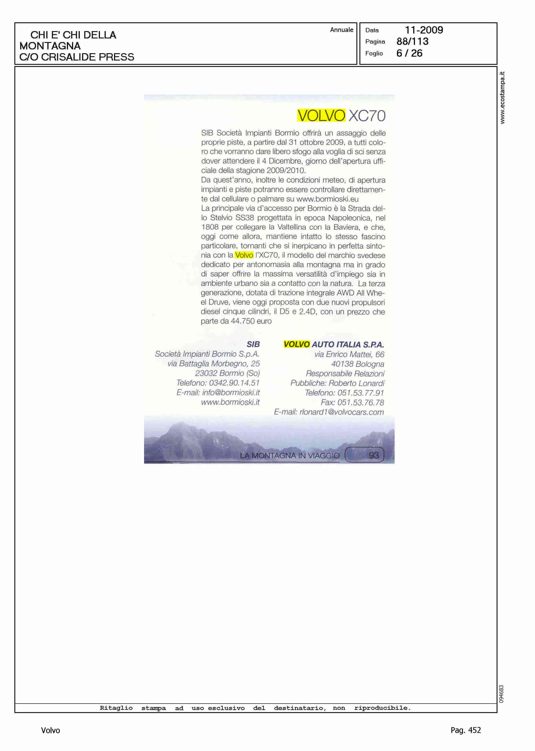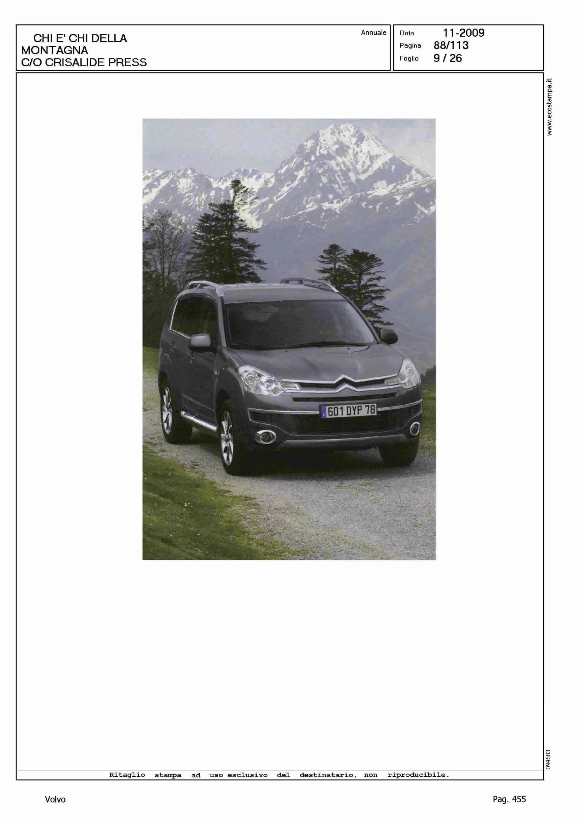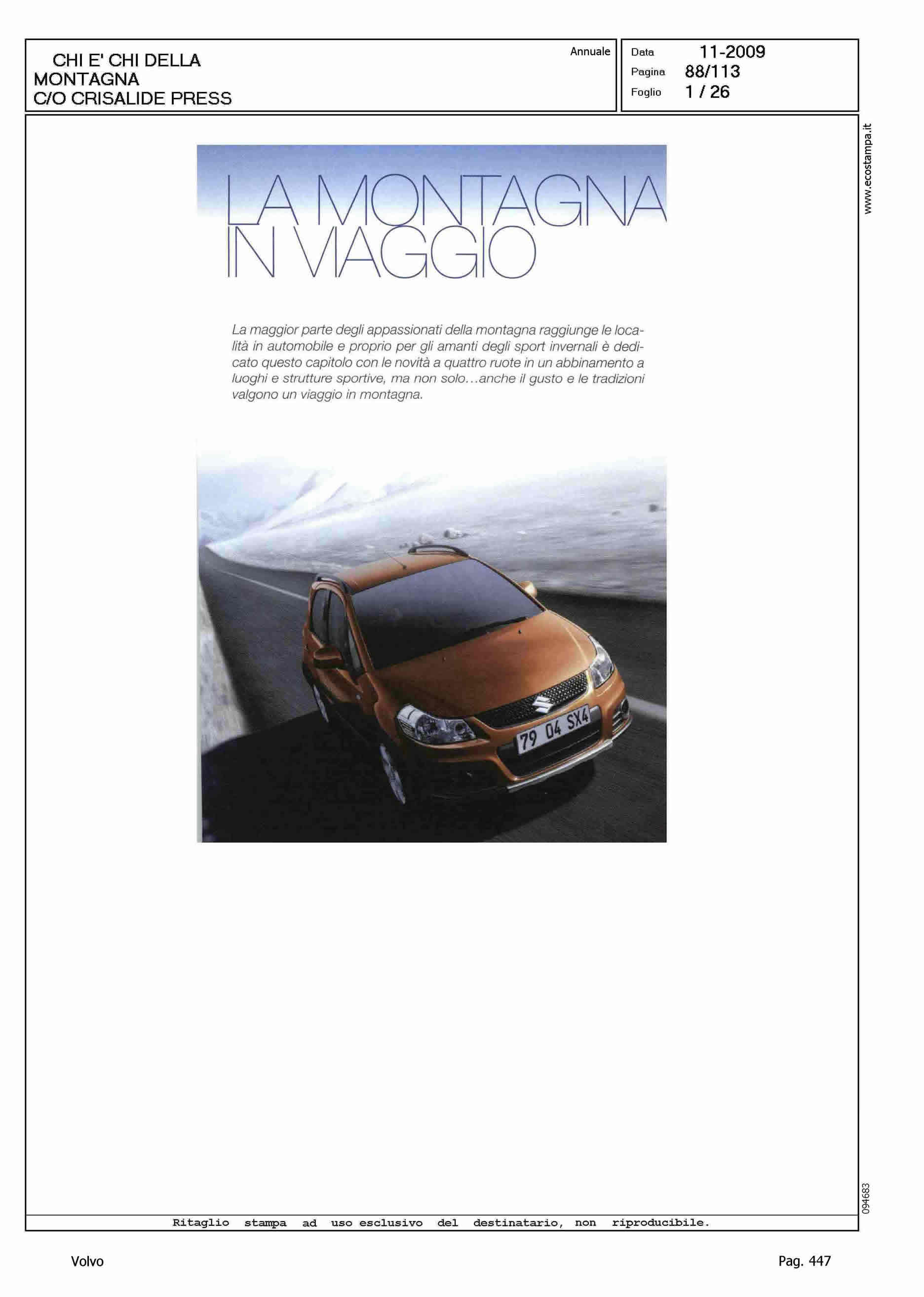 Author: Line: Corporate Model: Volvo XC70 Subject: - Title: LA MONTAGNA IN VIAGGIOHighlight: SCHEDE VETTURE NEL CHI E' CHI DELLA MONTAGNA DI CRISALIDE PRESS