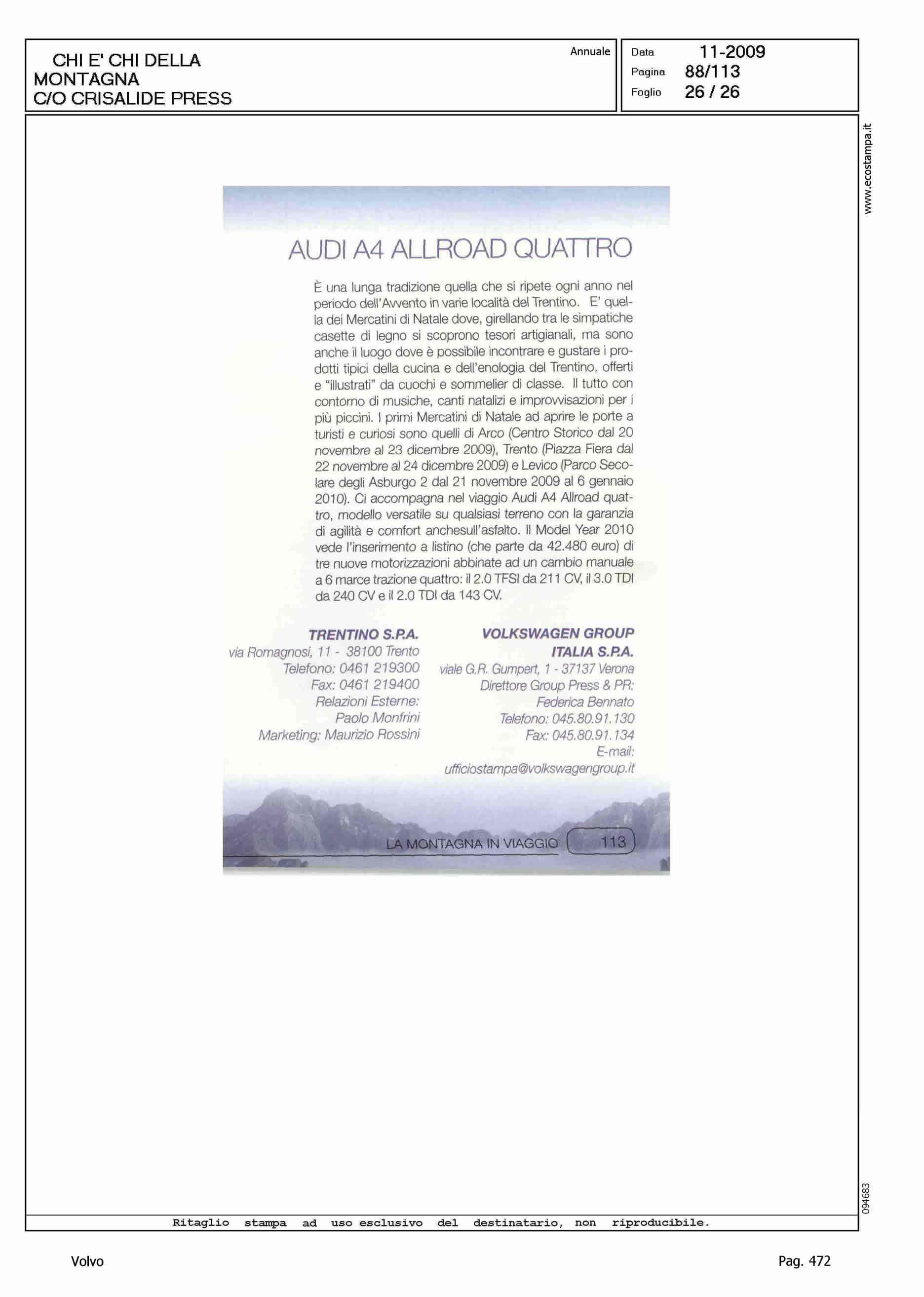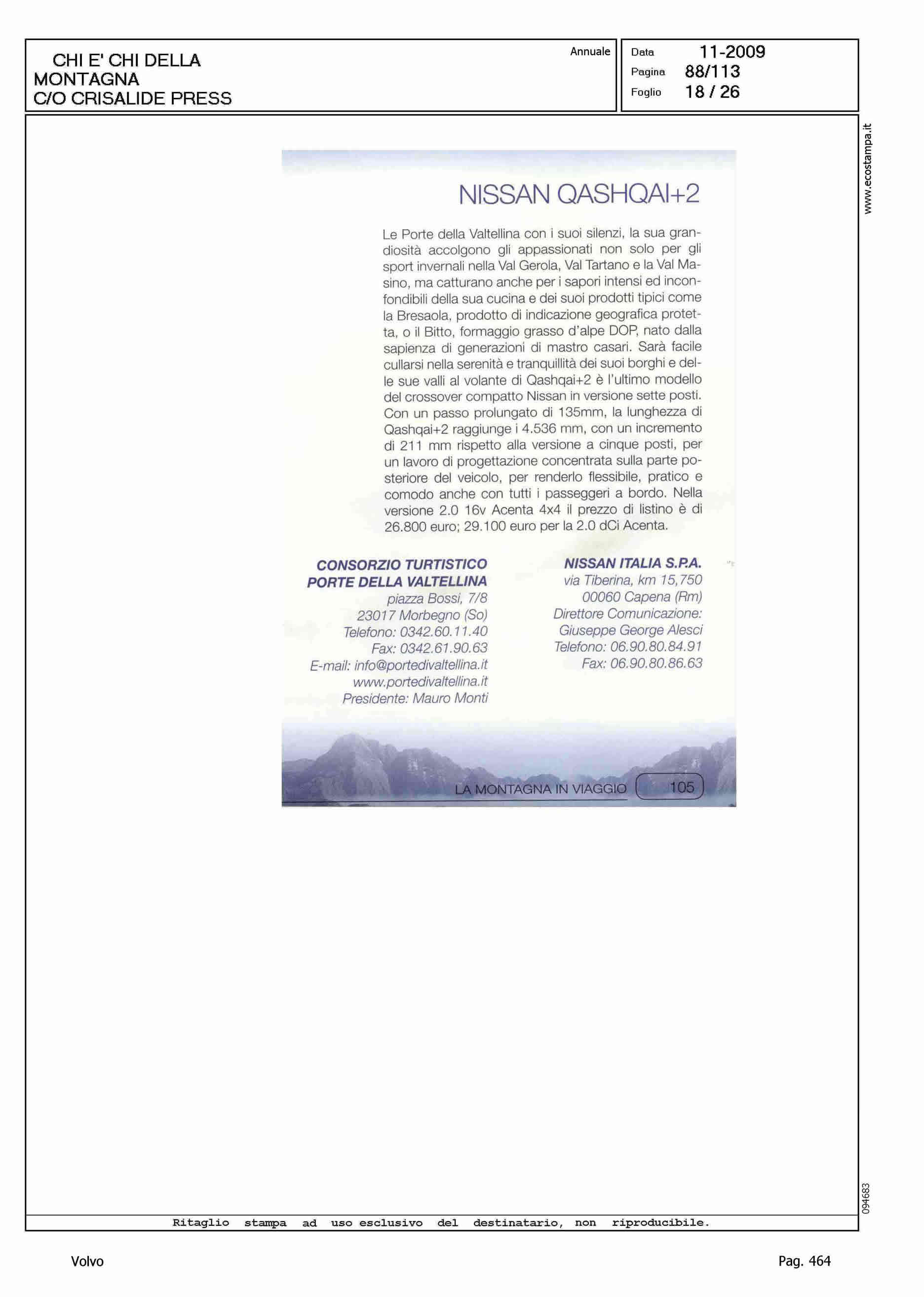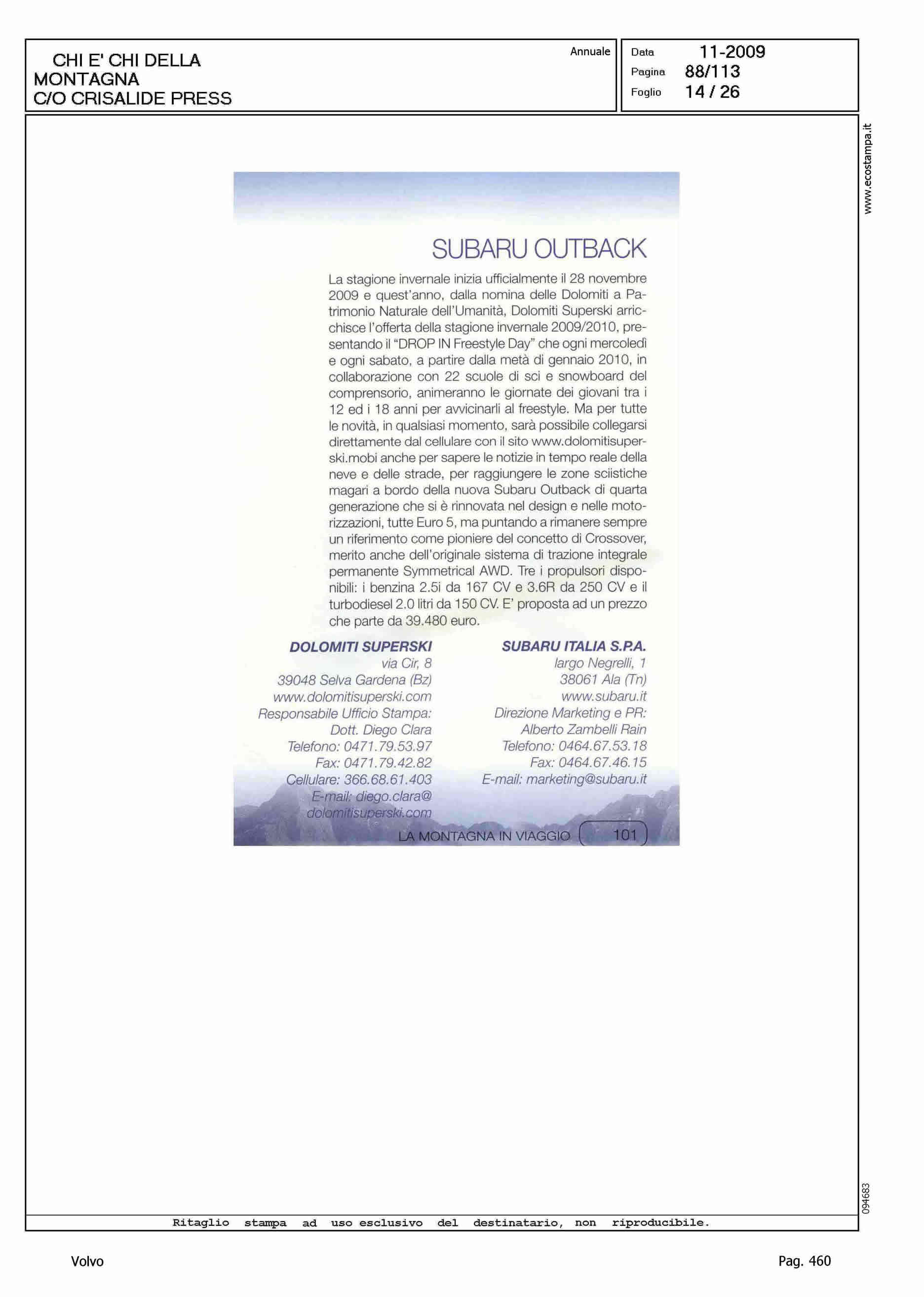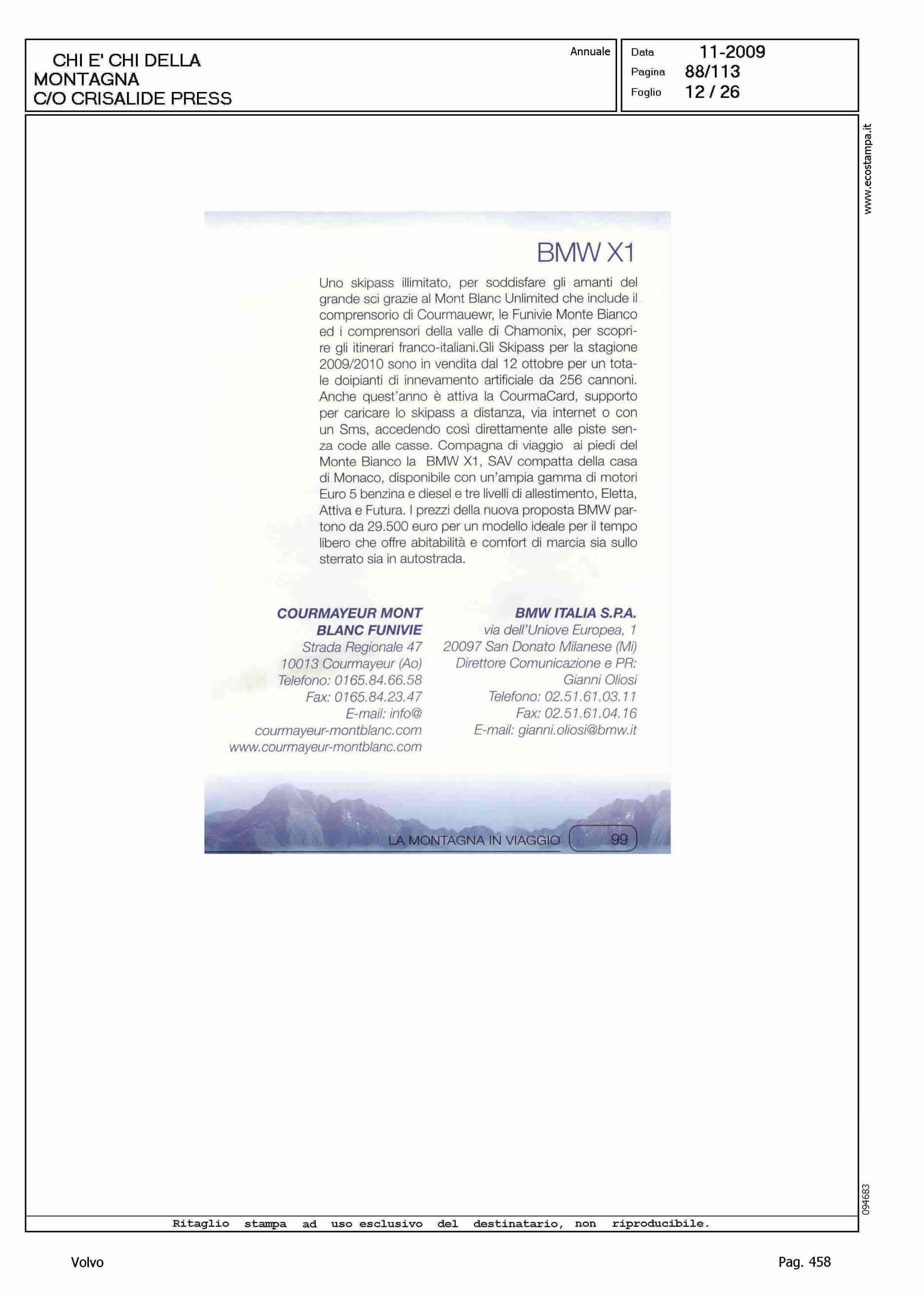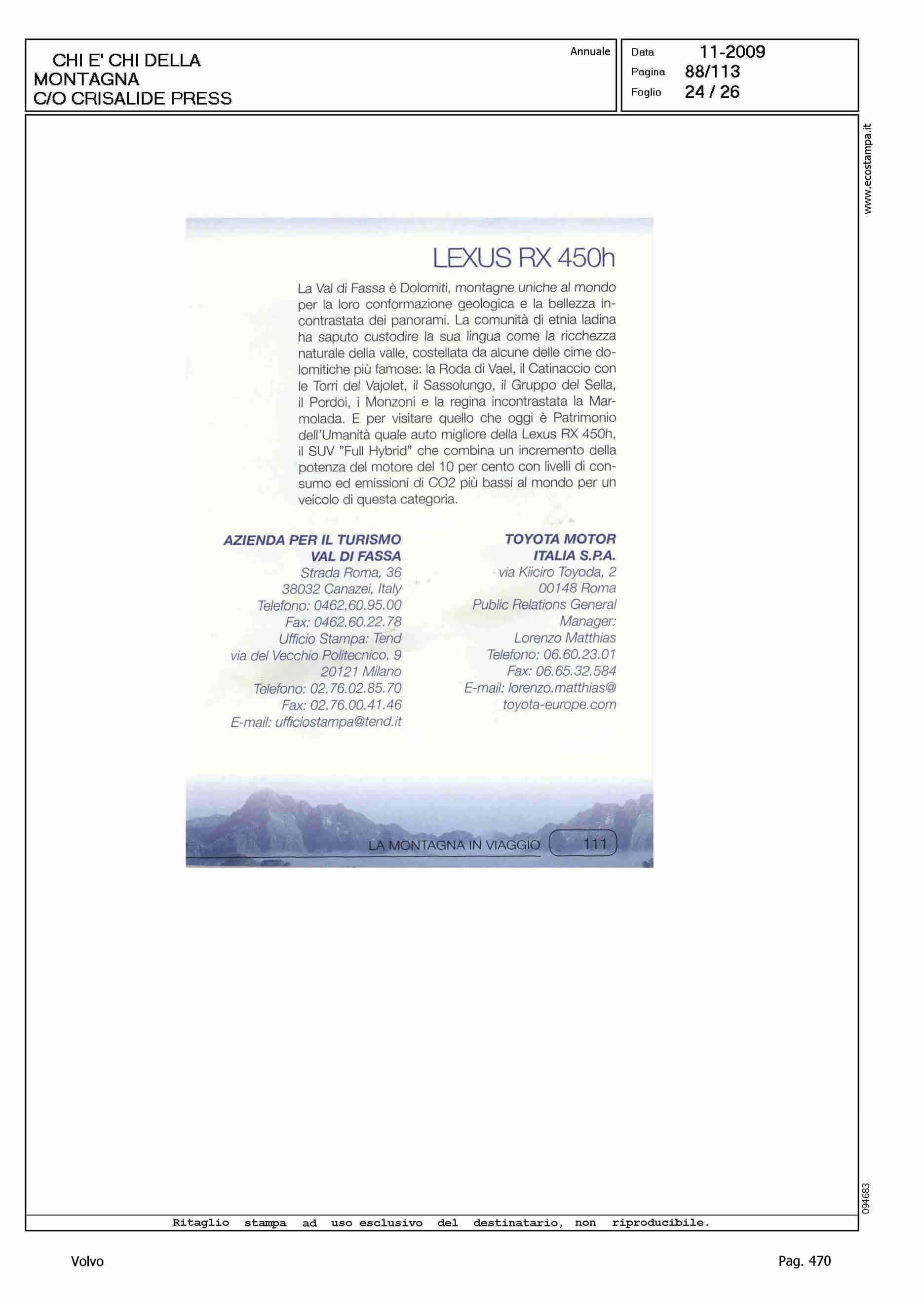 Author: Line: Corporate Model: Volvo XC70 Subject: - Title: LA MONTAGNA IN VIAGGIOHighlight: SCHEDE VETTURE NEL CHI E' CHI DELLA MONTAGNA DI CRISALIDE PRESS