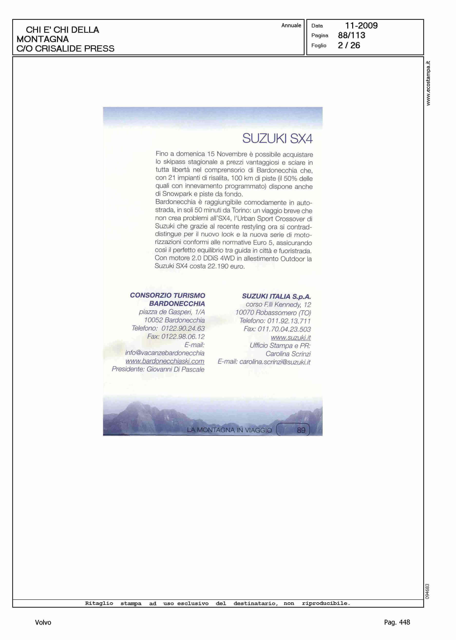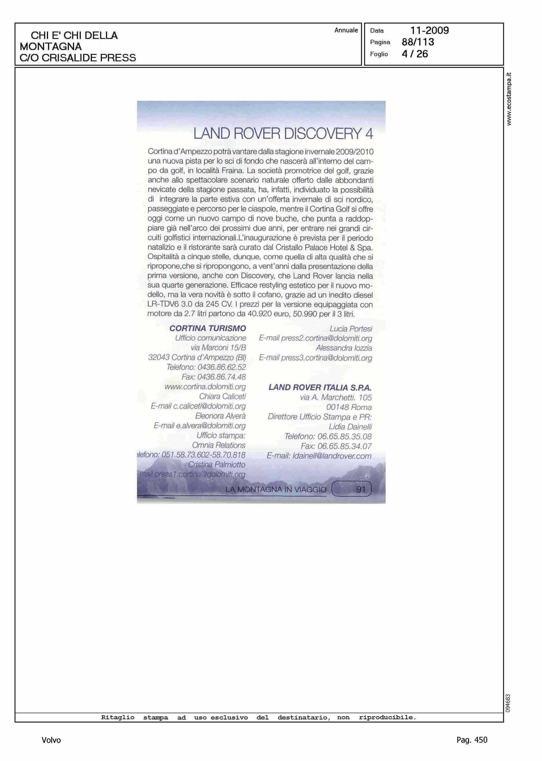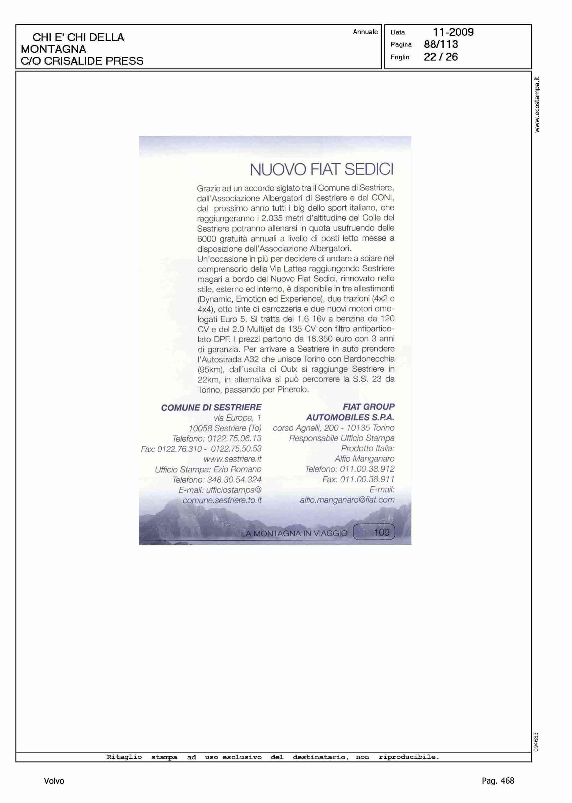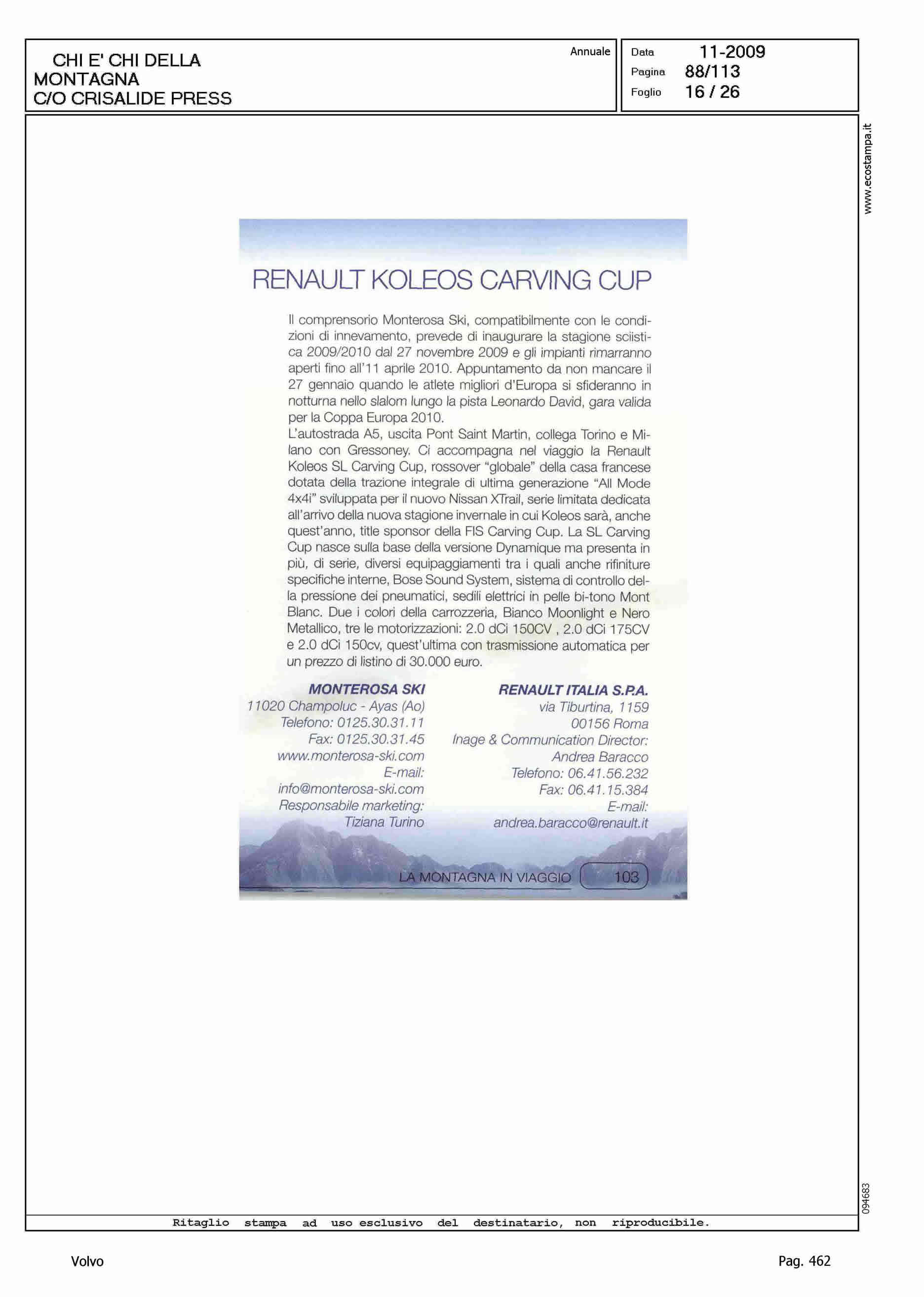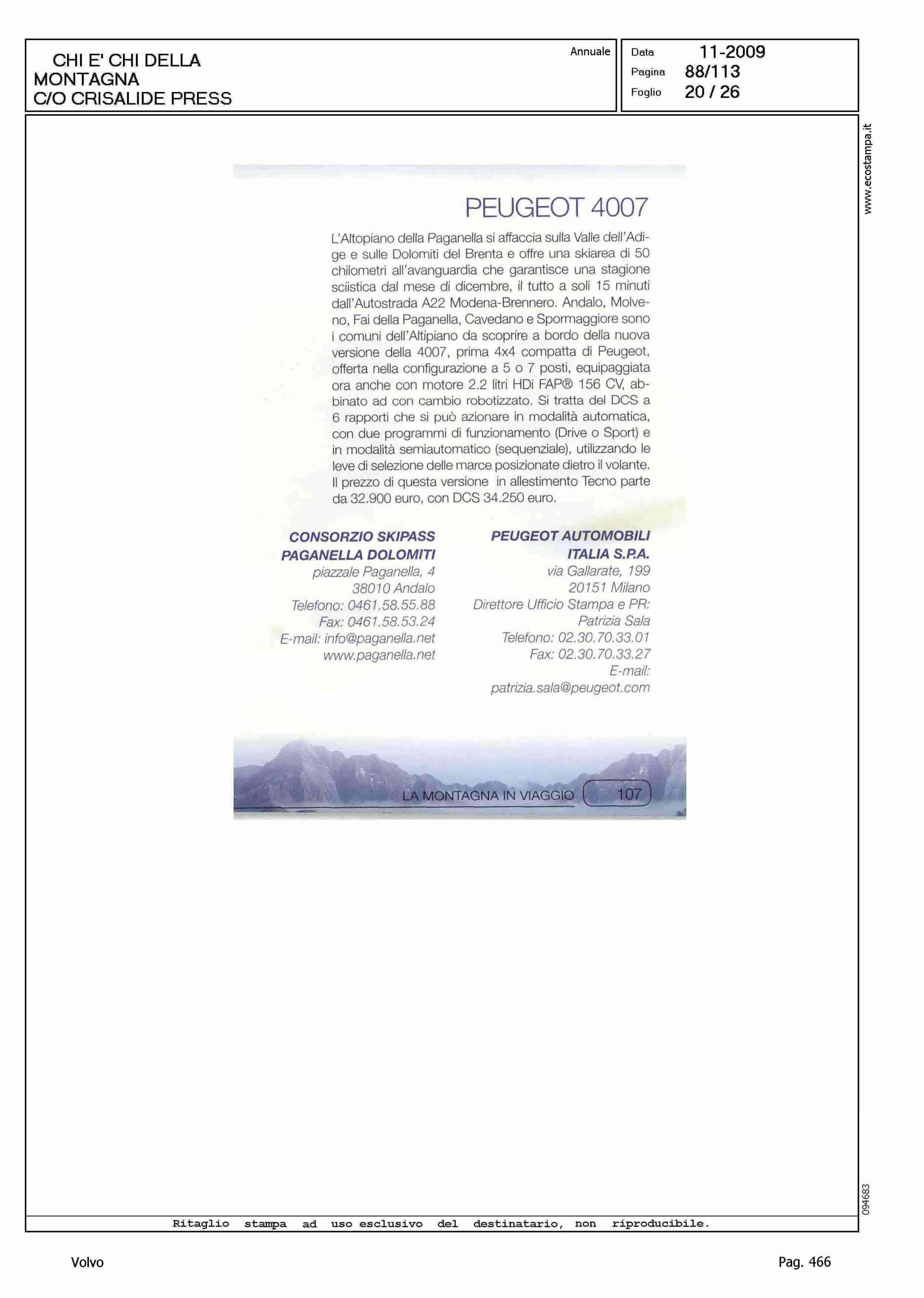 Author: Line: Corporate Model: Volvo XC70 Subject: - Title: LA MONTAGNA IN VIAGGIOHighlight: SCHEDE VETTURE NEL CHI E' CHI DELLA MONTAGNA DI CRISALIDE PRESS