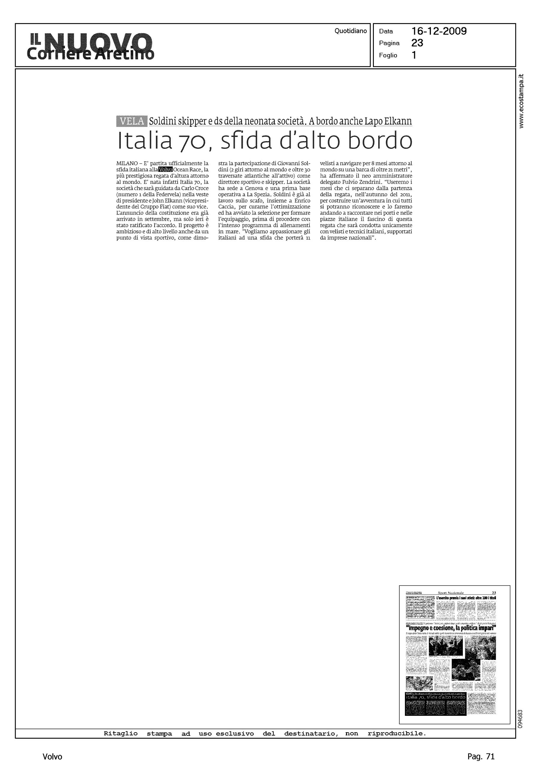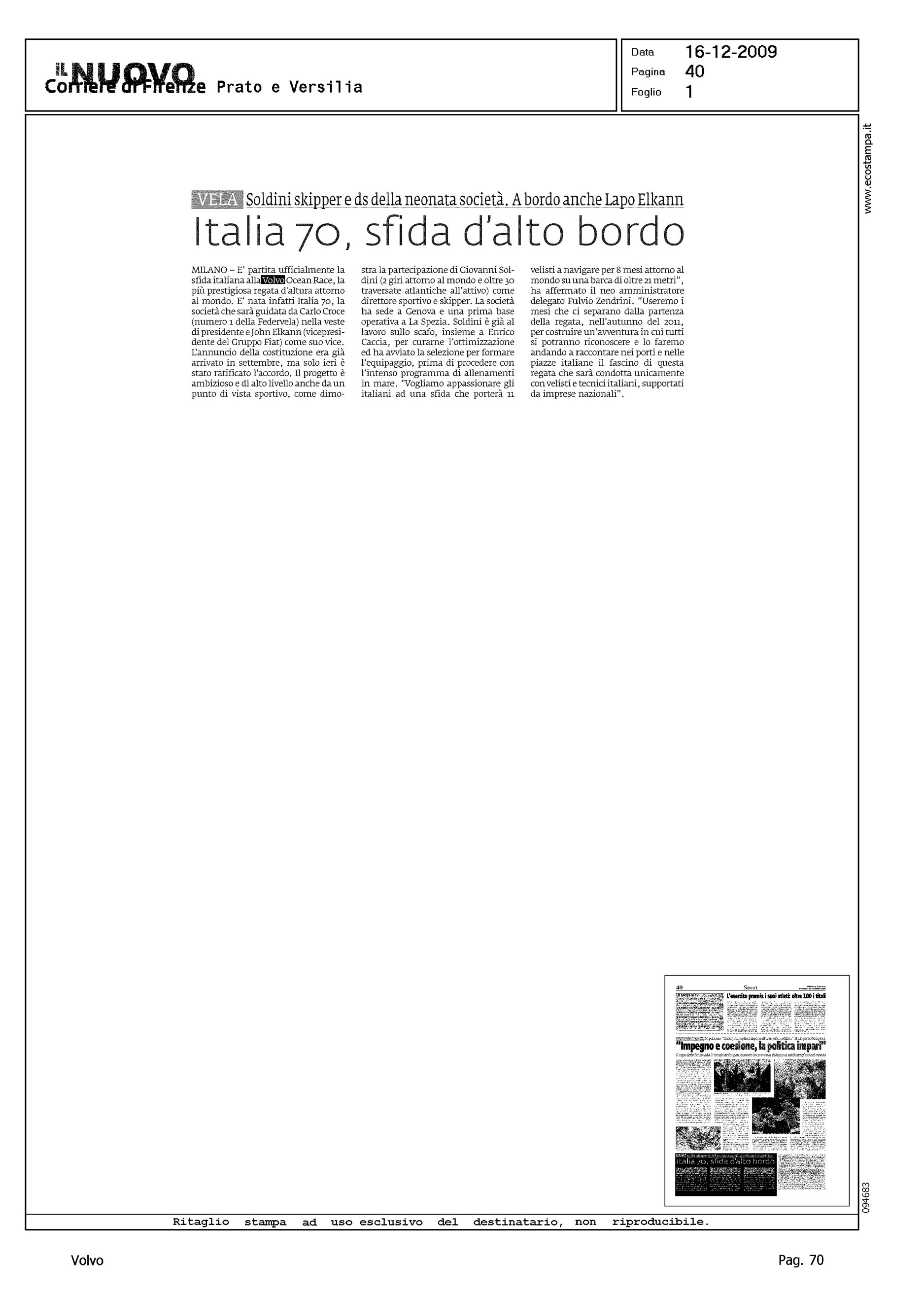 Author: Line: Corporate Model: Corporate Subject: Volvo Ocean Race Title: ITALIA 70, SFIDA D'ALTO BORDOHighlight: PARTECIPAZIONE ITALIA ALLA VOR