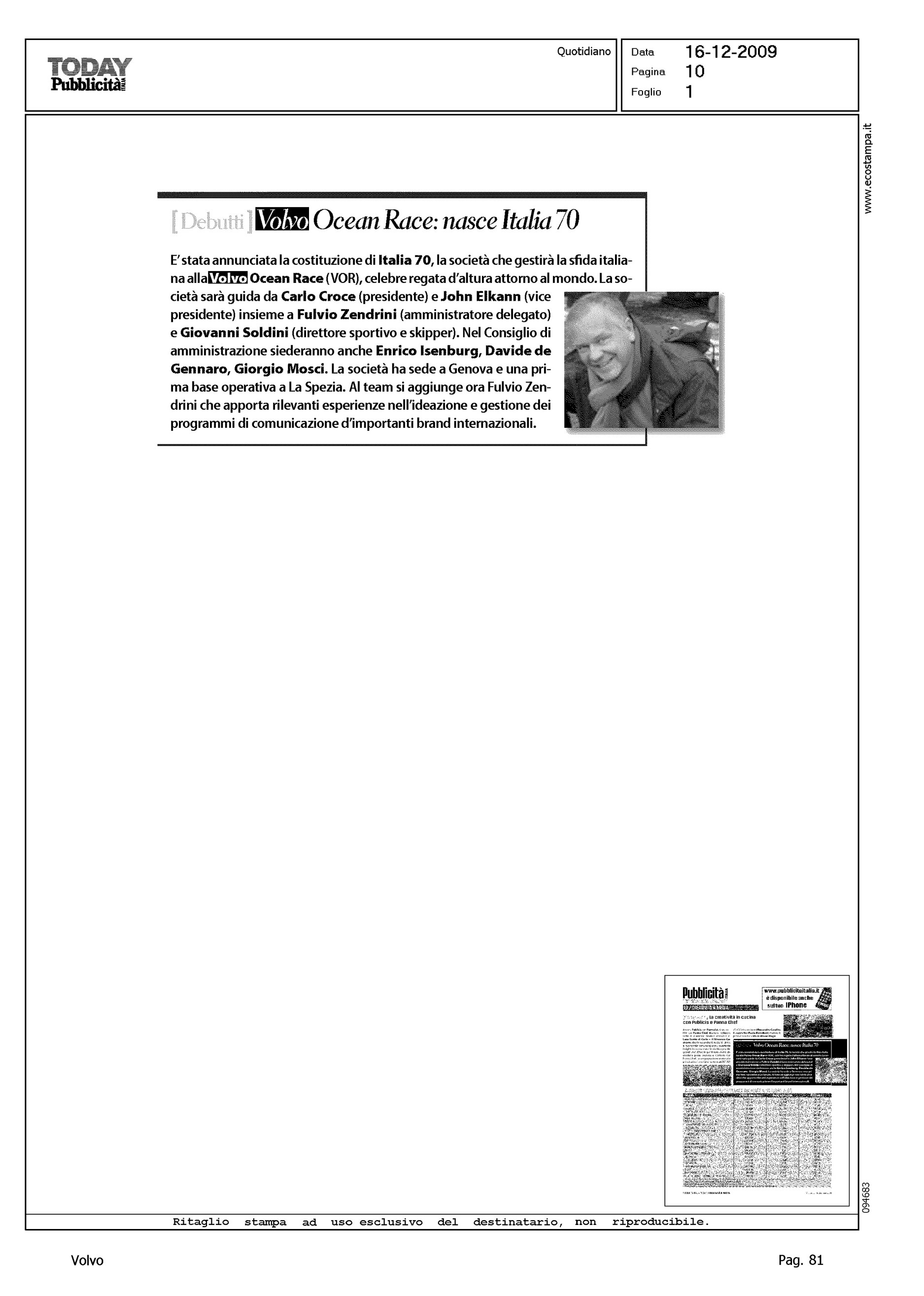 Author: Line: Corporate Model: Corporate Subject: Volvo Ocean Race Title: VOLVO OCEAN RACE: NASCE ITALIA 70Highlight: PARTECIPAZIONE ITALIA ALLA VOR