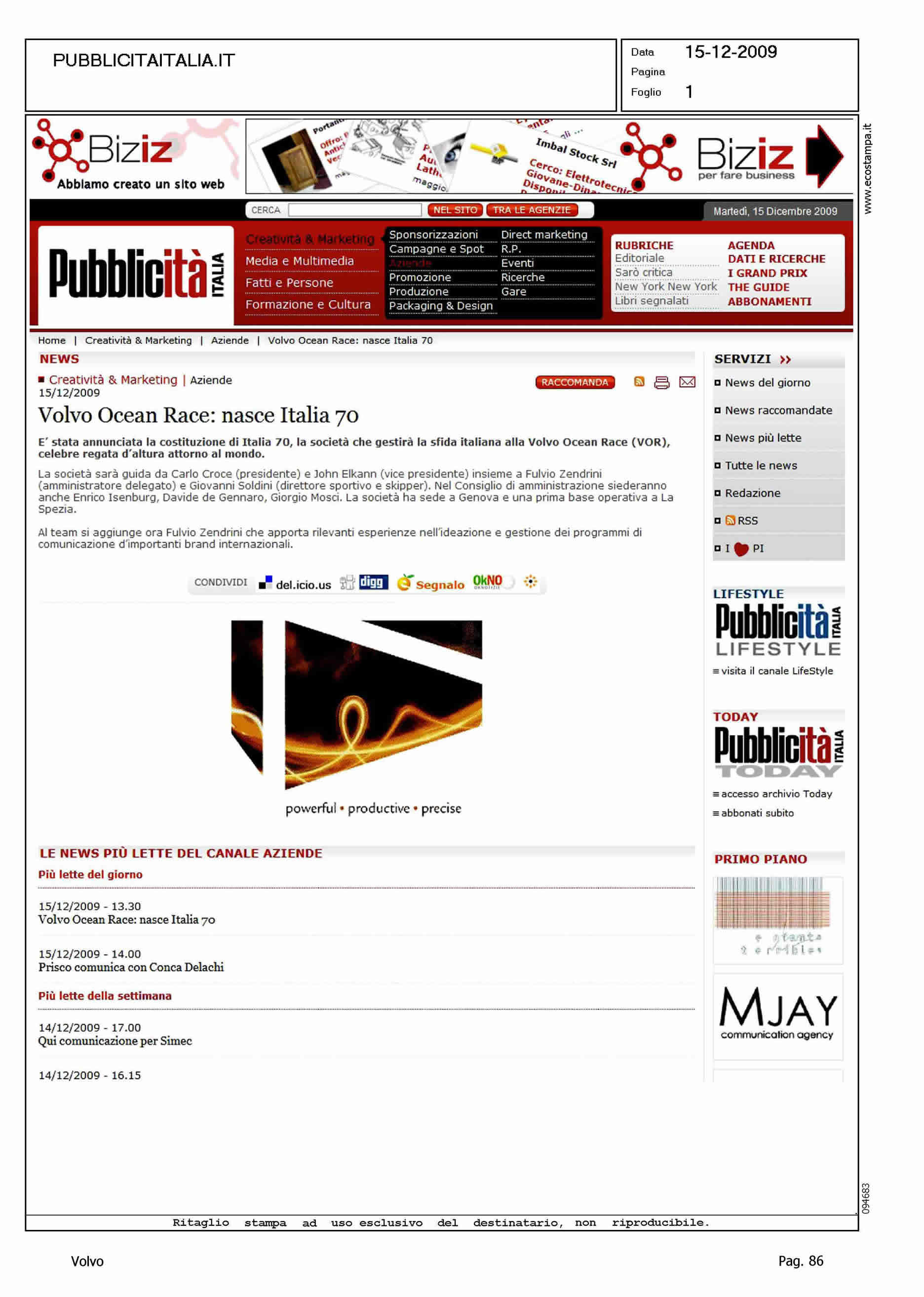 Author: Line: Corporate Model: Corporate Subject: Volvo Ocean Race Title: VOLVO OCEAN RACE: NASCE ITALIA 70Highlight: PARTECIPAZIONE ITALIA ALLA VOR
