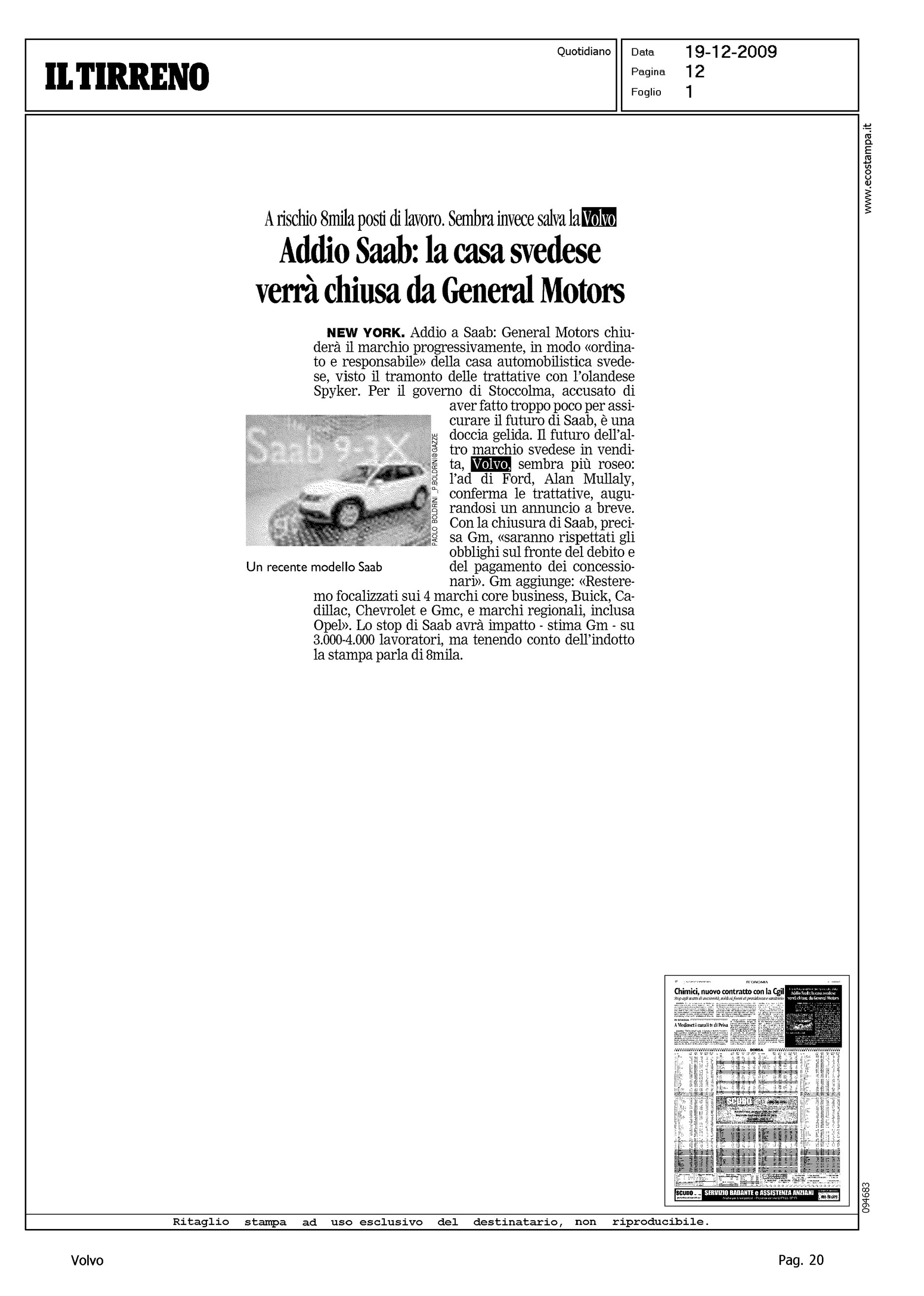 Author: Line: Corporate Model: Corporate Subject: - Title: ADDIO SAAB:... SEMBRA INVECE SALVA LA VOLVOHighlight: VENDITA VOLVO ALLA GEELY