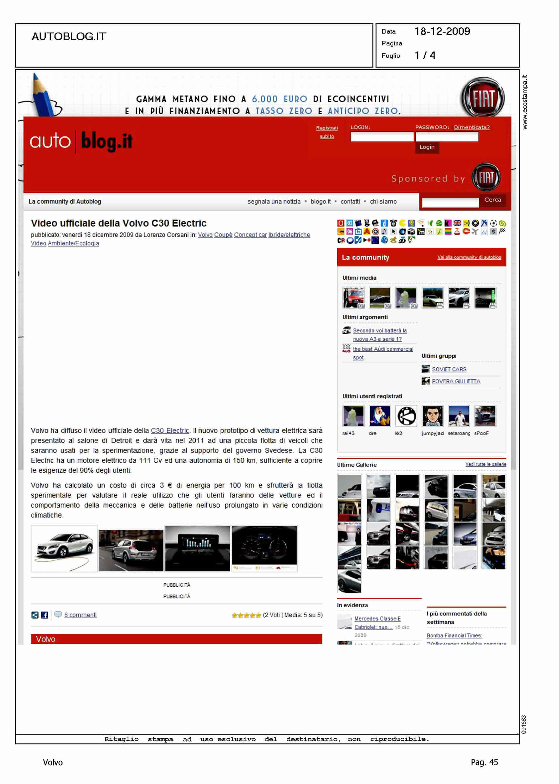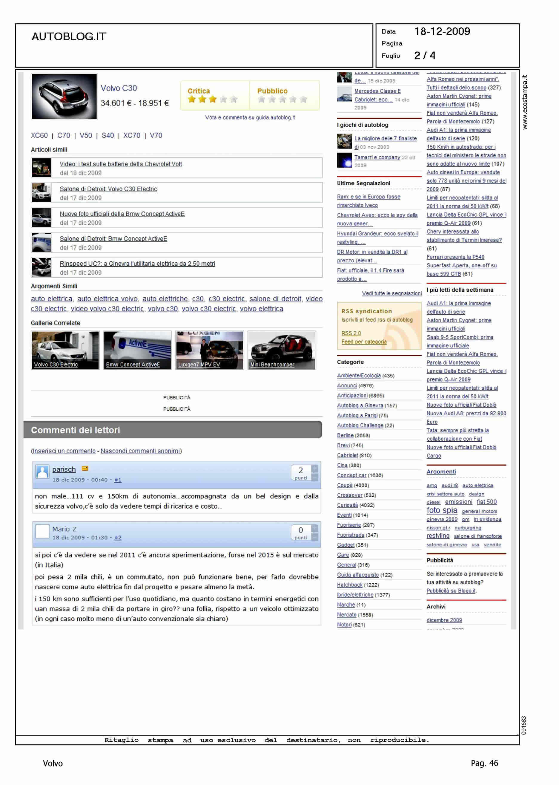 Author: Line: Corporate Model: Volvo C30 Subject: - Title: VIDEO UFFICIALE DELLA VOLVO C30 ELECTRICHighlight: 2011 PRESENTAZIONE - POTENZA - AUTONOMIA - COSTO PER 100 KM