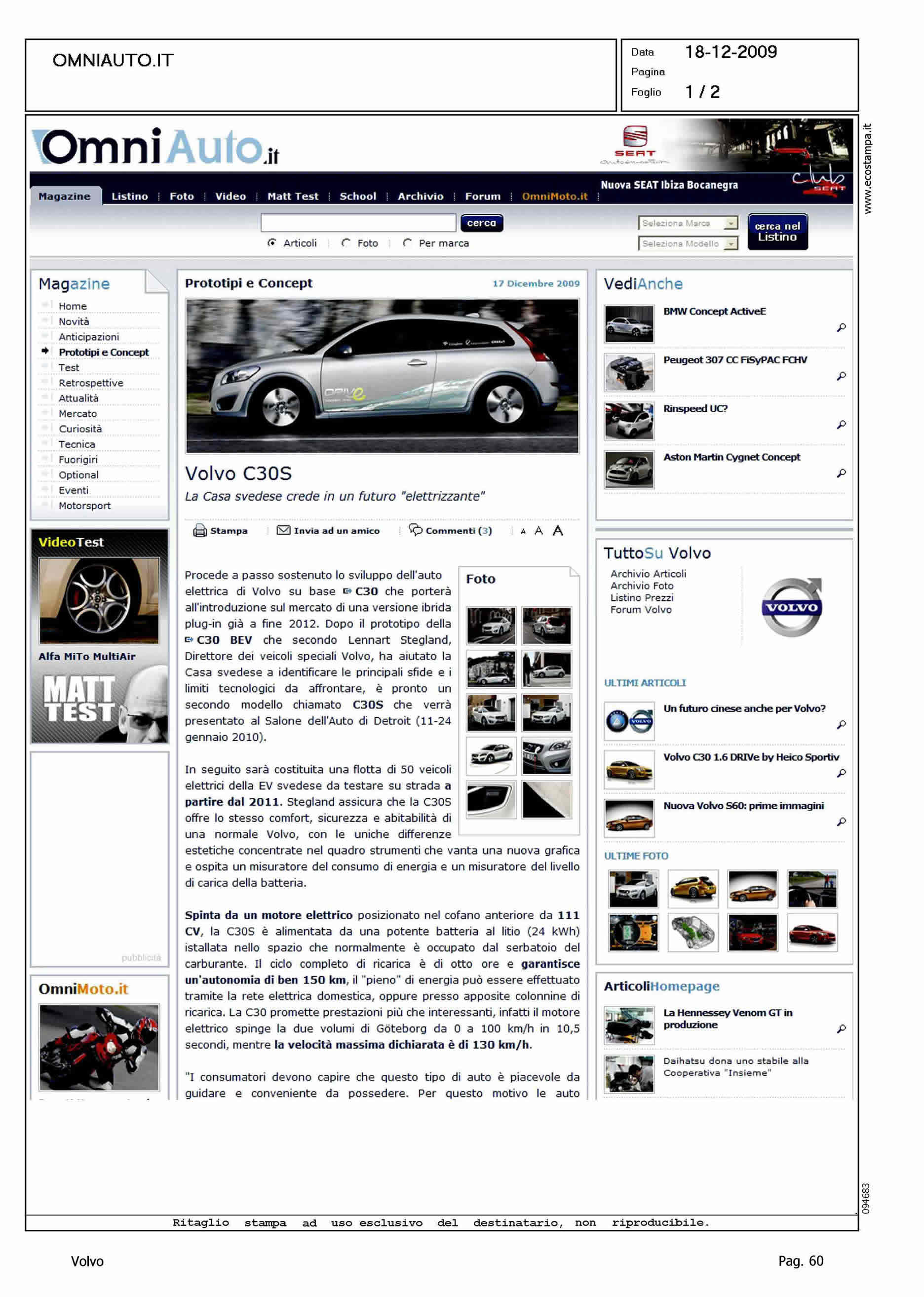 Author: Line: Corporate Model: Volvo C30 Subject: - Title: VOLVO C30SHighlight: STEGLAND SU PROGETTO - 2011 PRESENTAZIONE - POTENZA - AUTONOMIA - VELOCITA' - INFRASTRUTTURE - GUSTAVSSON SU PROGETTO - COSTO PROGETTO
