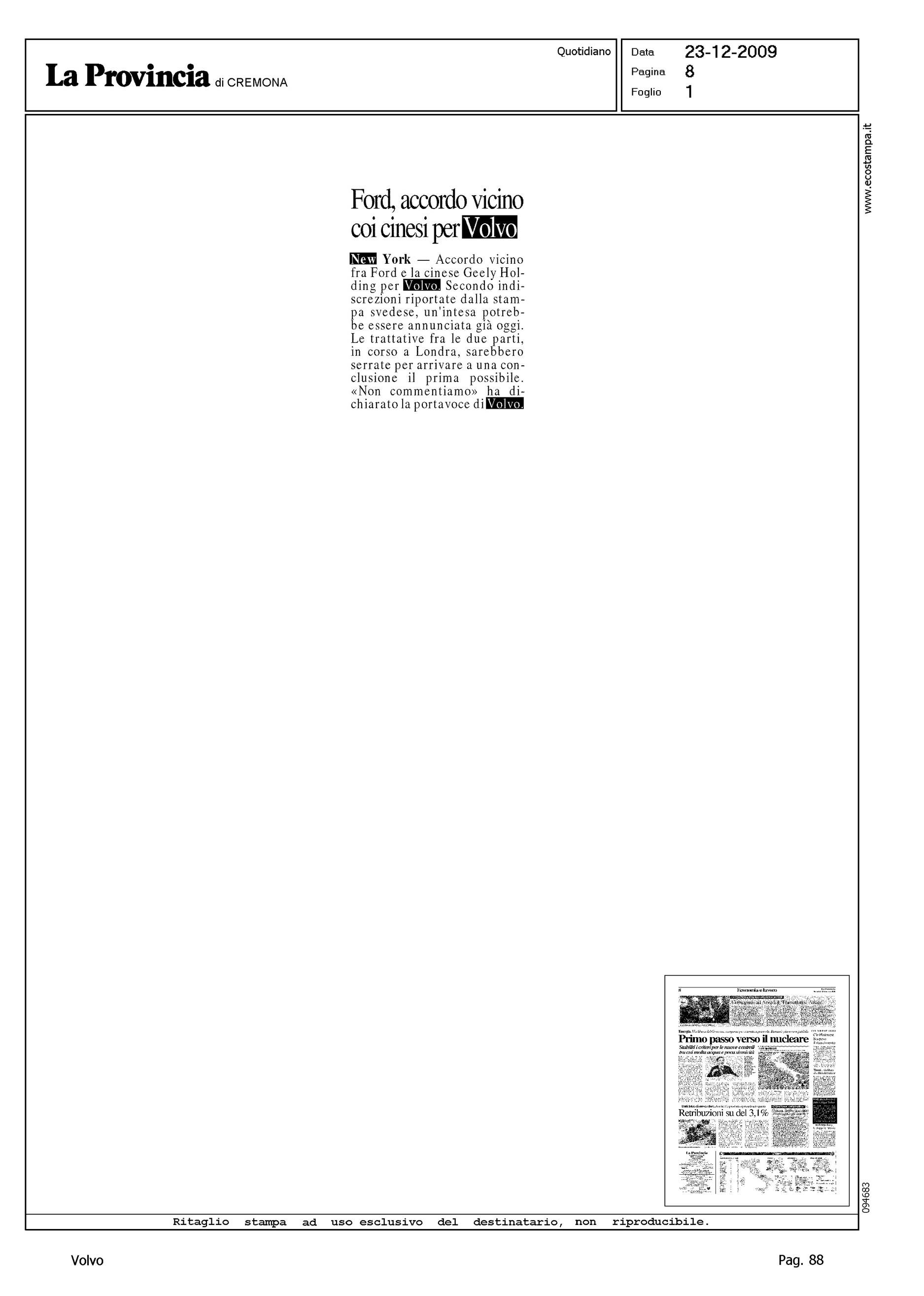 Author: Line: Corporate Model: Corporate Subject: - Title: FORD, ACCORDO VICINO COI CINESI PER VOLVOHighlight: VENDITA VOLVO ALLA GEELY