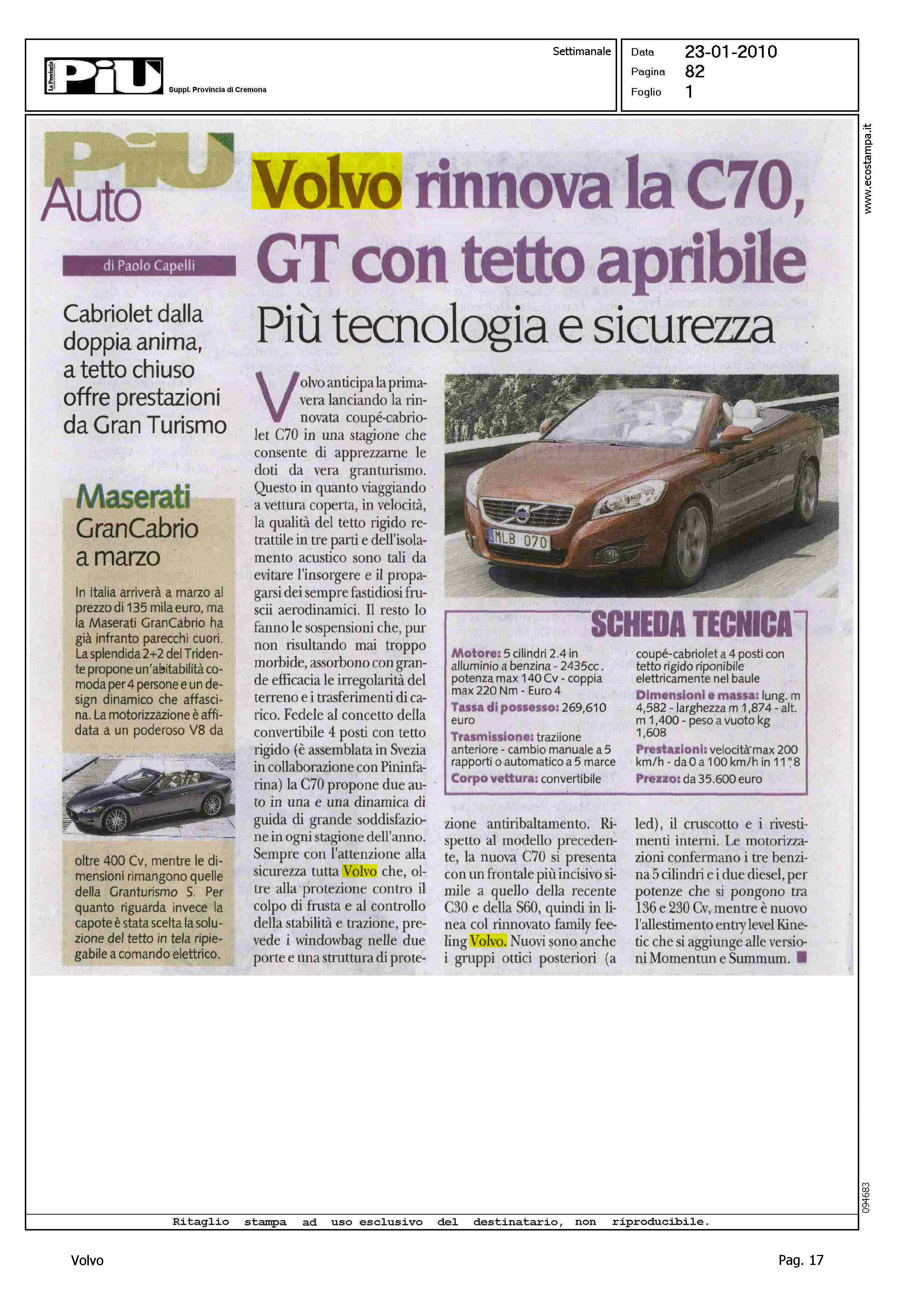 Title: VOLVO RINNOVA LA C70, GT CON TETTO APRIBILE