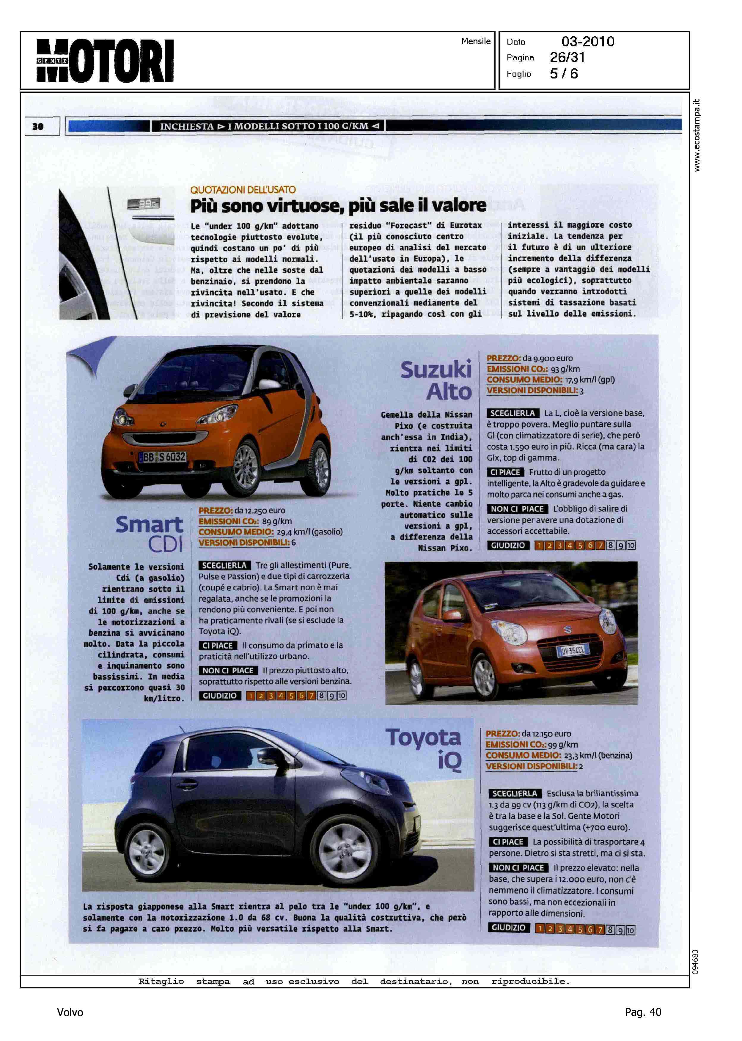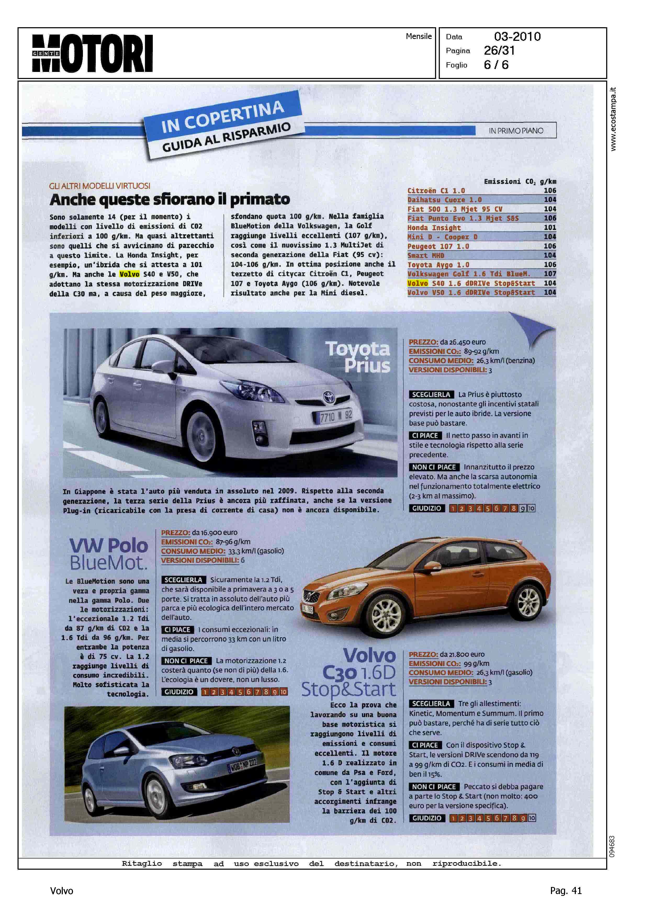 Highlight: EMISSIONI E CONSUMI ECCELLENTI - EMISSIONI INFERIORI A 100 g/km DI CO2 - ALLESTIMENTI - STOP/START - GIUDIZIO NEGATIVO SU STOP/START A PAGAMENTO - GIUDIZIO COMPLESSIVO 9/10