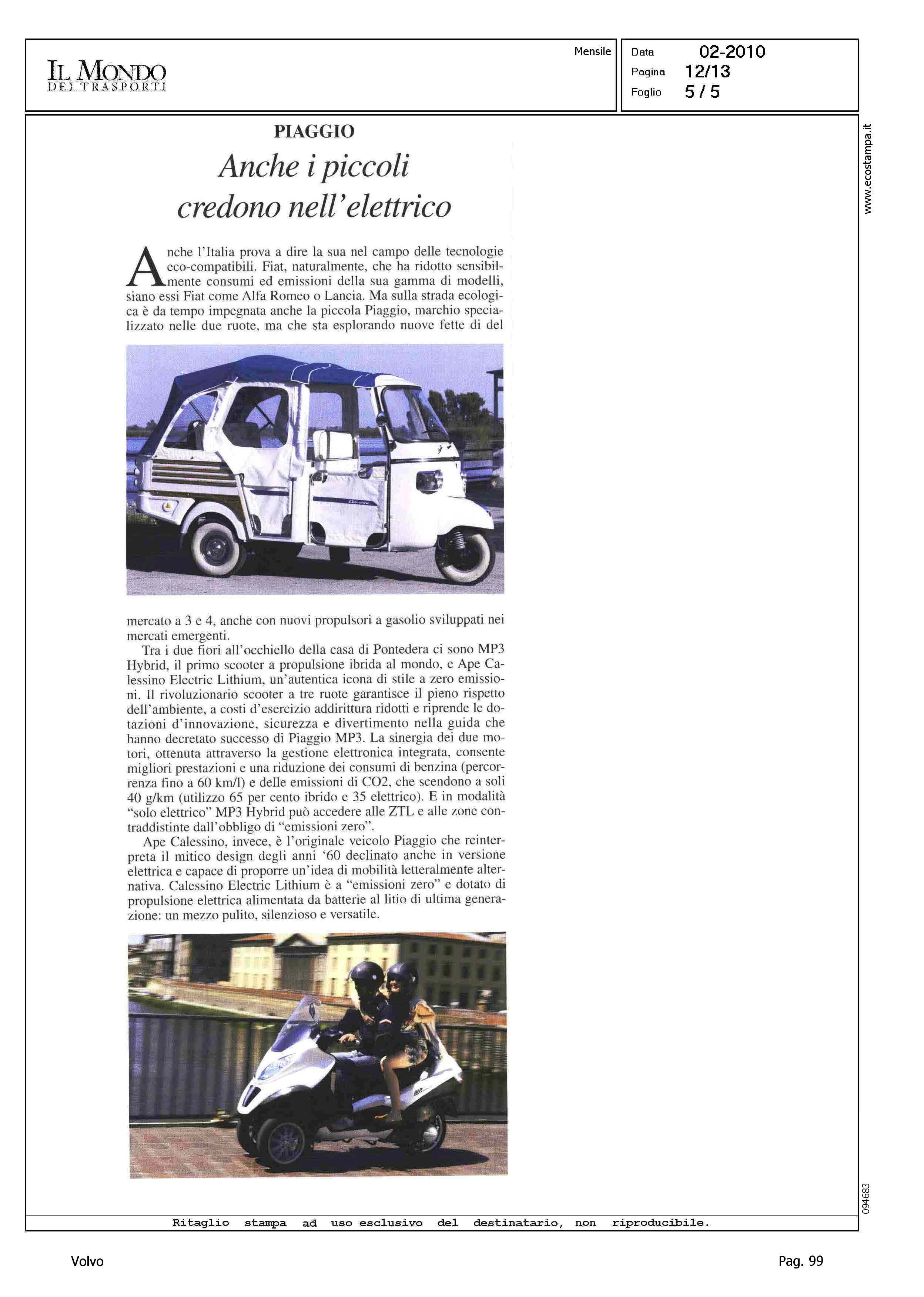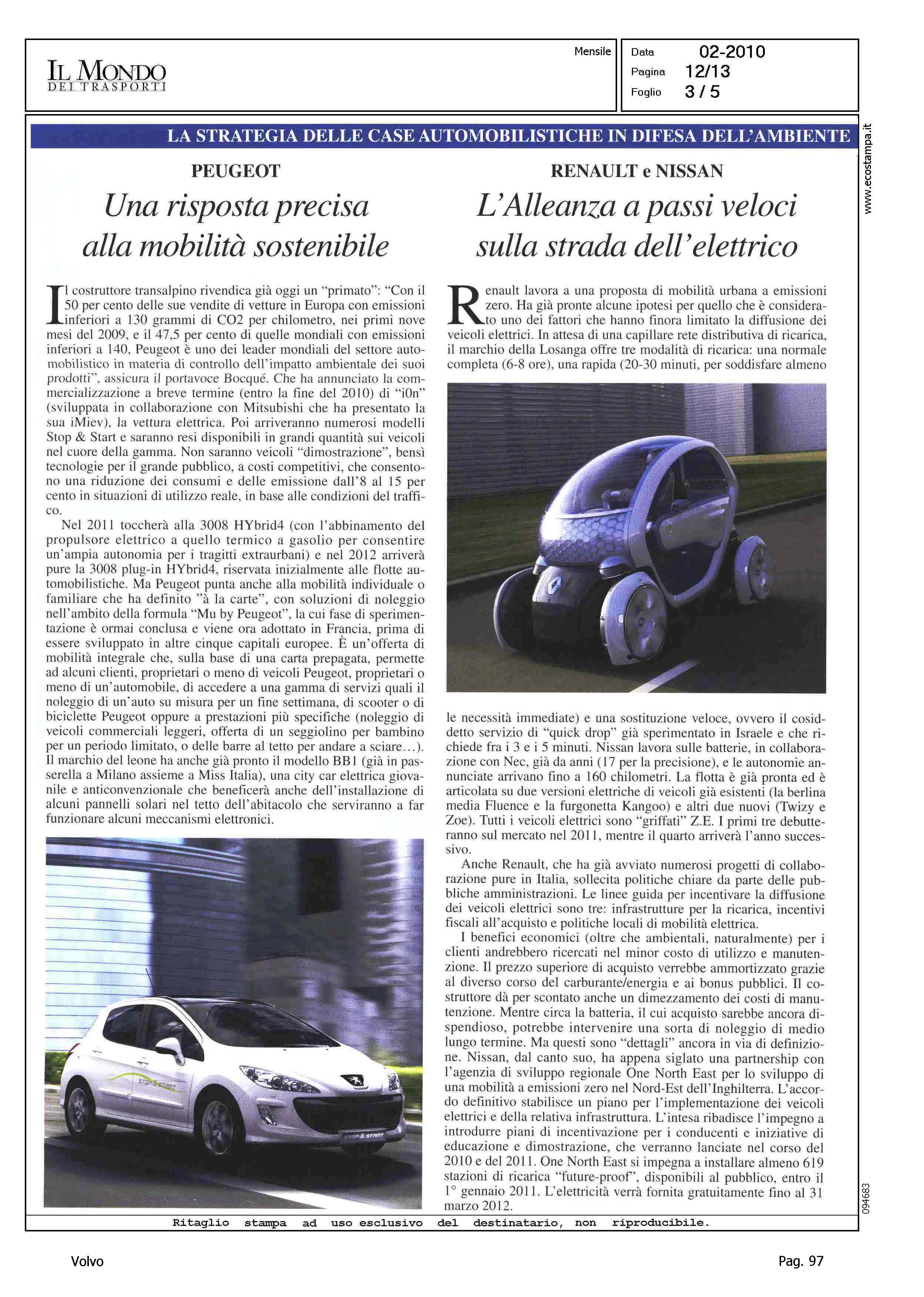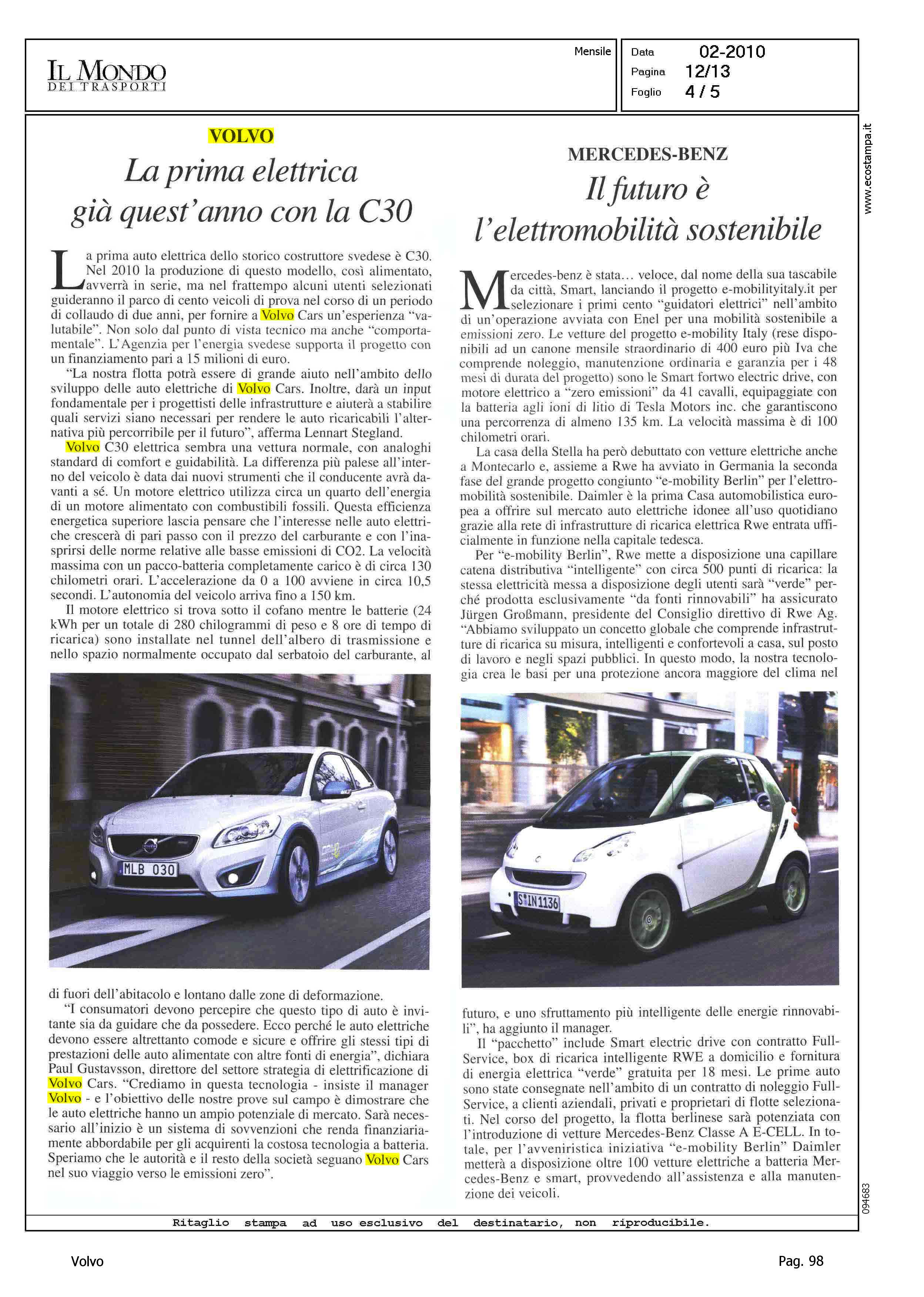 Author: ECCHELI, MATTIALine: Corporate Model: Volvo C30 Subject: - Title: VOLVO - LA PRIMA ELETTRICA GIA' QUEST'ANNO CON LA C30Highlight: EMISSIONI - PRESTAZIONI - AUTONOMIA
