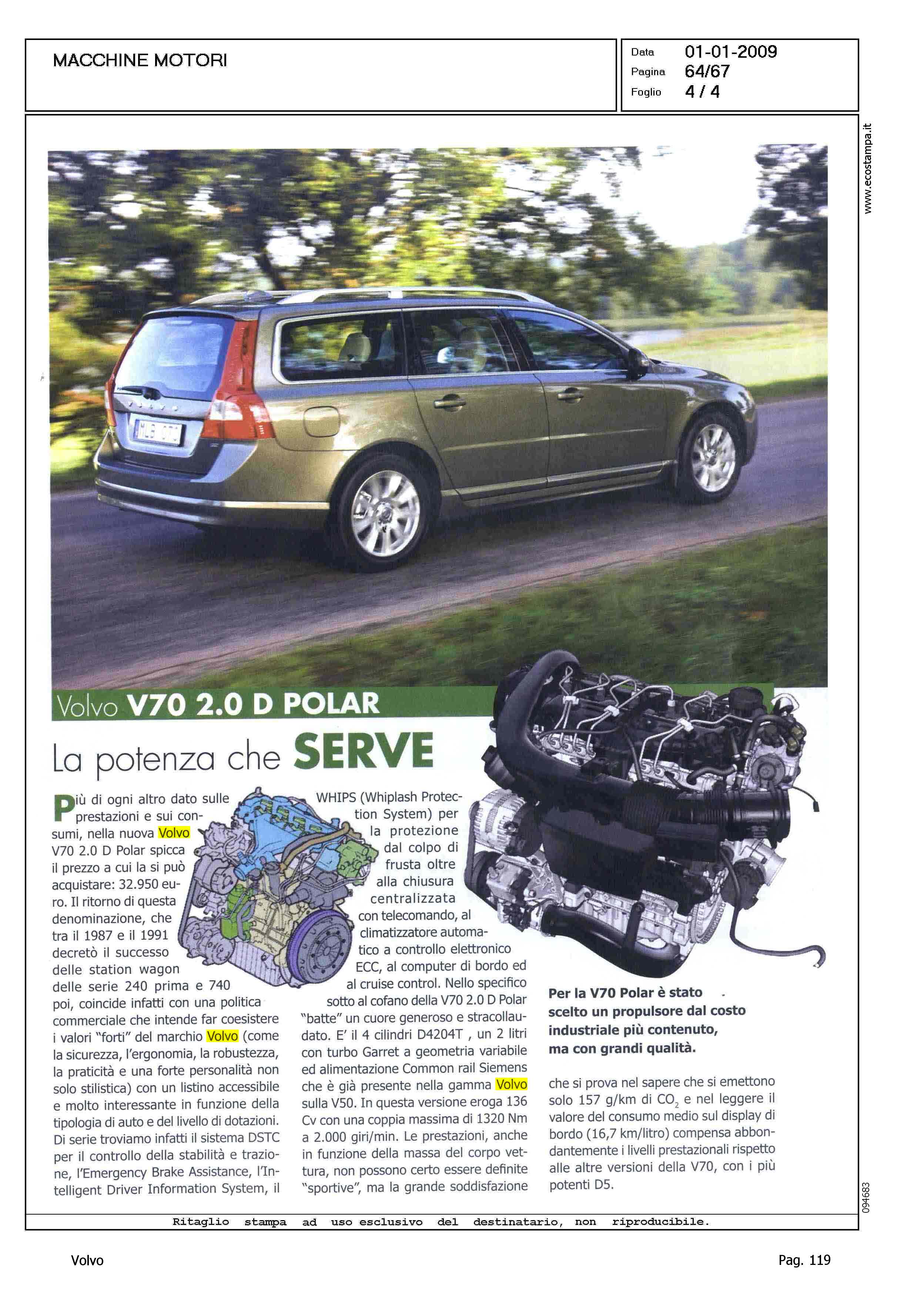 Author: Line: Corporate Model: Volvo V70 Subject: - Title: LA POTENZA CHE SERVEHighlight: PREZZO - BRAND VALUE - DOTAZIONE DI SERIE - SICUREZZA ATTIVA - MOTORE - PRESTAZIONI "NON SPORTIVE" - EMISSIONI - CONSUMI