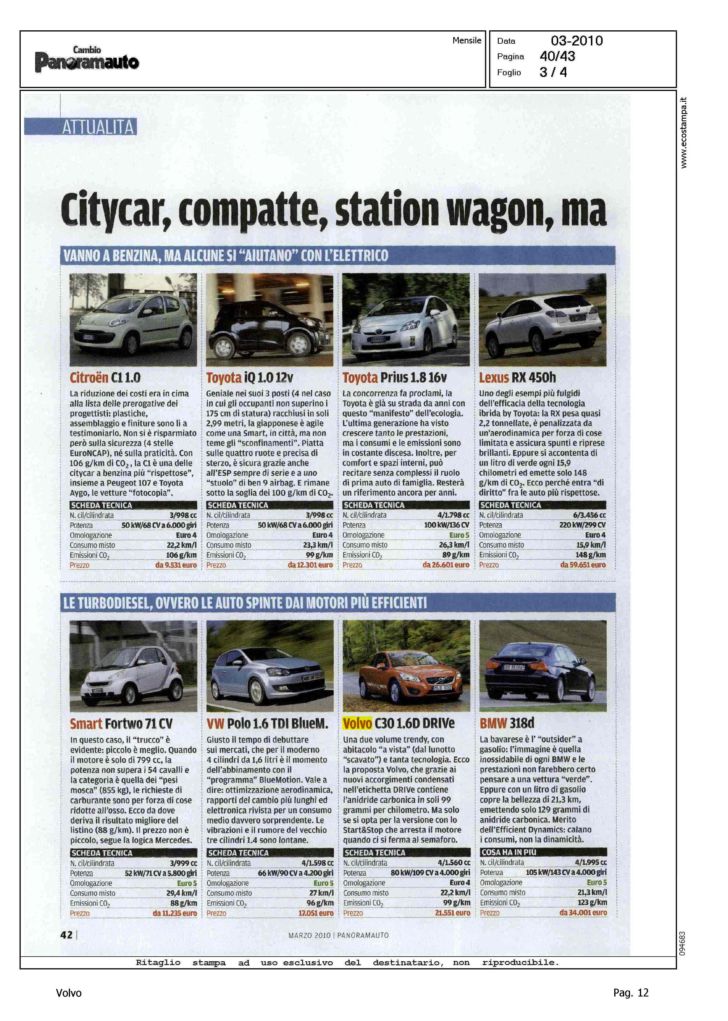 Line: Corporate Model: Volvo C30 Subject: -