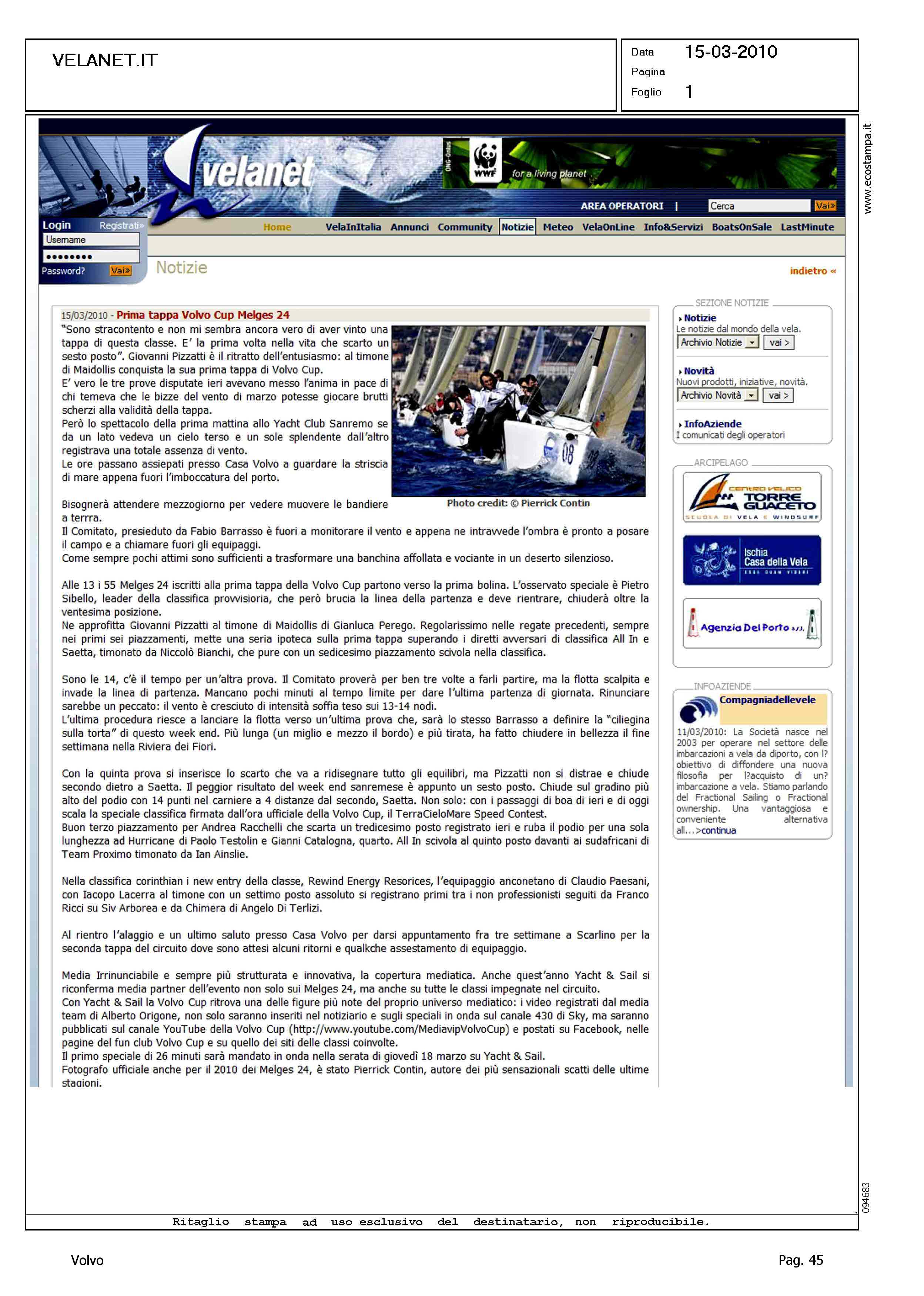 Author: Line: Corporate Model: Corporate Subject: Volvo Cup Title: PRIMA TAPPA VOLVO CUP MELGES 24Highlight: REGATA SANREMO