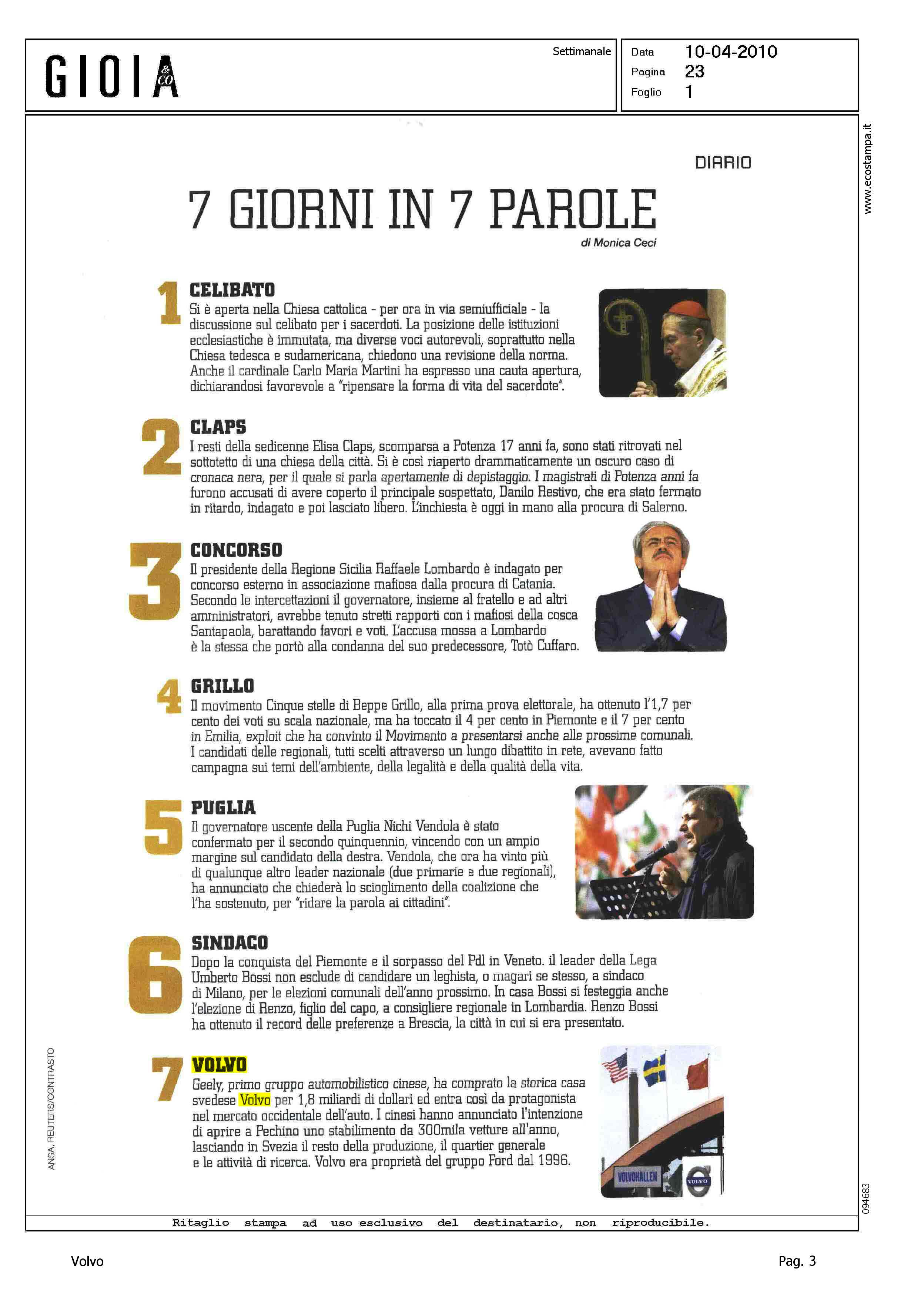 Author: CECI, MONICALine: Corporate Model: Corporate Subject: - Title: VOLVOHighlight: VENDITA VOLVO A GEELY