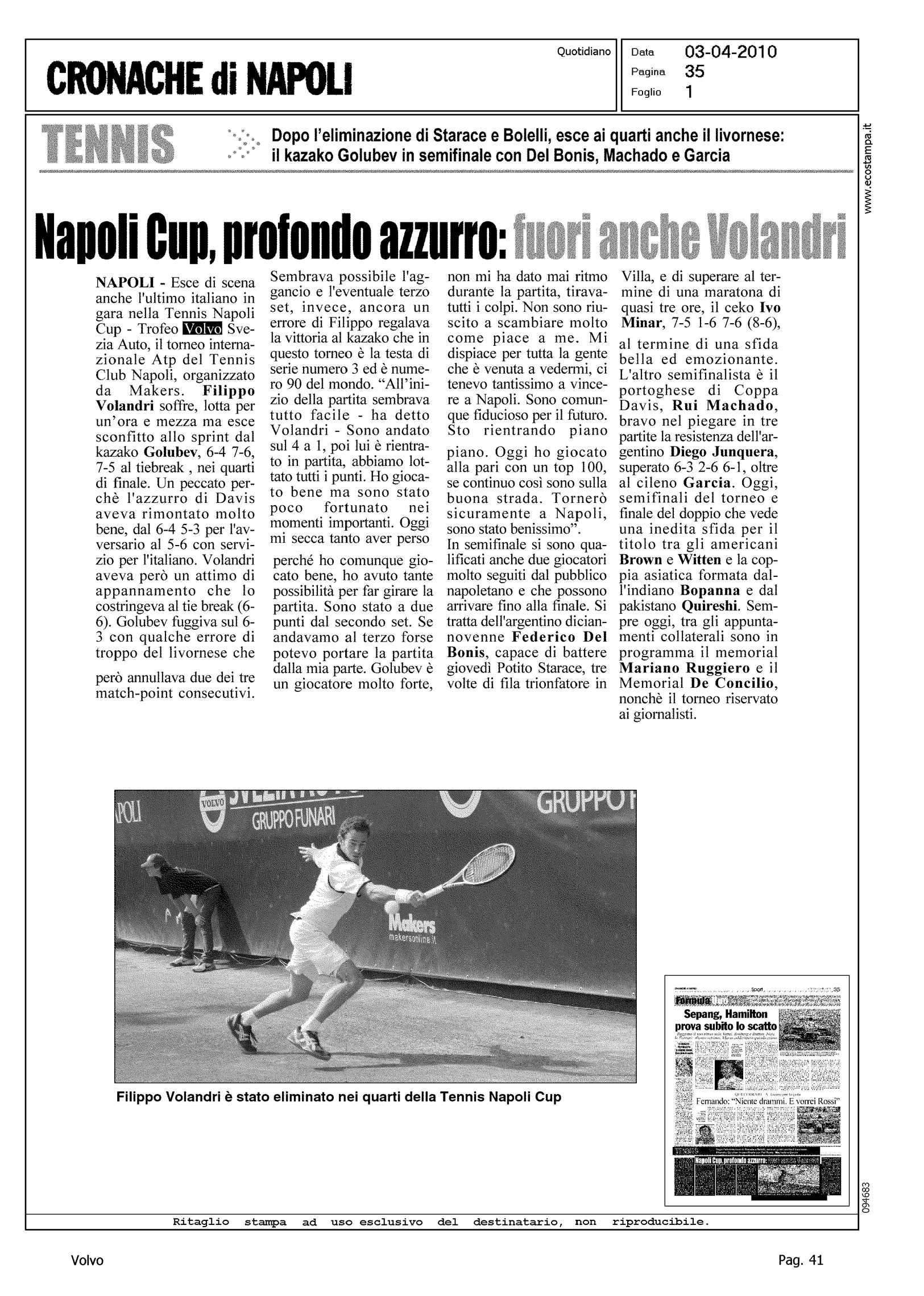 Author: Line: Corporate Model: Corporate Subject: - Title: NAPOLI CUP; PROFONDO AZZURRO: FUORI ANCHE VOLANDRIHighlight: TROFEO SVEZIA AUTO