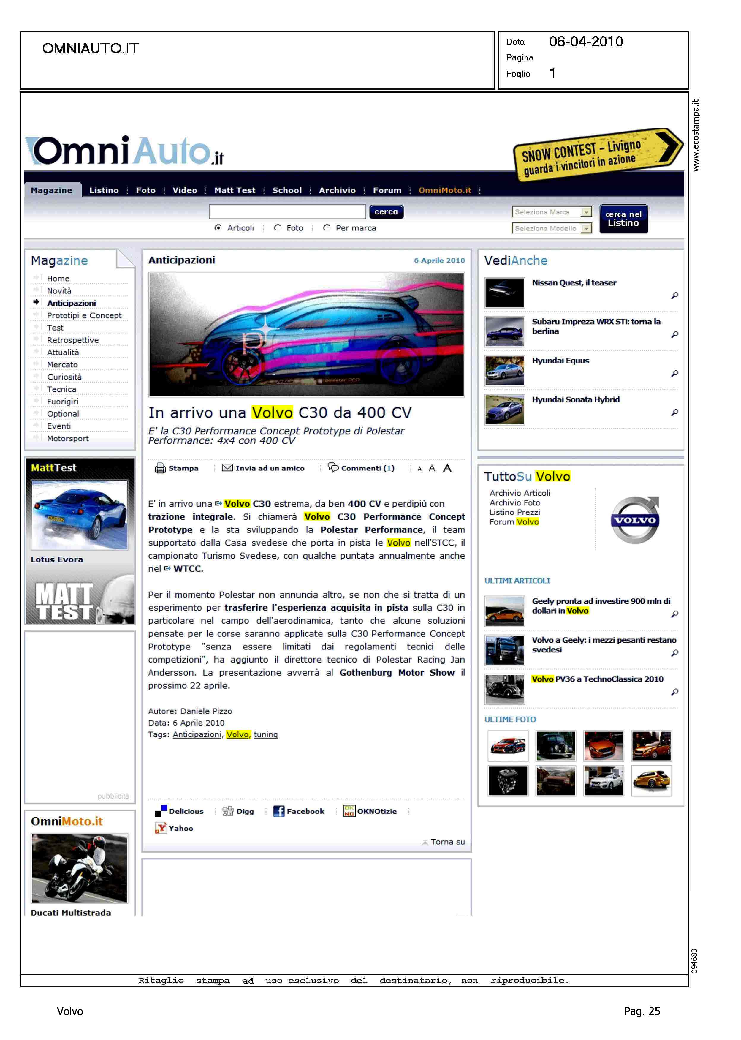 Author: Line: Corporate Model: Volvo C30 Subject: - Title: IN ARRIVO UNA VOLVO C30 DA 400 CVHighlight: CAMPIONATO TURISMO SVEDESE - TRAZIONE INTEGRALE SU C30