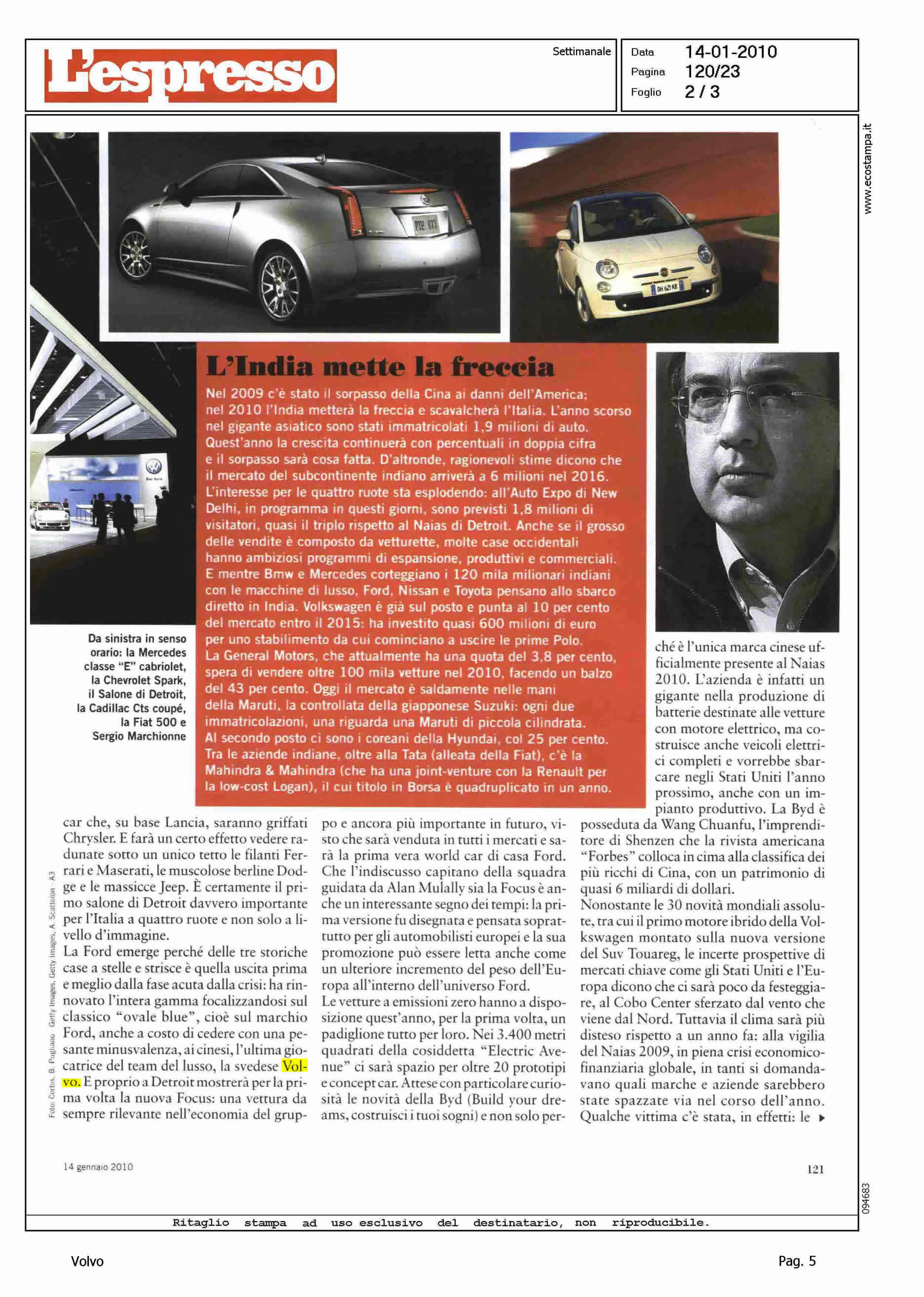Author: MAGGI, MAURIZIOLine: Corporate Model: Corporate Subject: - Title: FIAT ALL'ESAME DI DETROITHighlight: VENDITA VOLVO ALLA GEELY