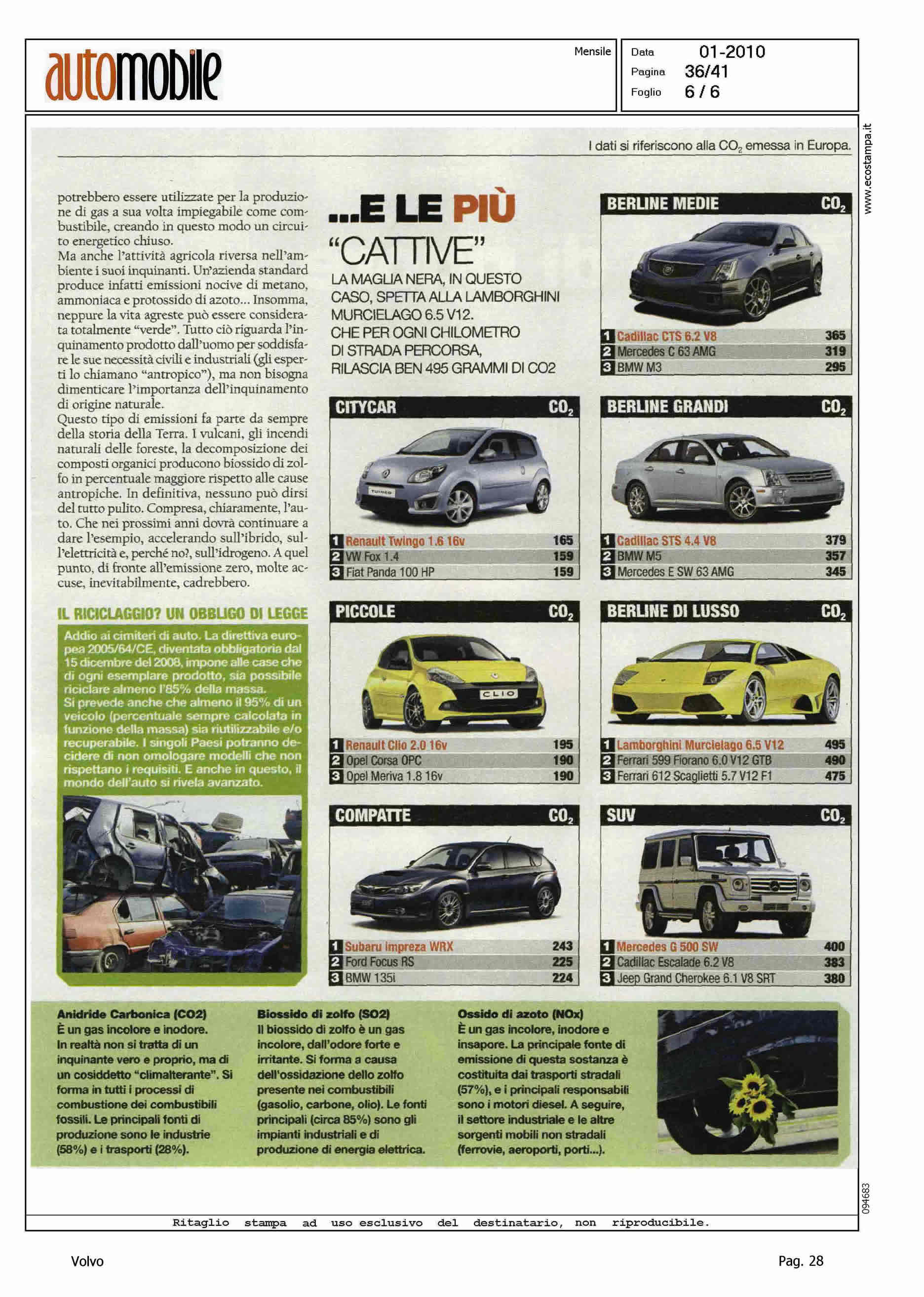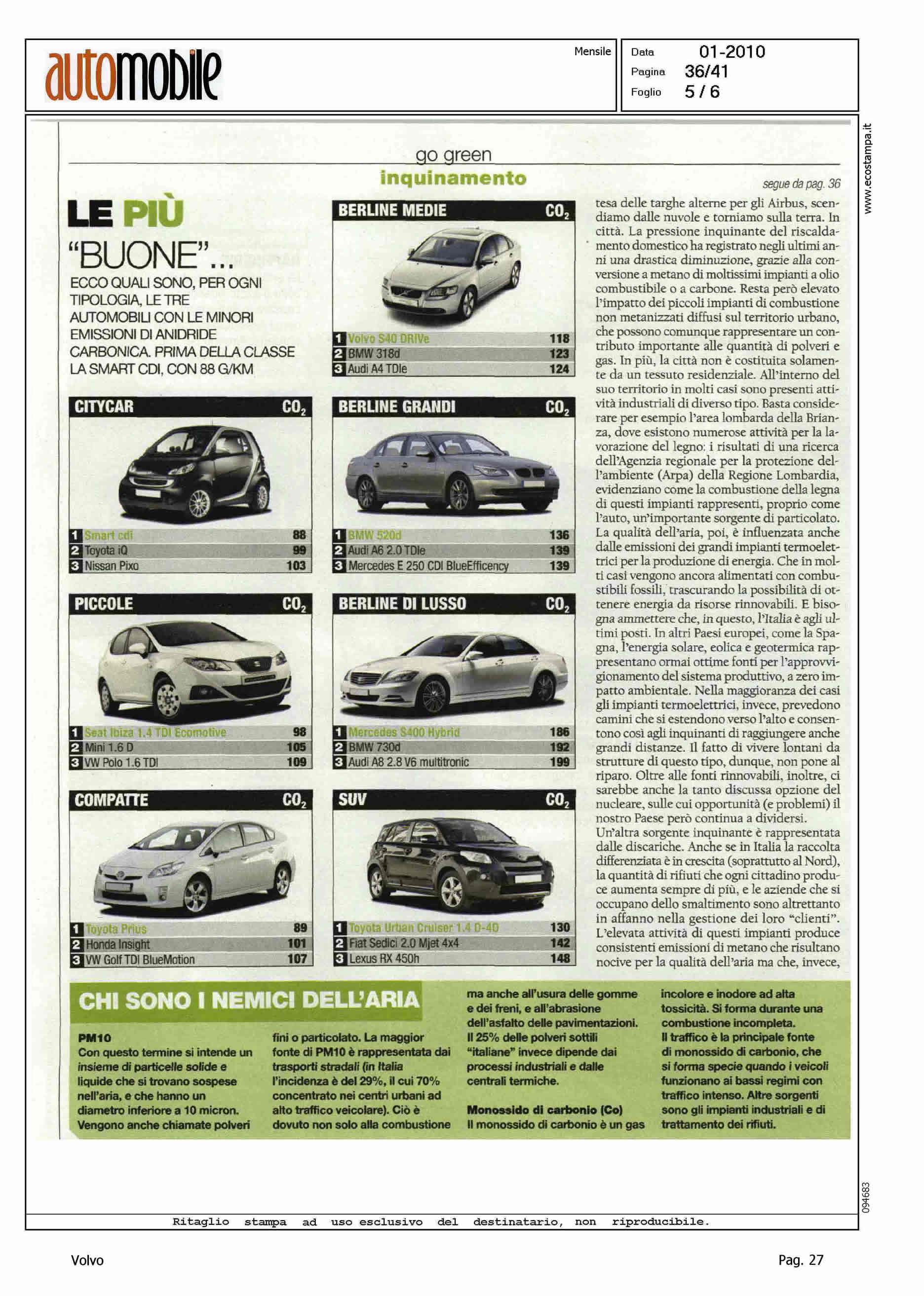 Highlight: BERLINE MEDIE: VOLVO S40 DRIVe, LA MIGLIORE CON 118gr/Km - INCHIESTA SULLE CAPACITA' INQUINANTI DI AUTO, DISCARICHE, CENTRALI ELETTRICHE, ABITAZIONI, TRAFFICO AEREO