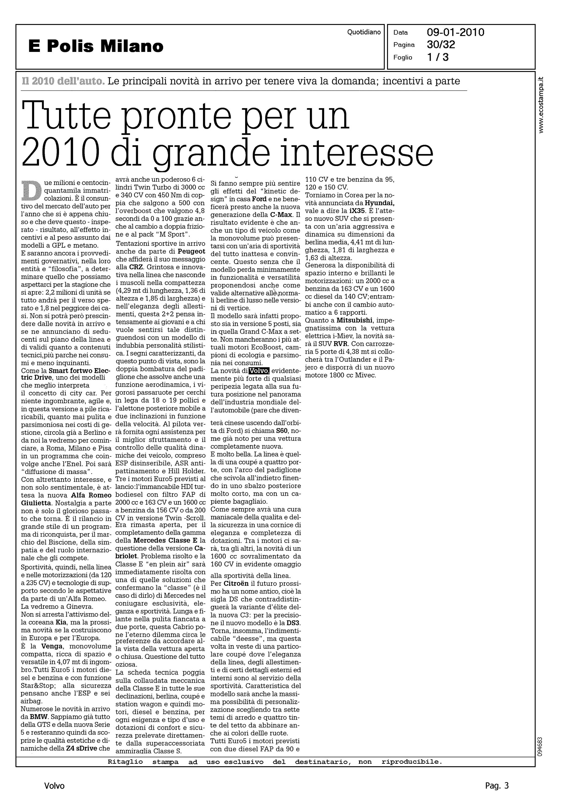 Title: TUTTE PRONTE PER UN 2010 DI GRANDE INTERESSE
