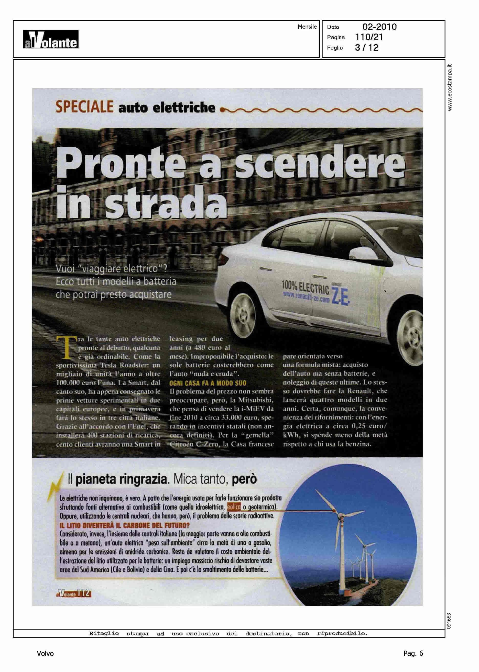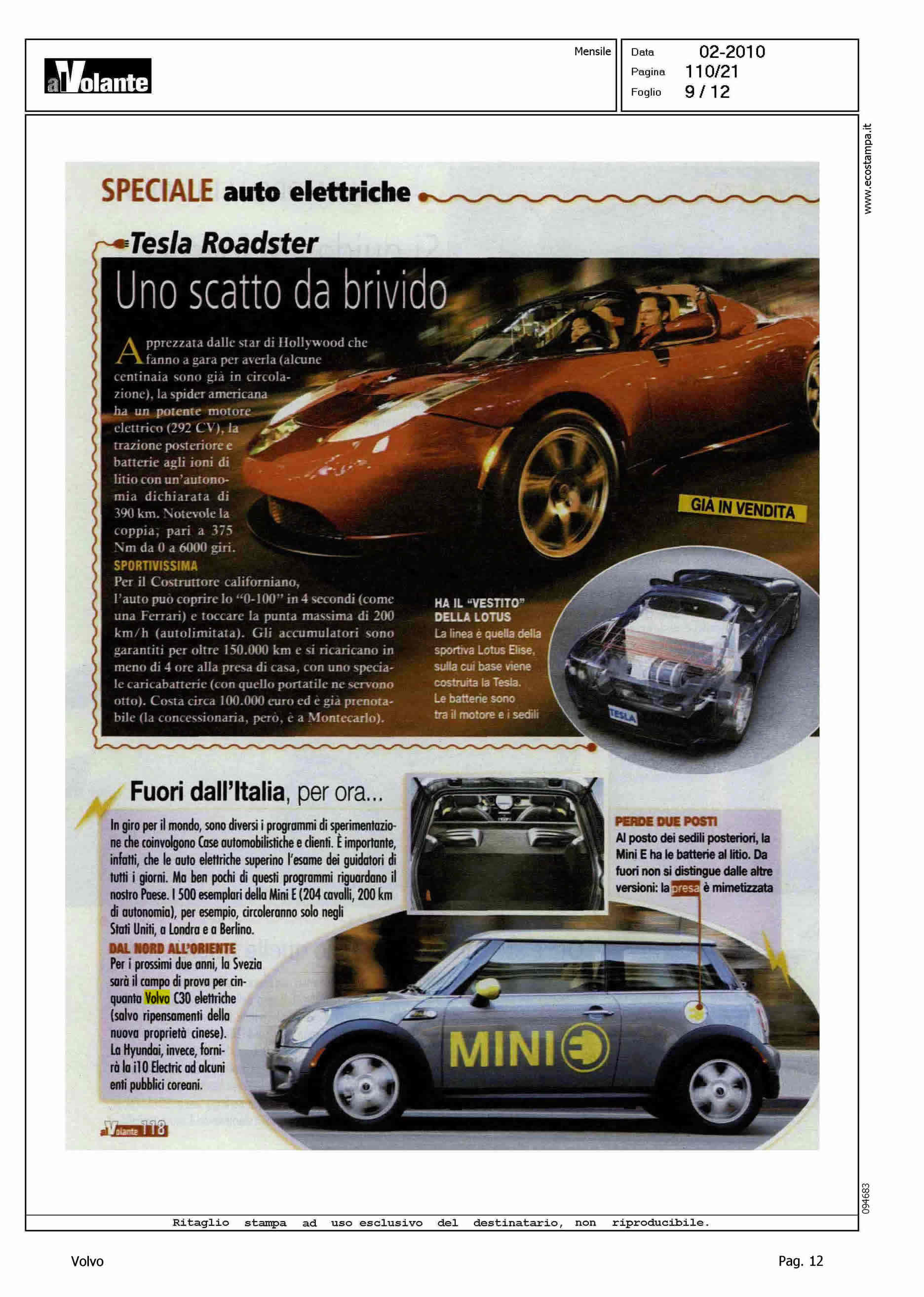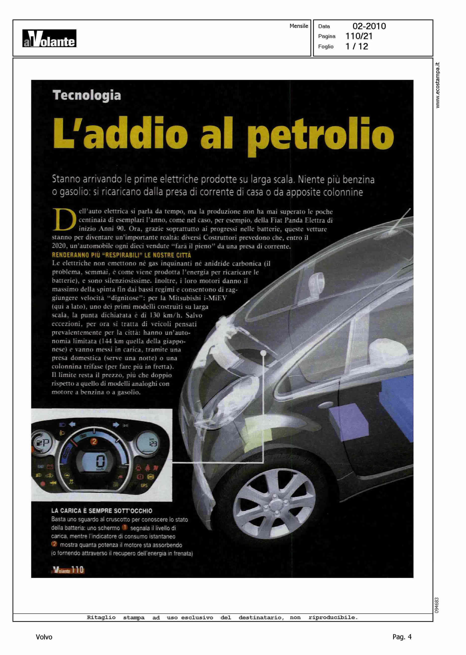 Author: Line: Corporate Model: Volvo C30 Subject: - Title: L'ADDIO AL PETROLIO PARTIRA' DA LORO - (DAL NORD ALL'ORIENTE)Highlight: CITAZIONE PROGETTO SVILUPPO C30 ELETTRICA IN SVEZIA