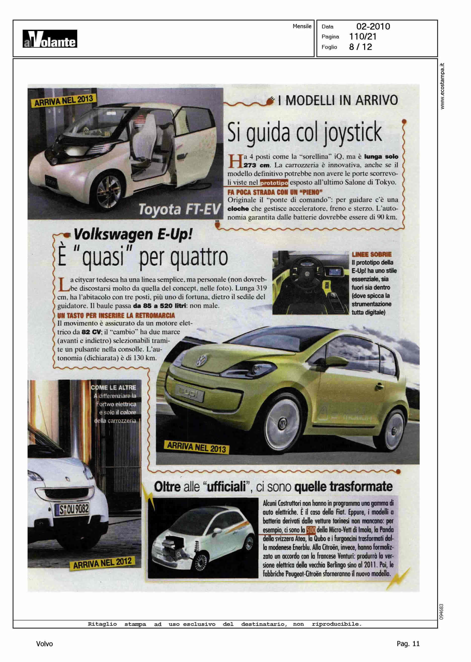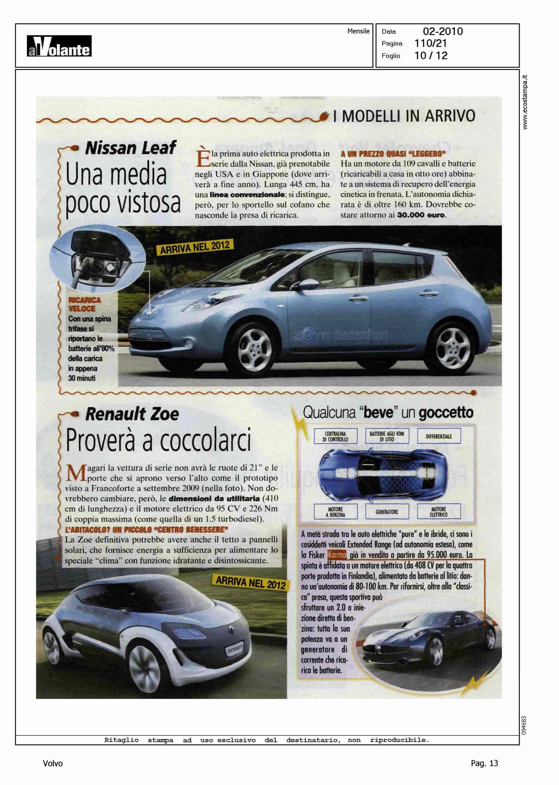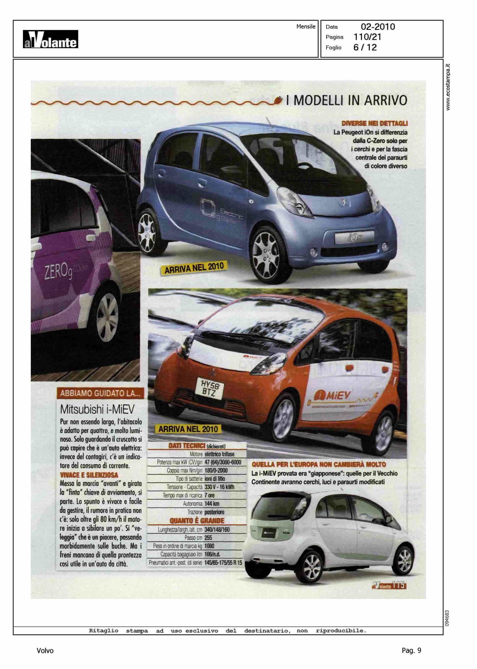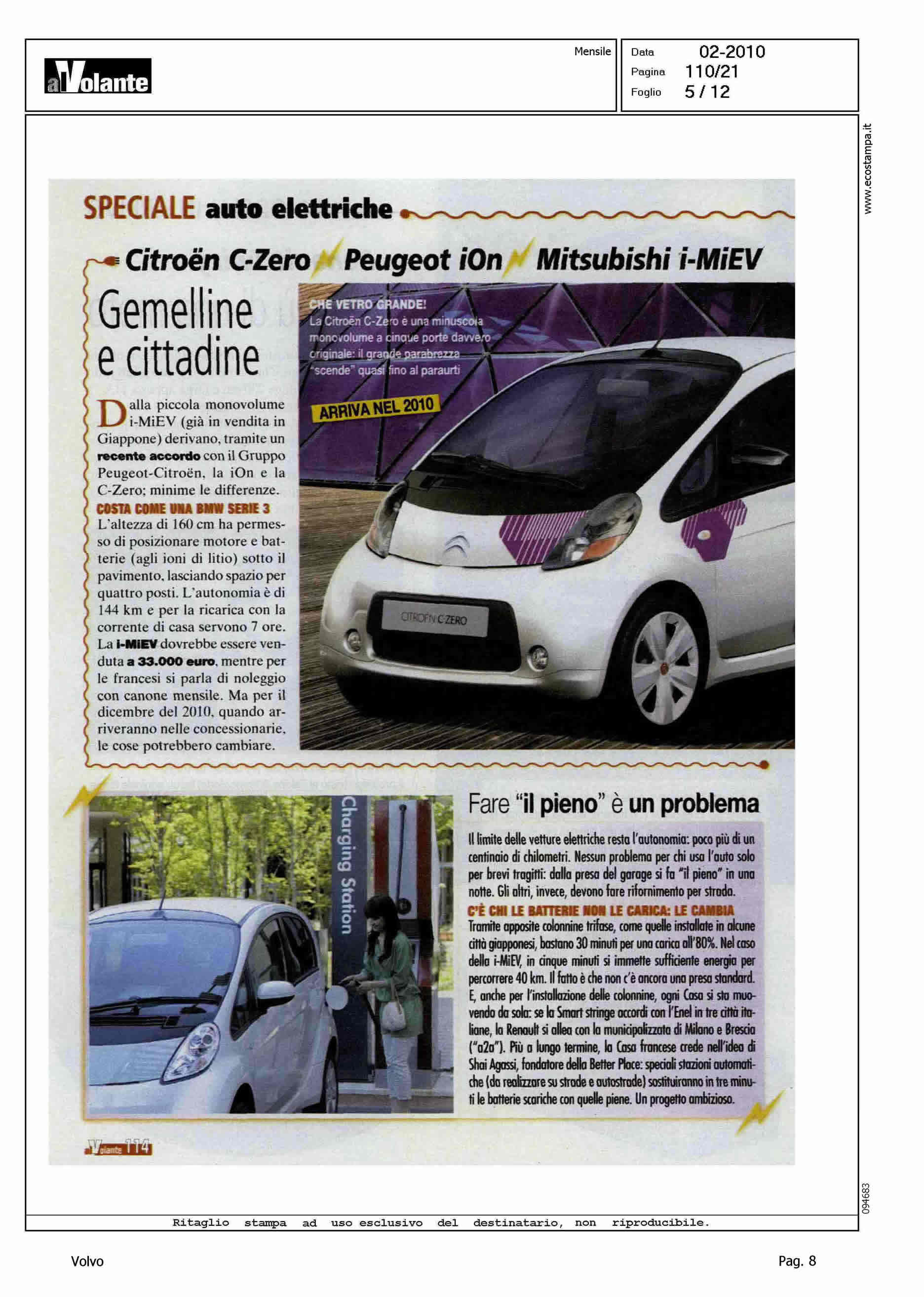 Author: Line: Corporate Model: Volvo C30 Subject: - Title: L'ADDIO AL PETROLIO PARTIRA' DA LORO - (DAL NORD ALL'ORIENTE)Highlight: CITAZIONE PROGETTO SVILUPPO C30 ELETTRICA IN SVEZIA