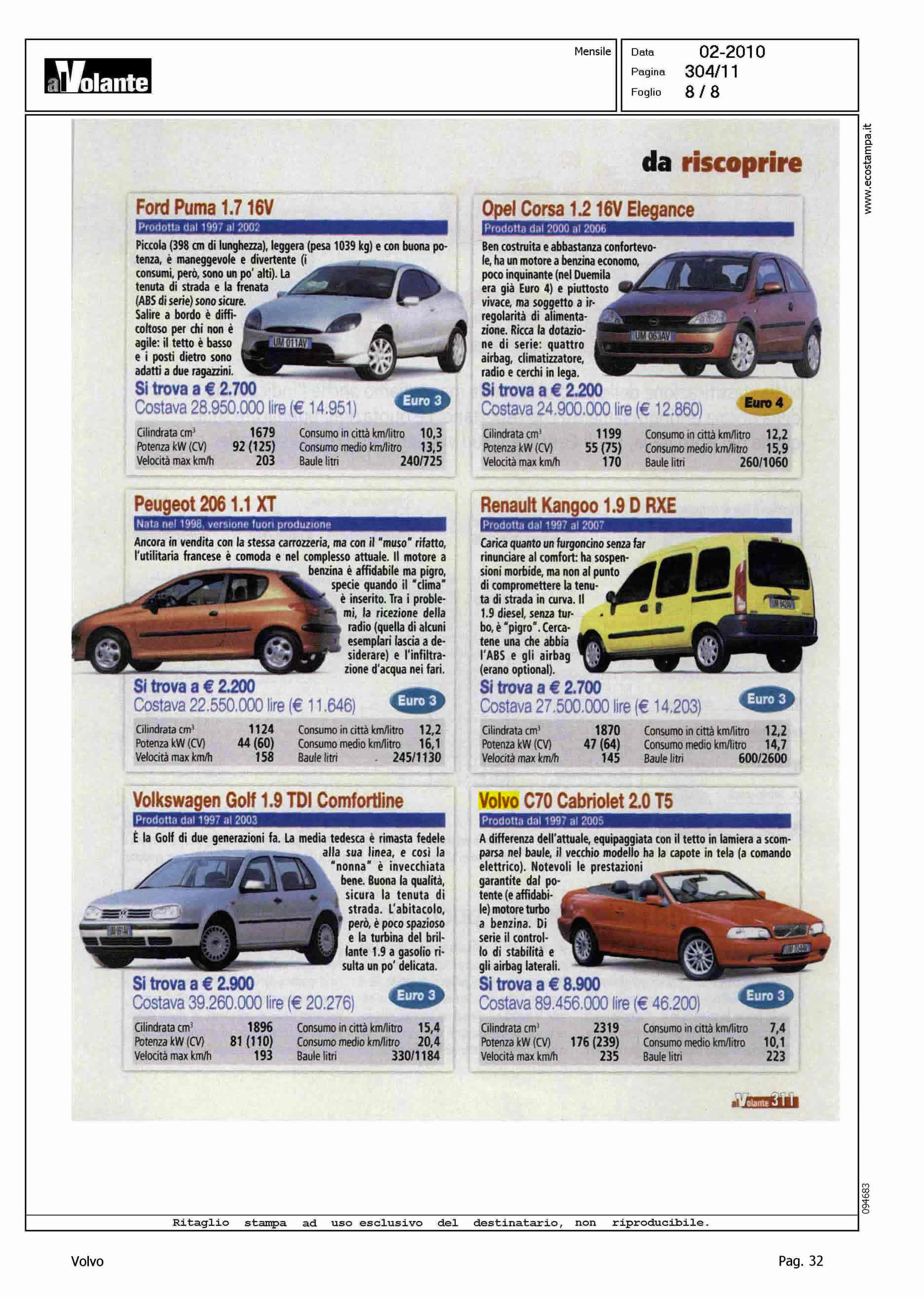 Author: Line: Corporate Model: Volvo C70 Convertible Subject: - Title: 33 AUTO USATE PER TUTTE LE TASCHEHighlight: VETTURA USATA: CAPOTE - PRESTAZIONI - MOTORE - PREZZO - SPECIFICHE TECNICHE DA LISTINO