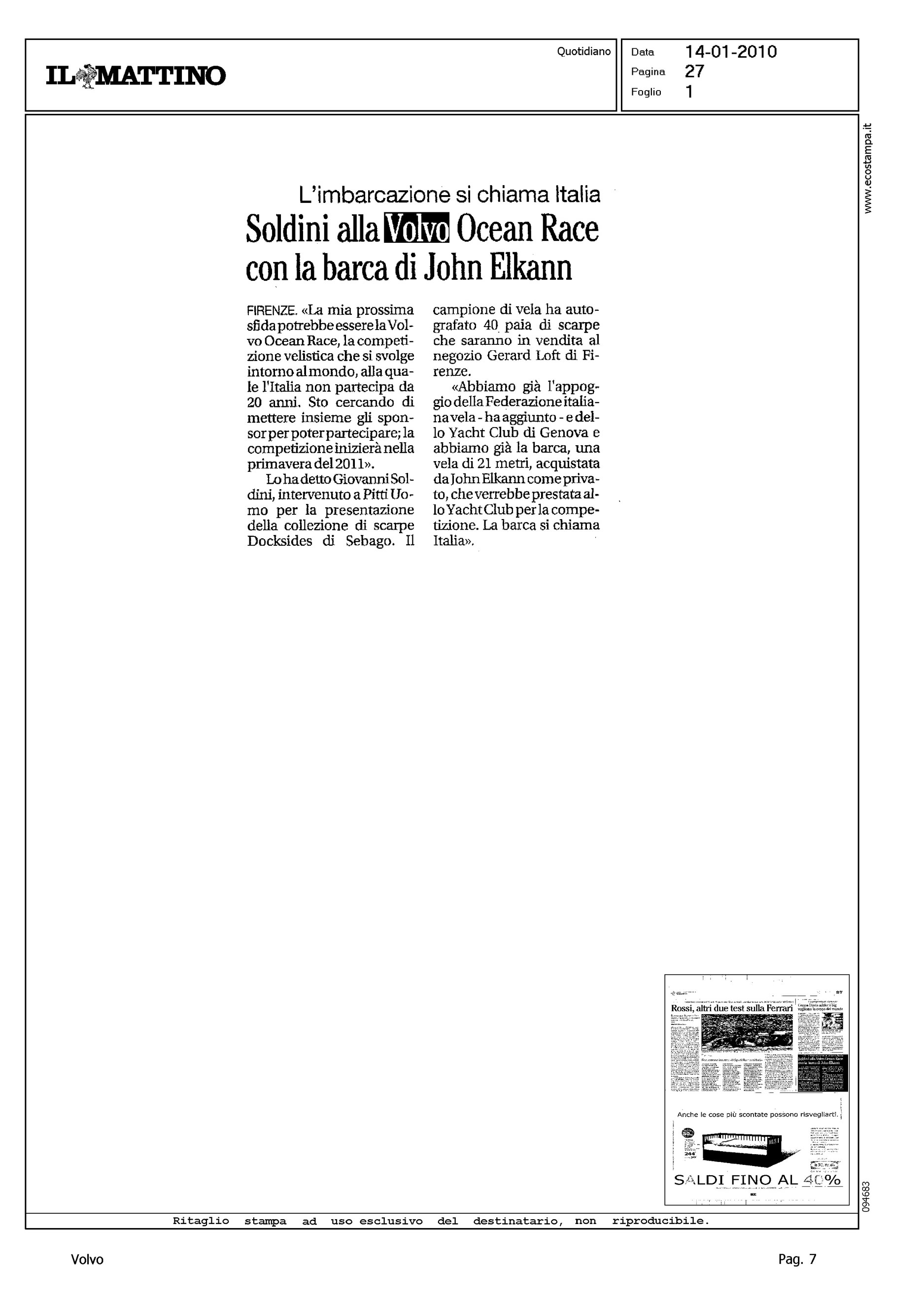 Title: SOLDINI ALLA VOLVO OCEAN RACE CON LA BARCA DI JOHN ELKANN