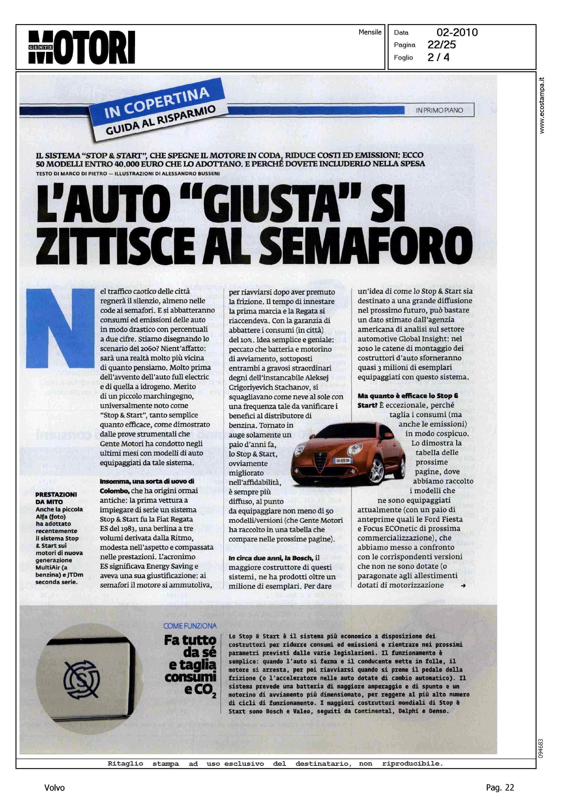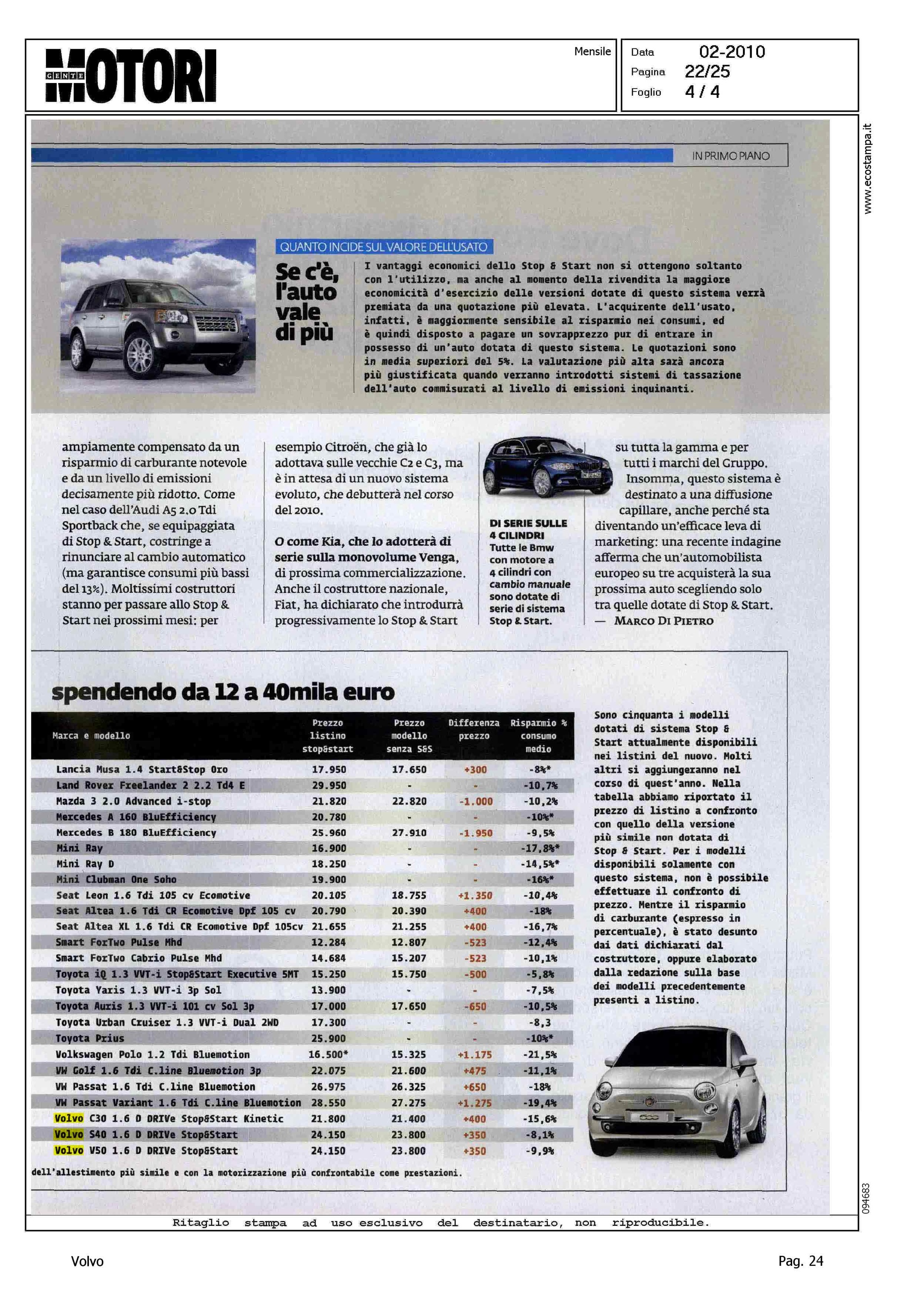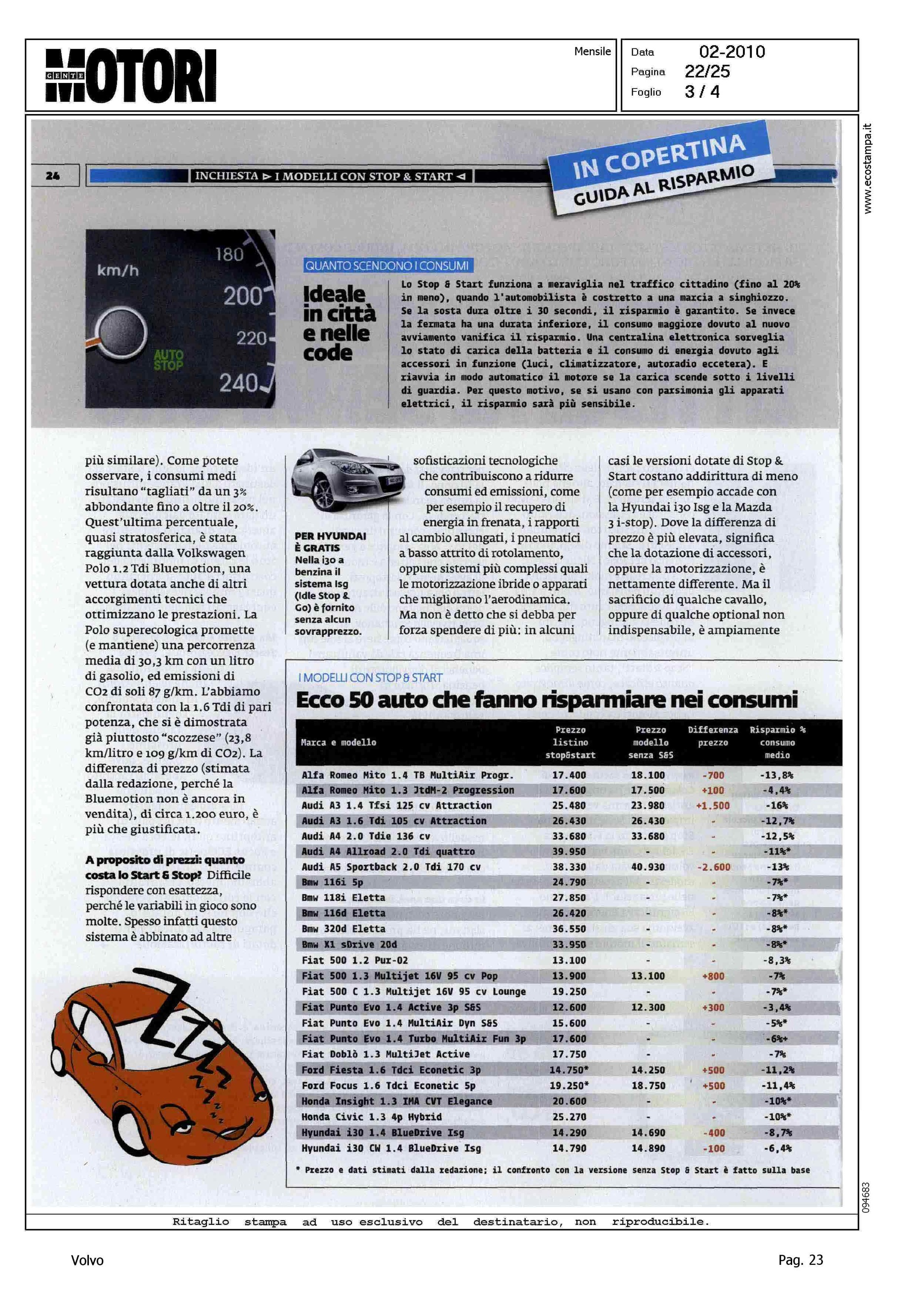Author: DI PIETRO, MARCOLine: Corporate Model: Corporate Subject: - Title: L'AUTO 'GIUSTA' SI ZITTISCE AL SEMAFOROHighlight: TABELLA, PROPOSTA VOLVO CON LISTINO PREZZI MODELLI START/STOP IN GAMMA