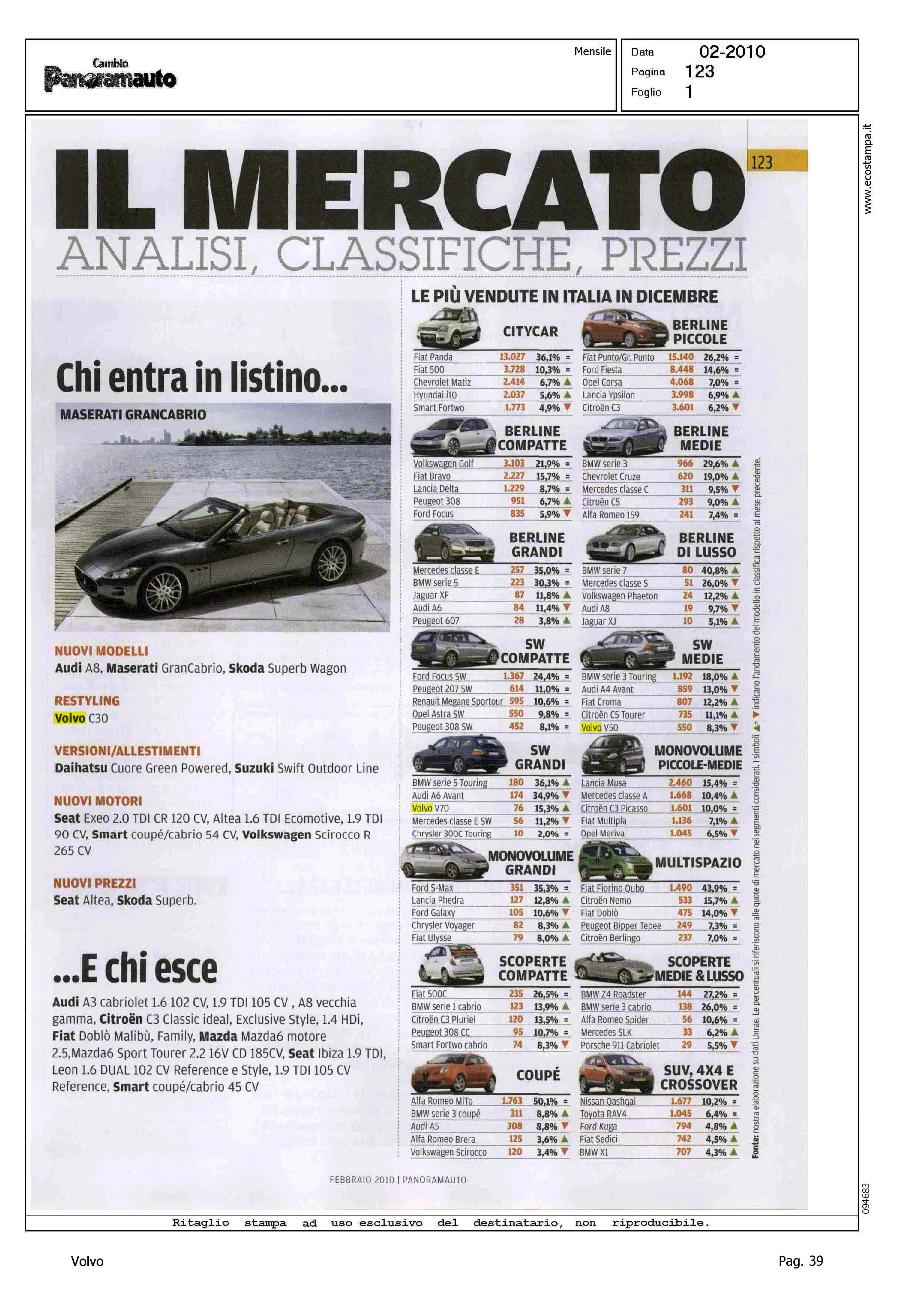 Author: Line: Corporate Model: Volvo C30 Subject: - Title: IL MERCATO - ANALISI, CLASSIFICHE, PREZZIHighlight: TABELLA